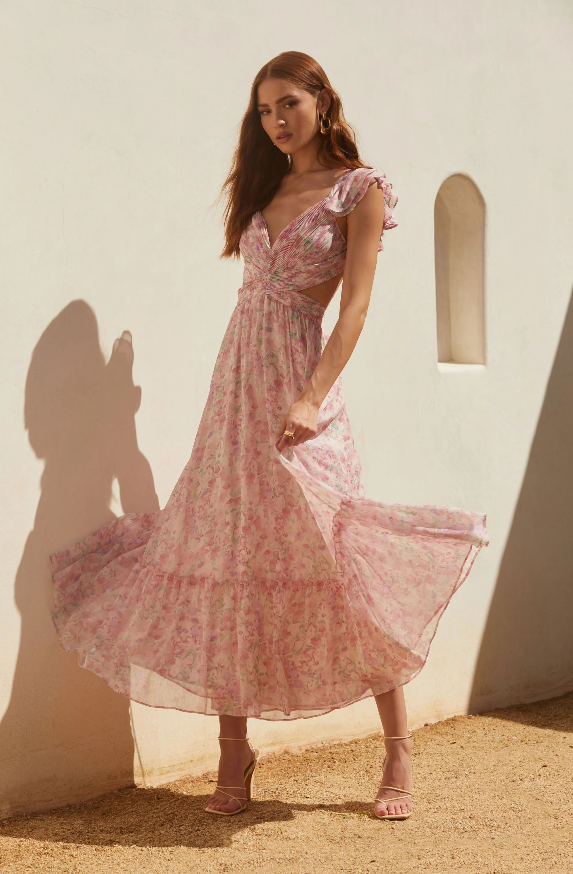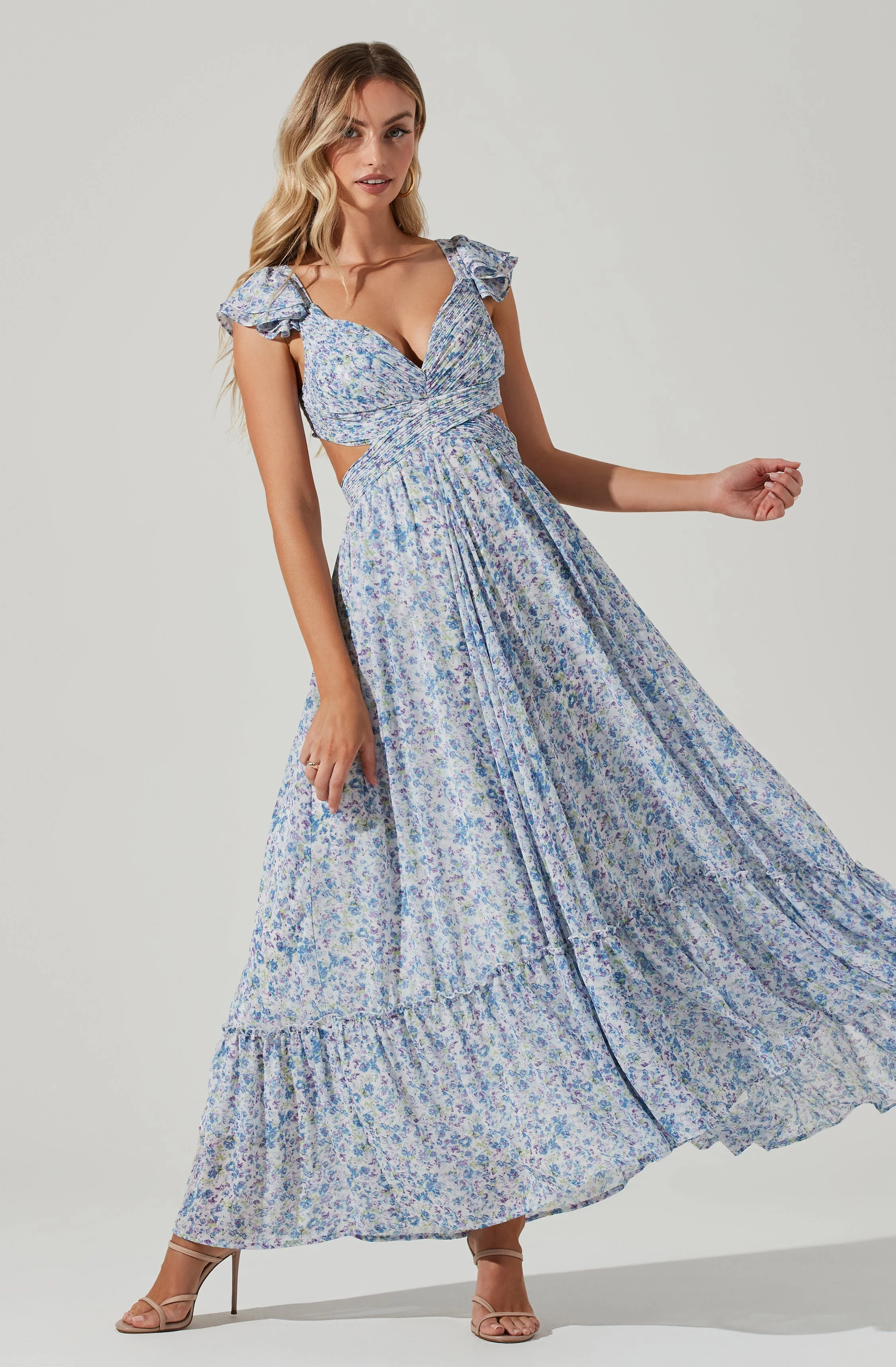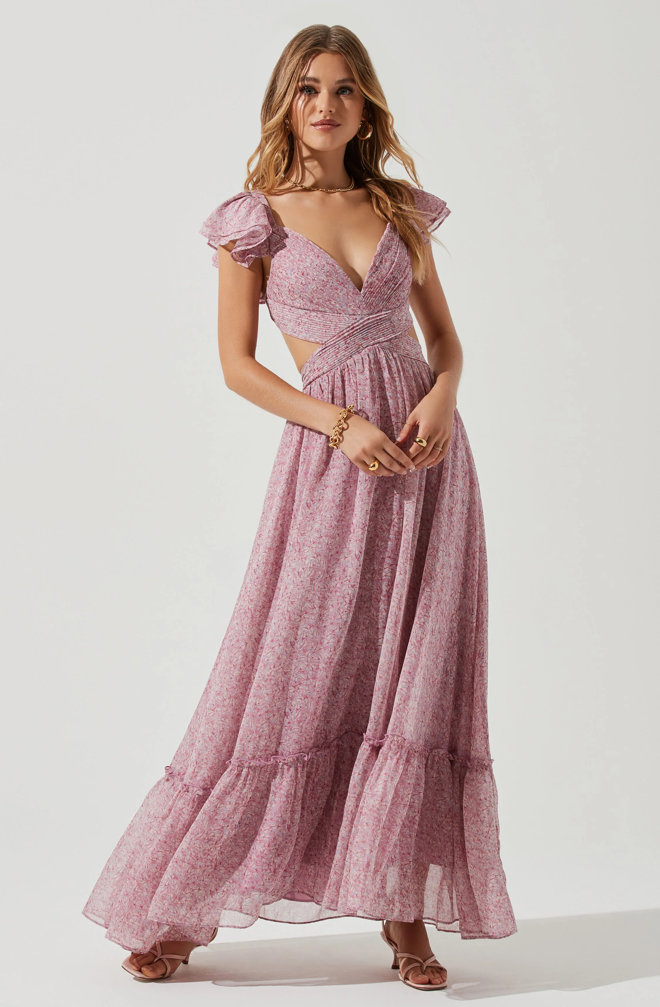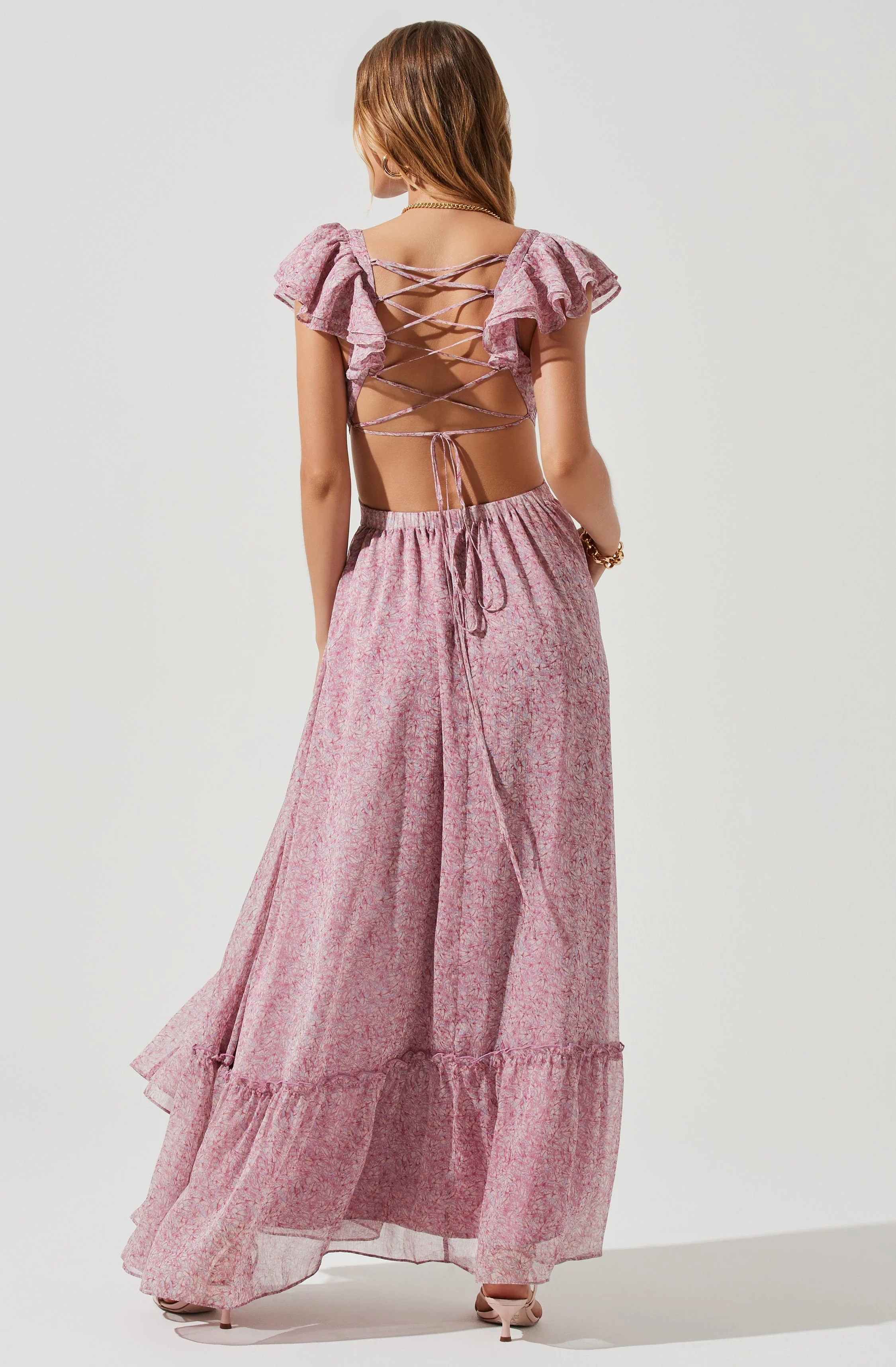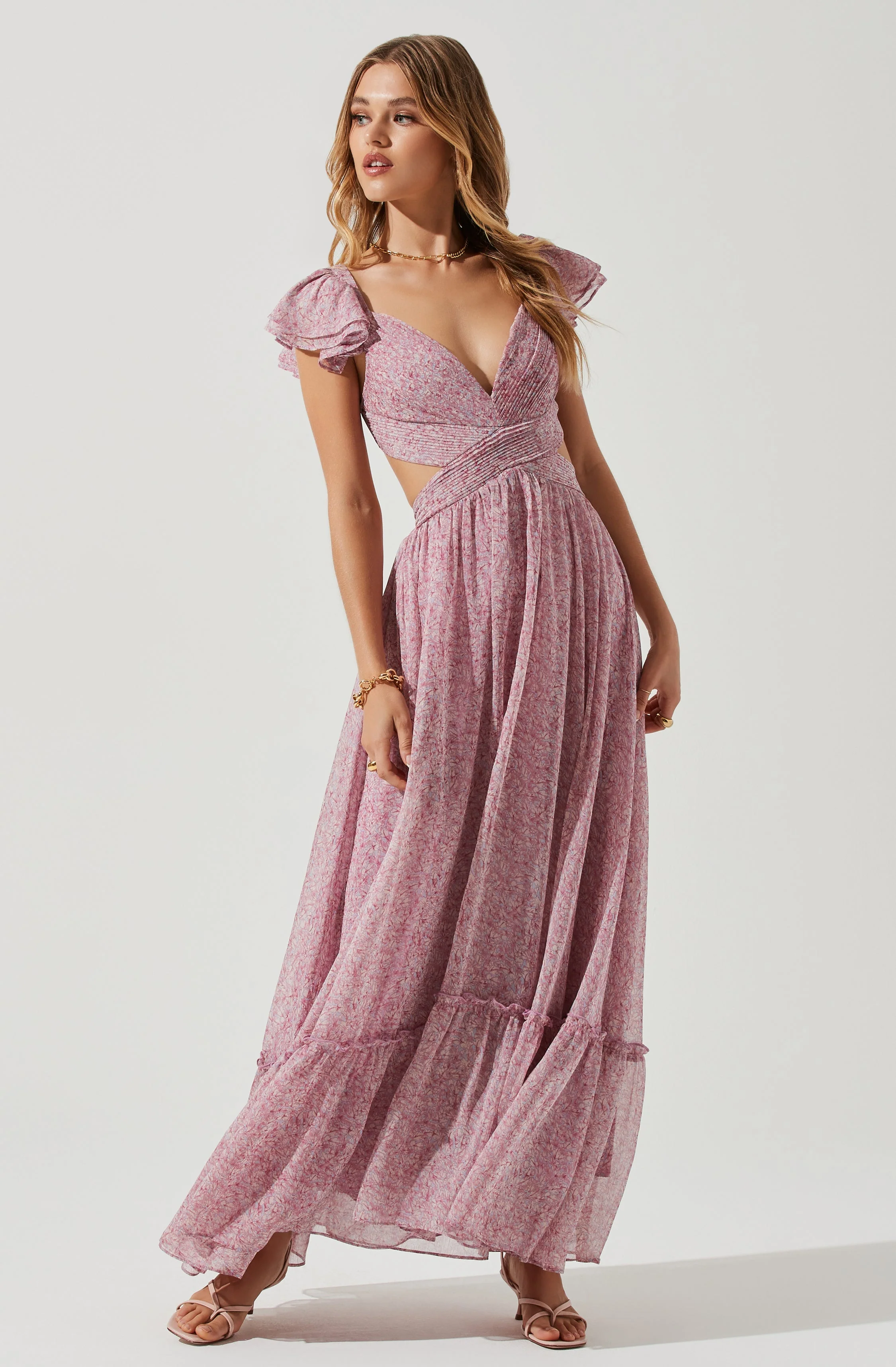 Katrina Flutter Sleeve Back Cutout Maxi Dress