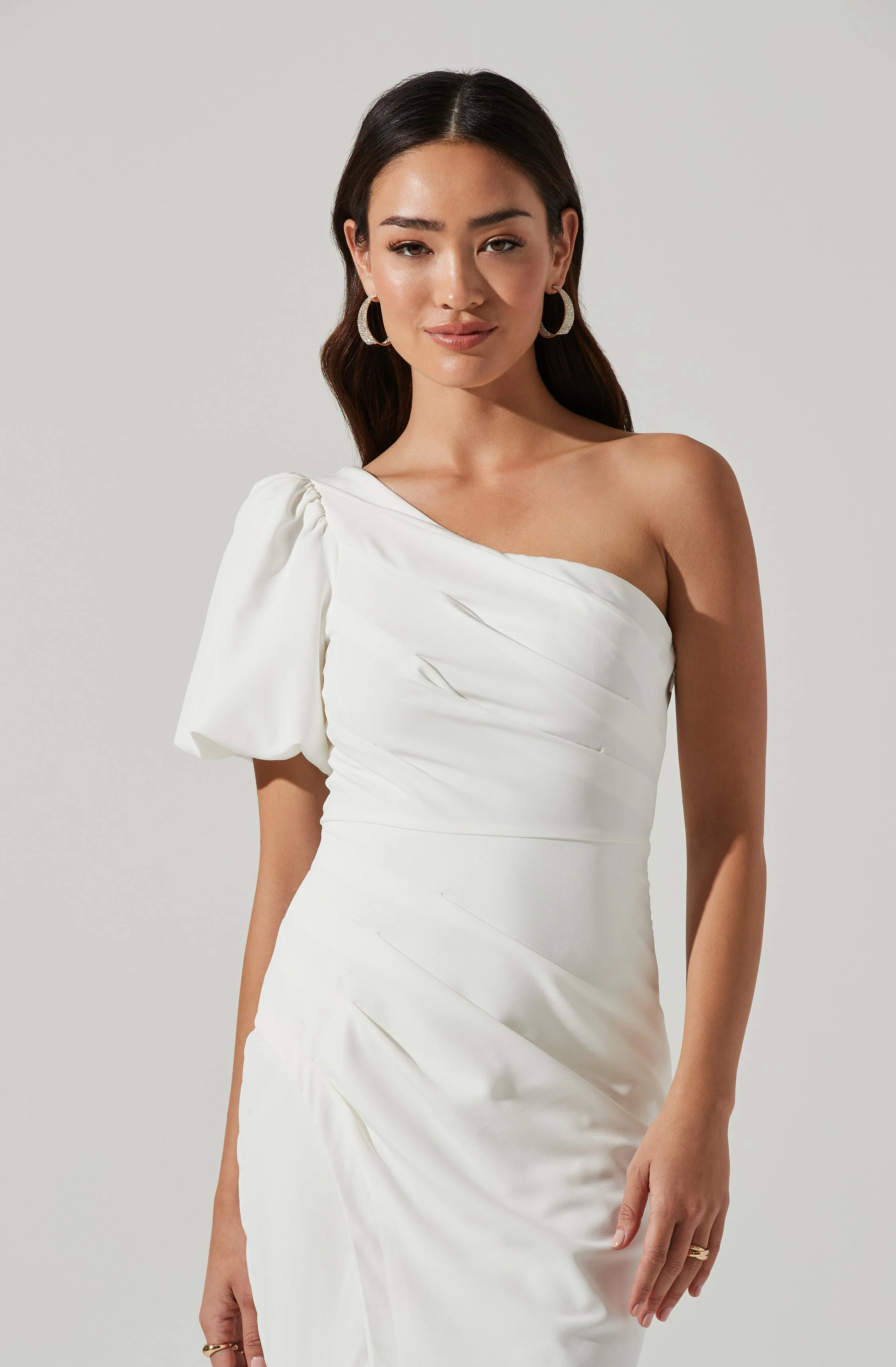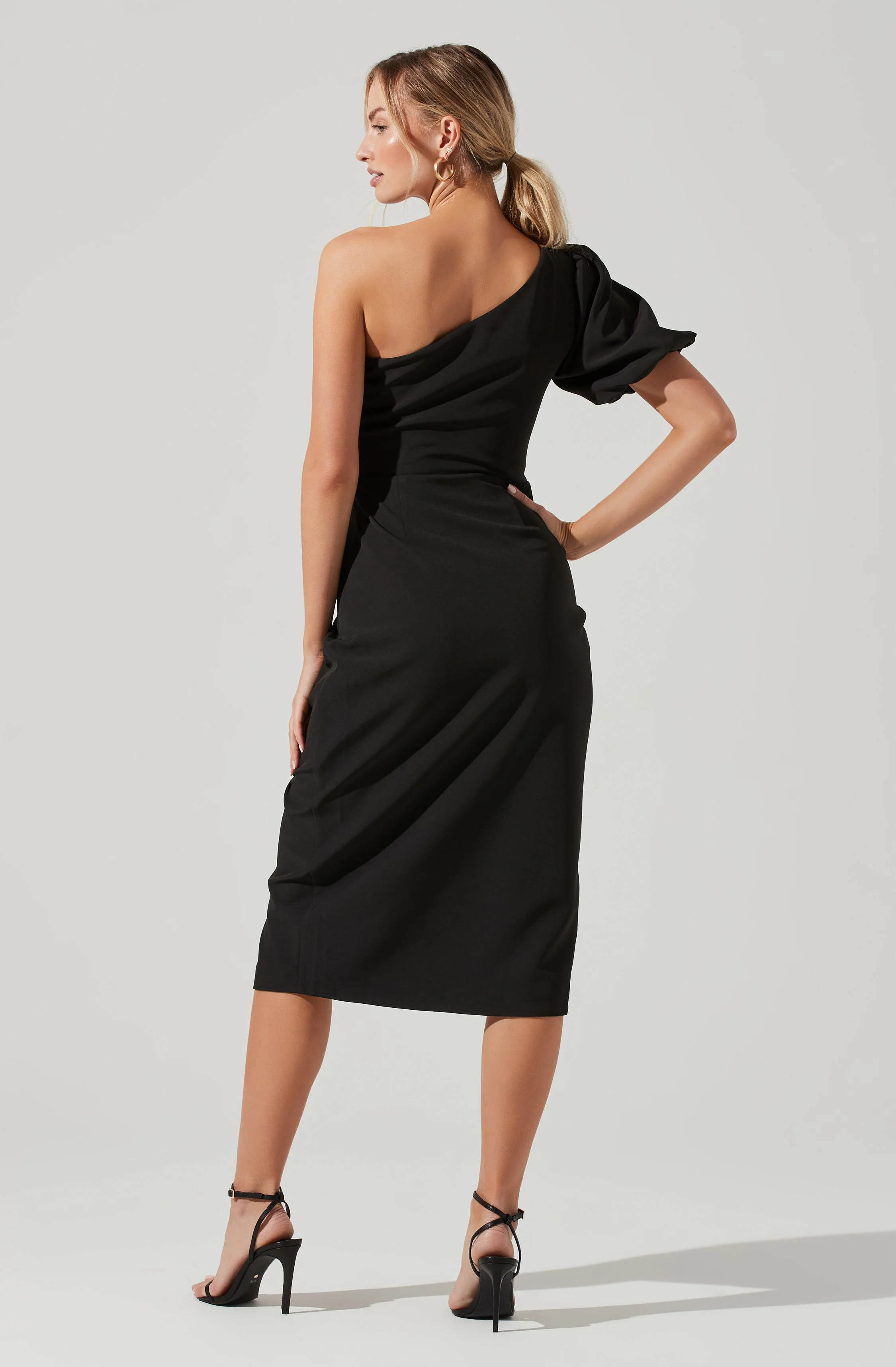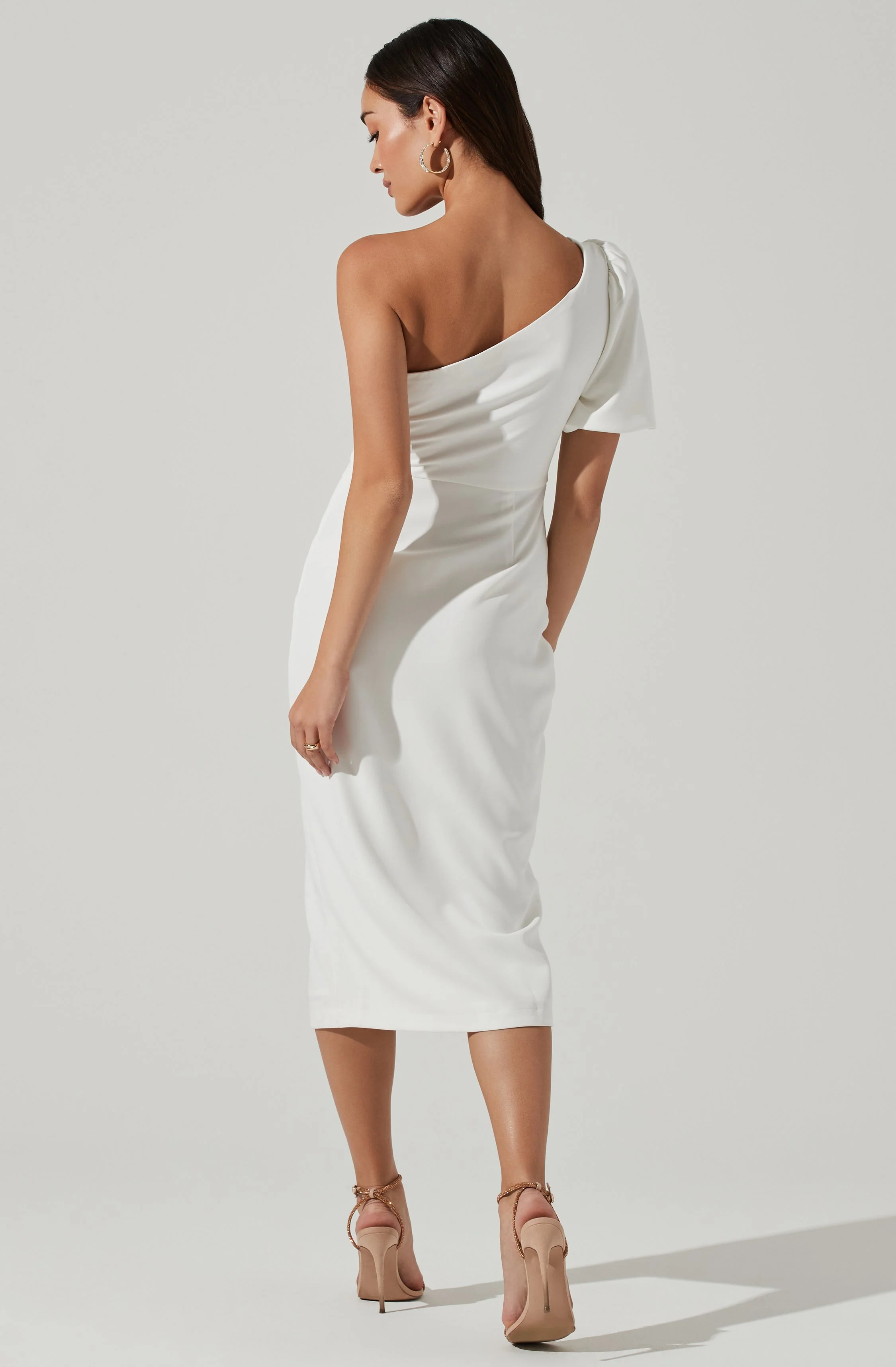 Off Shoulder Long Sleeve Cinched Bust Midi Dress