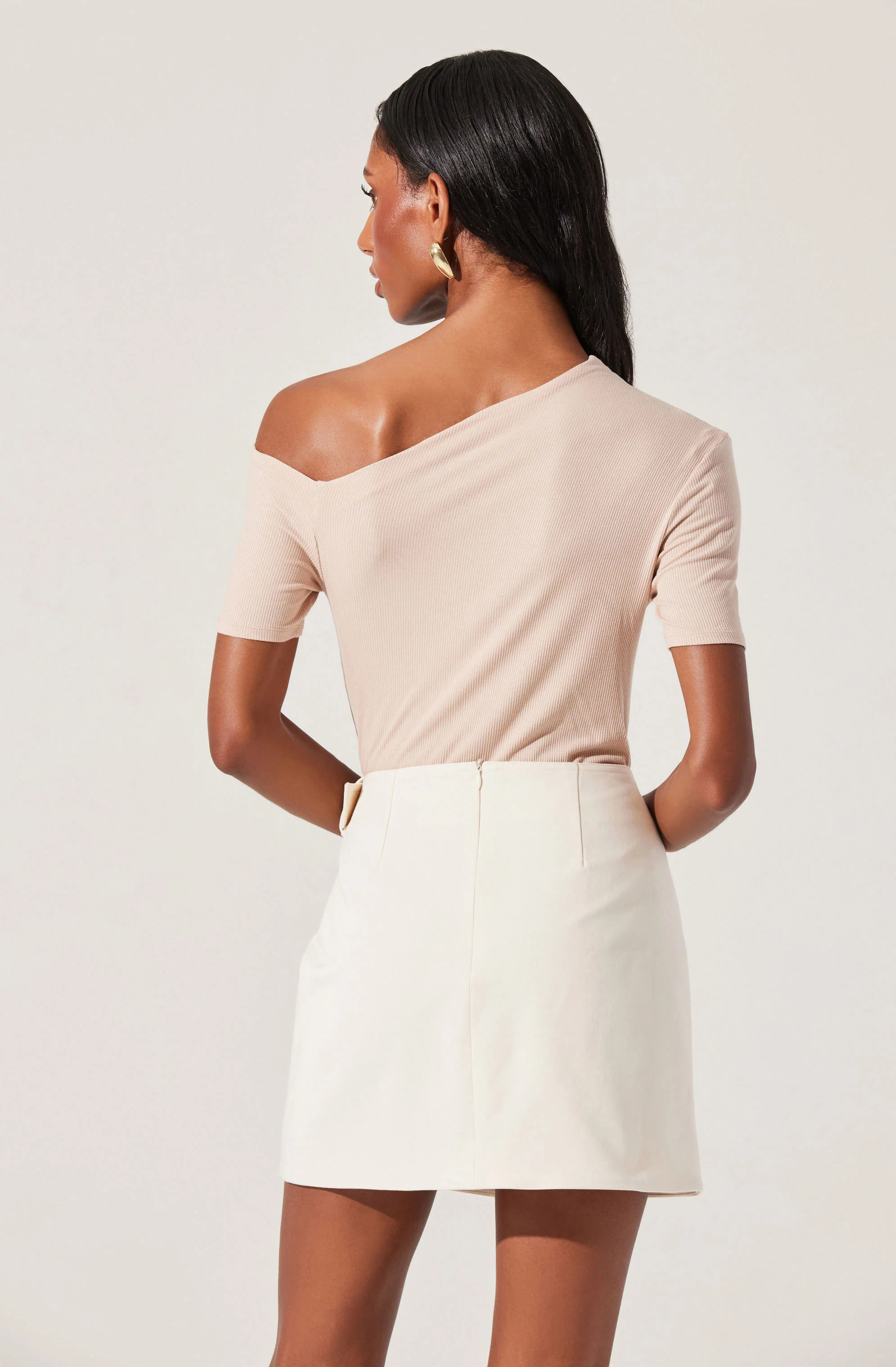 Ash Ribbed Off Shoulder Top