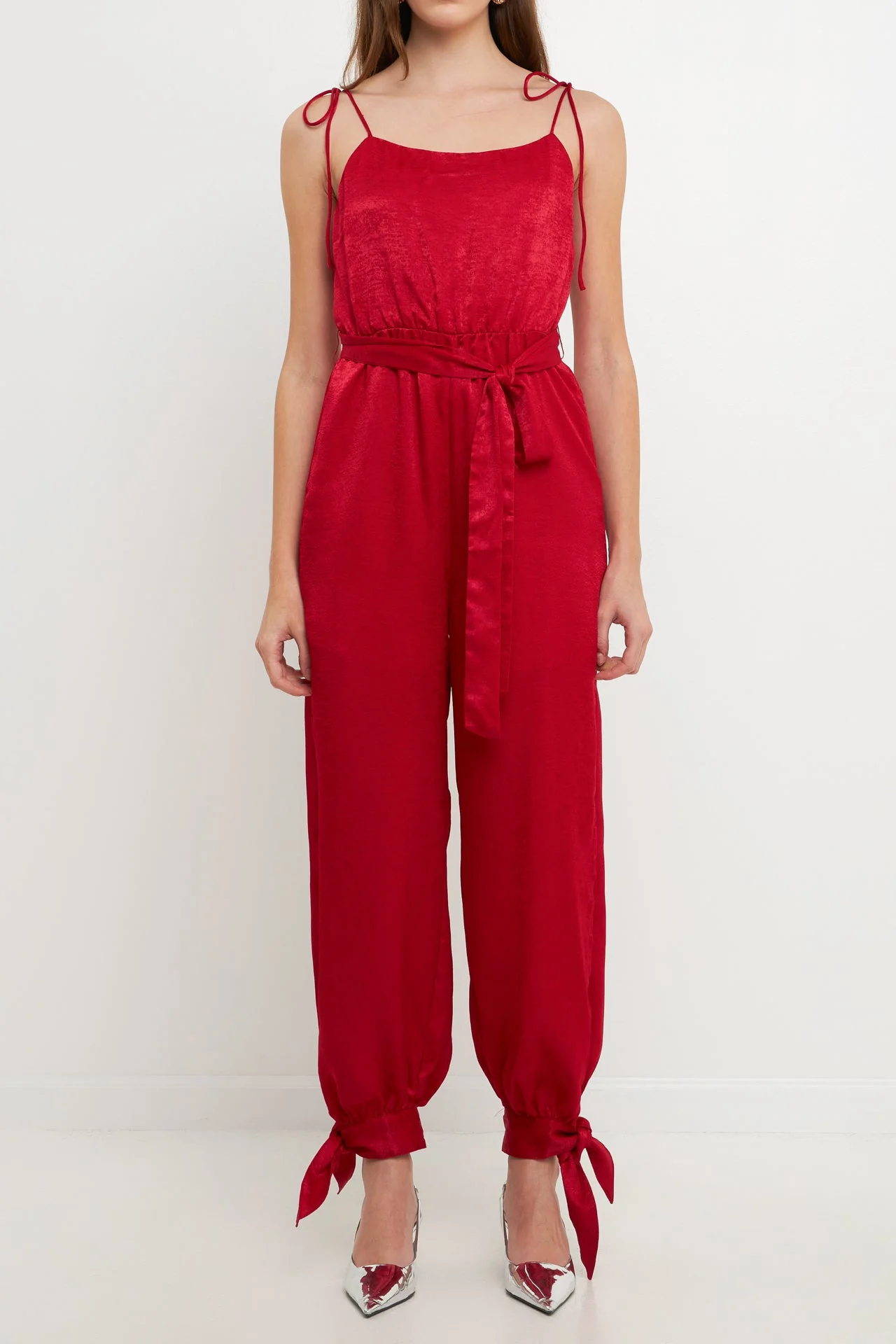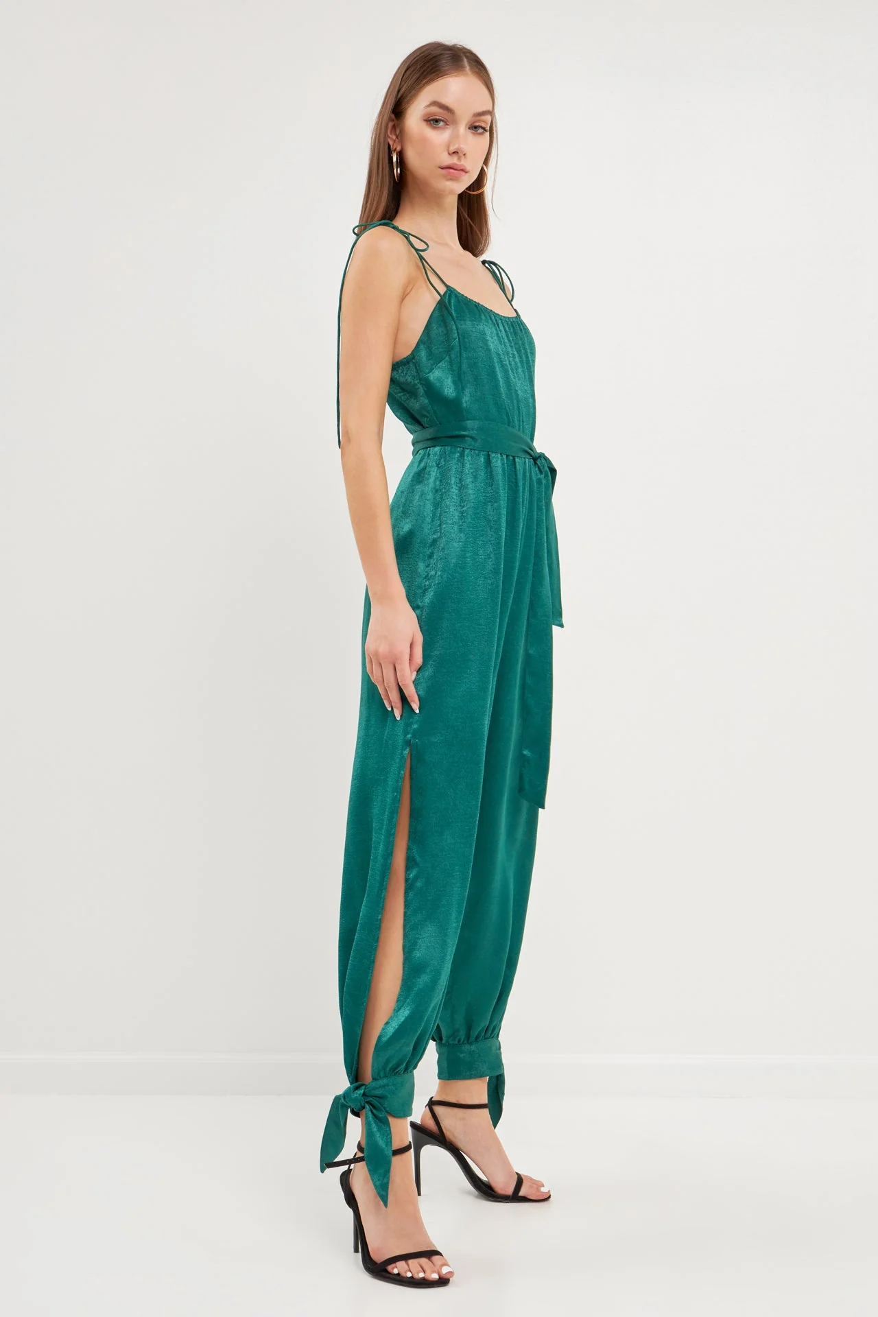 Side Bow Tie Slit Jumpsuit