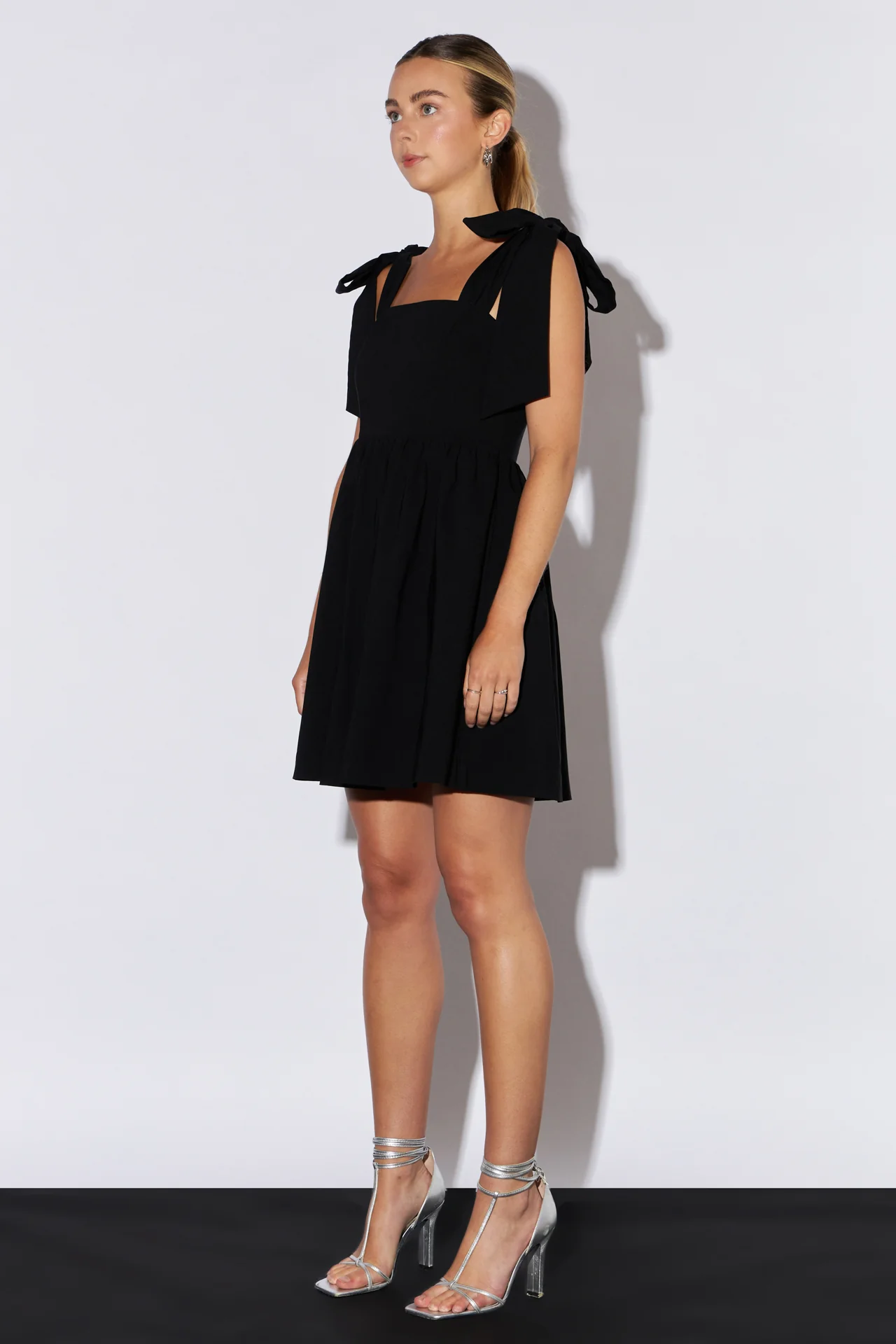 Bowed Square Neckline Baby Doll Mini