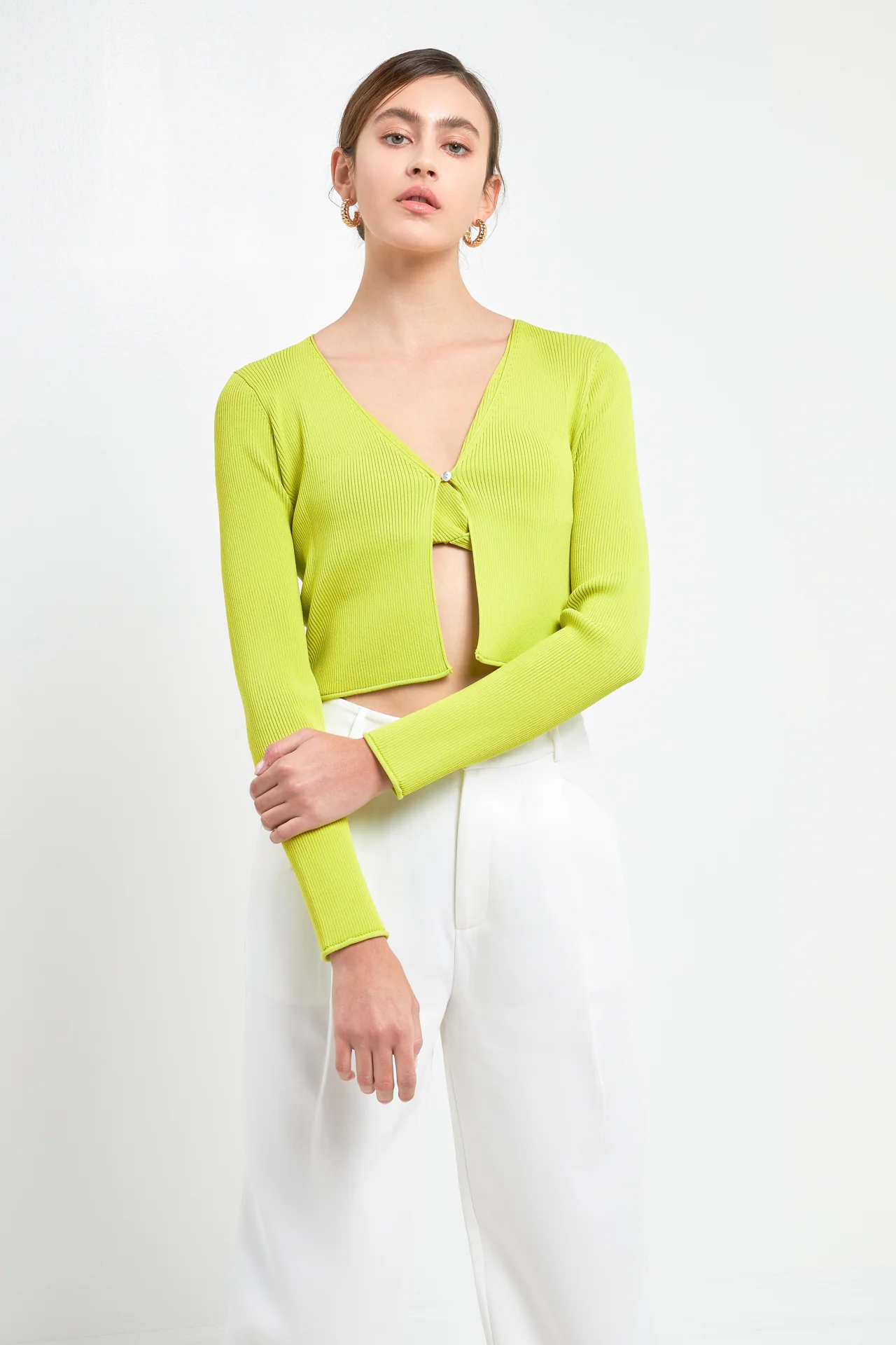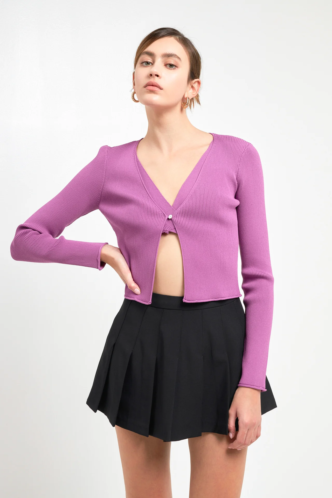 Single Button Fine Rib Cardigan