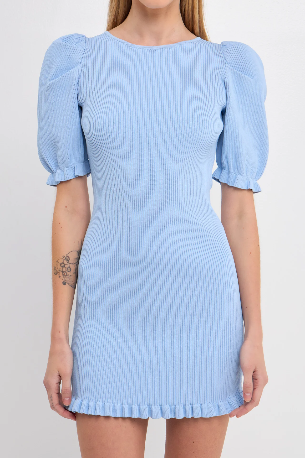 Back Tied straps Puff Sleeve Mini Dress
