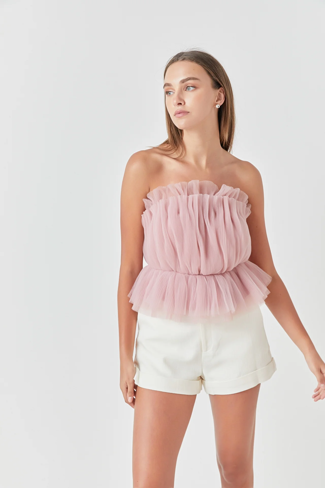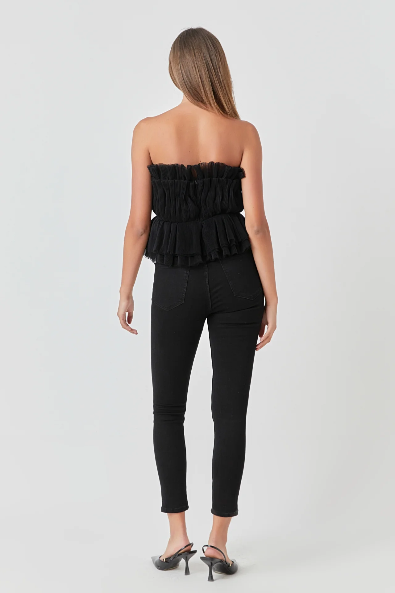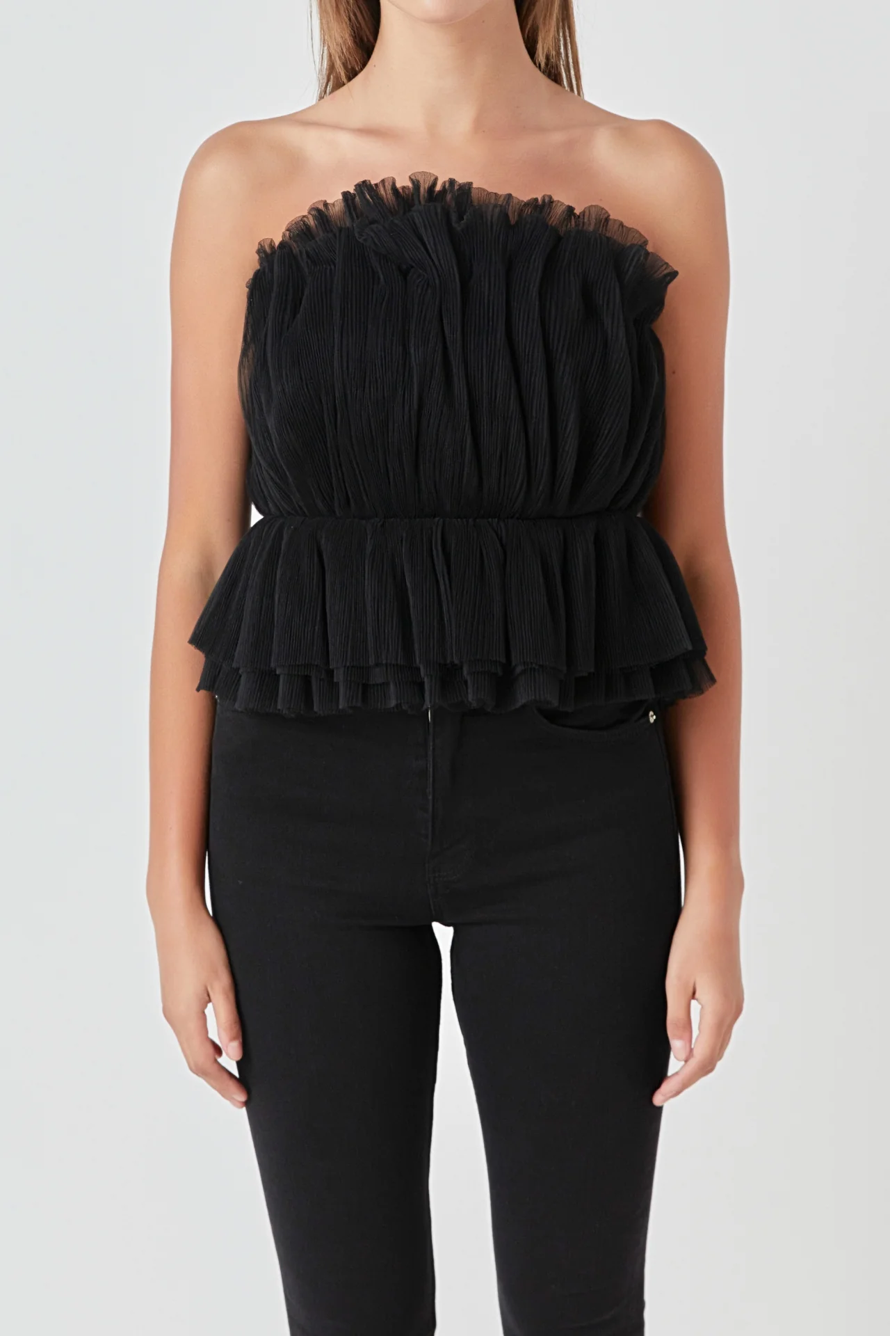 Strapless Tulle Peplum Top