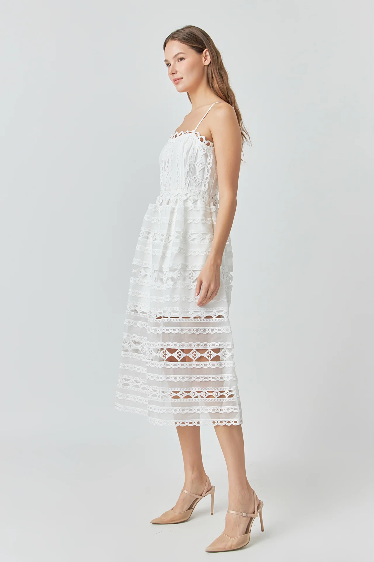 Combination Lace Spaghetti Strap Midi