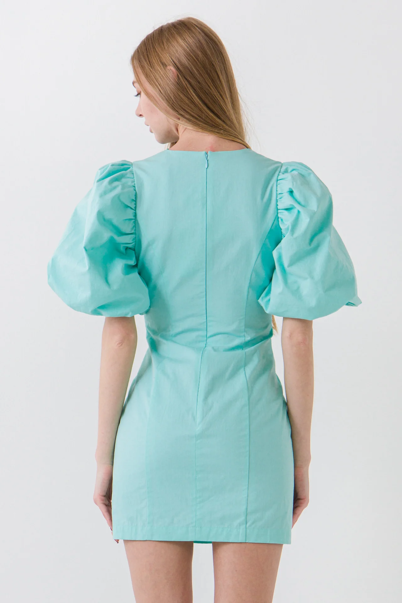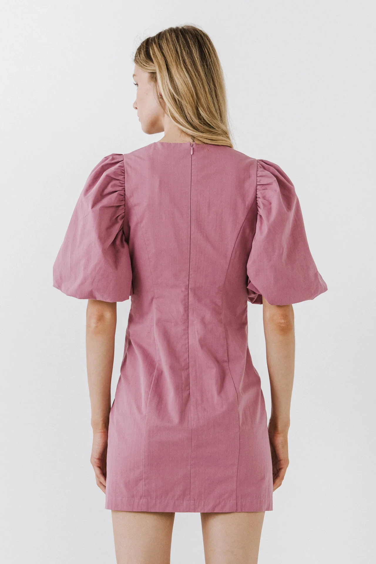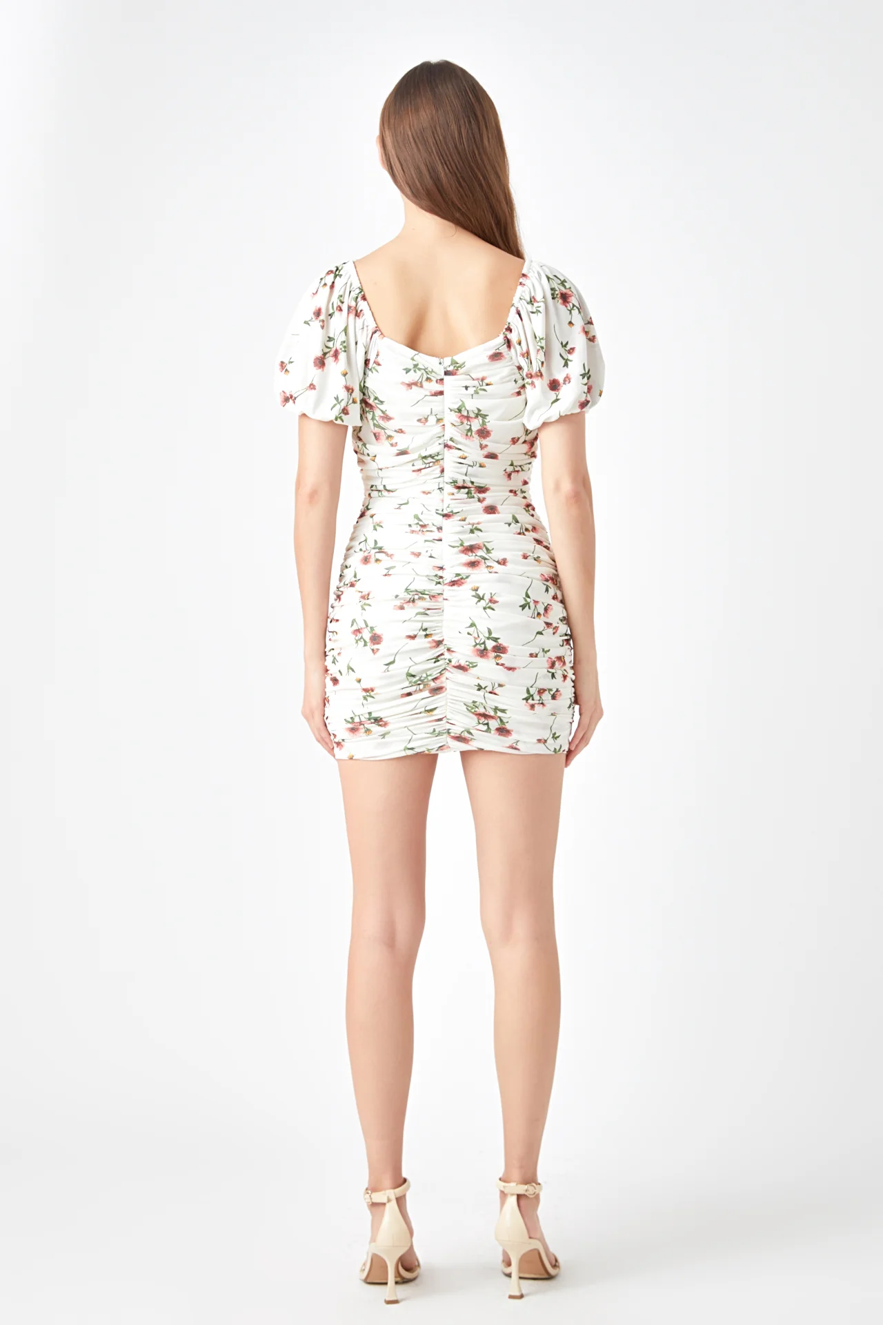 Floral Mesh Ruched Mini Dress with Short Sleeves