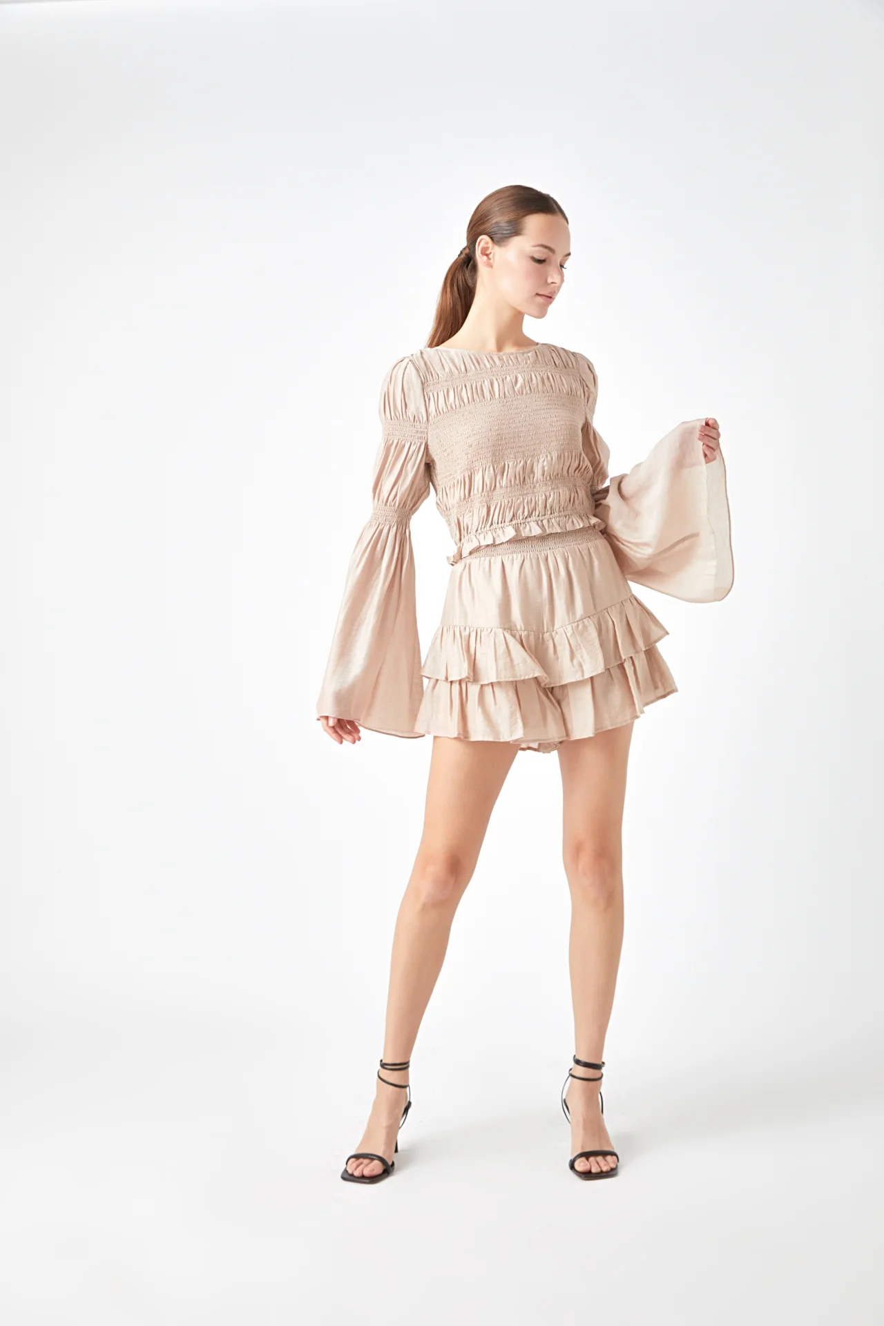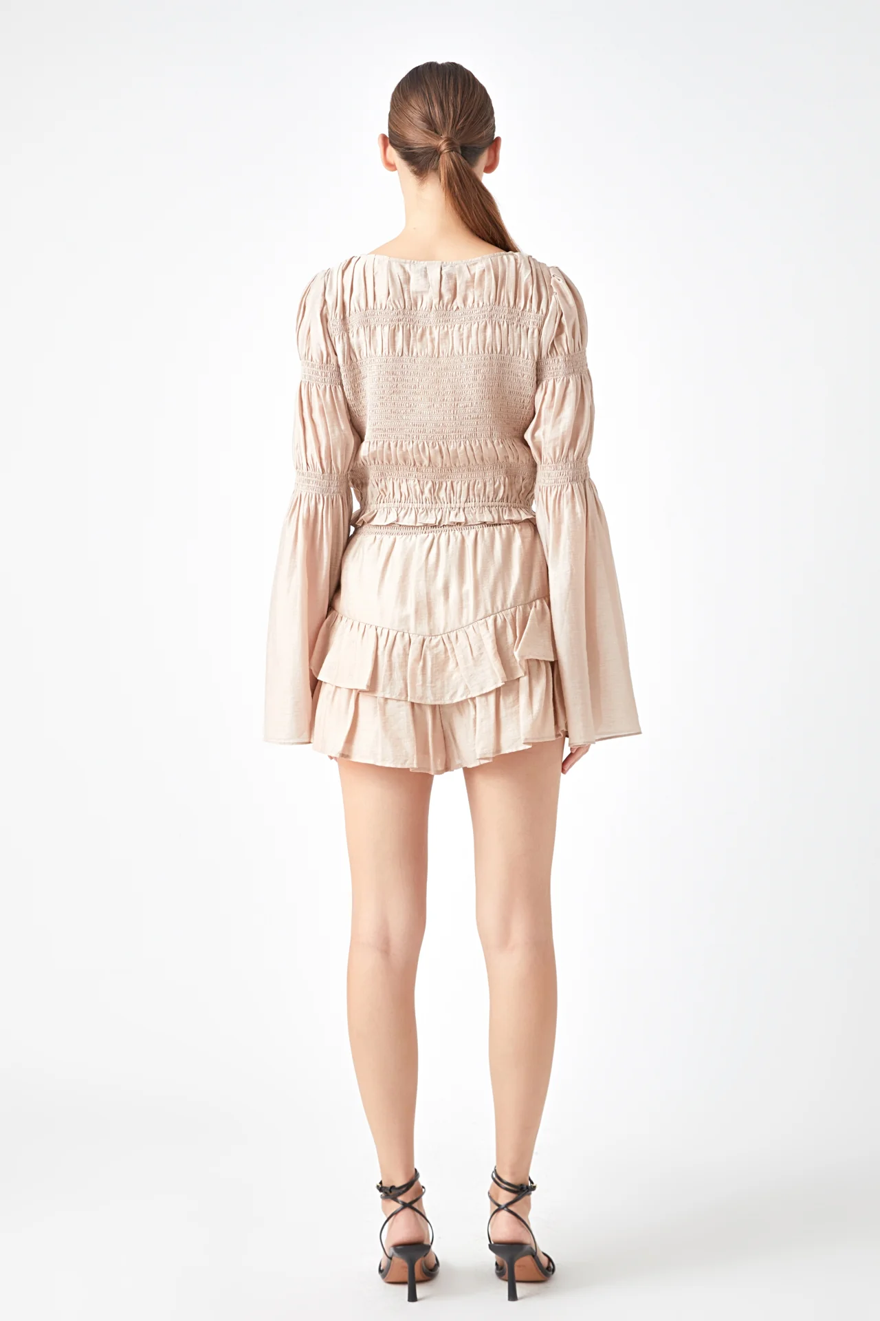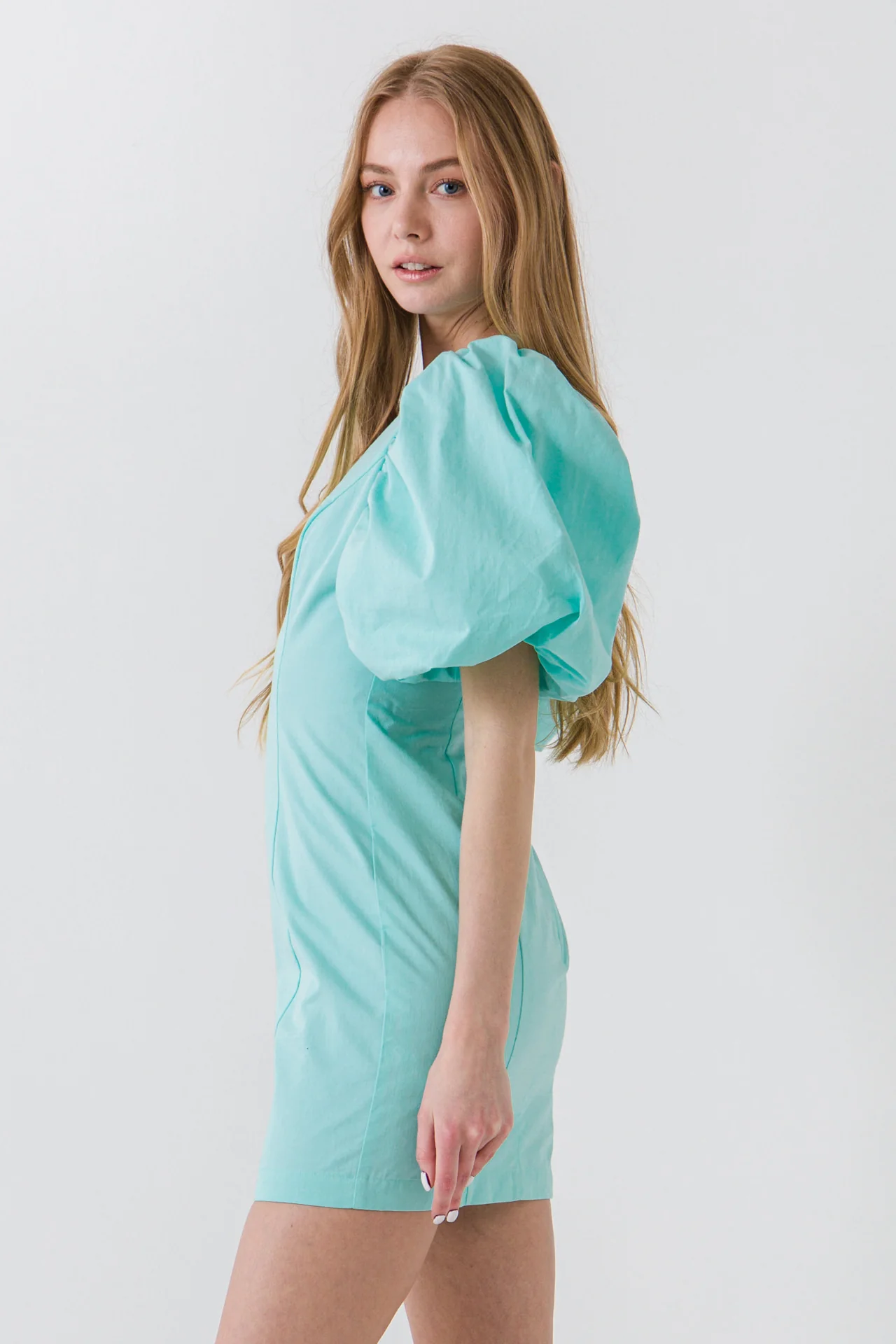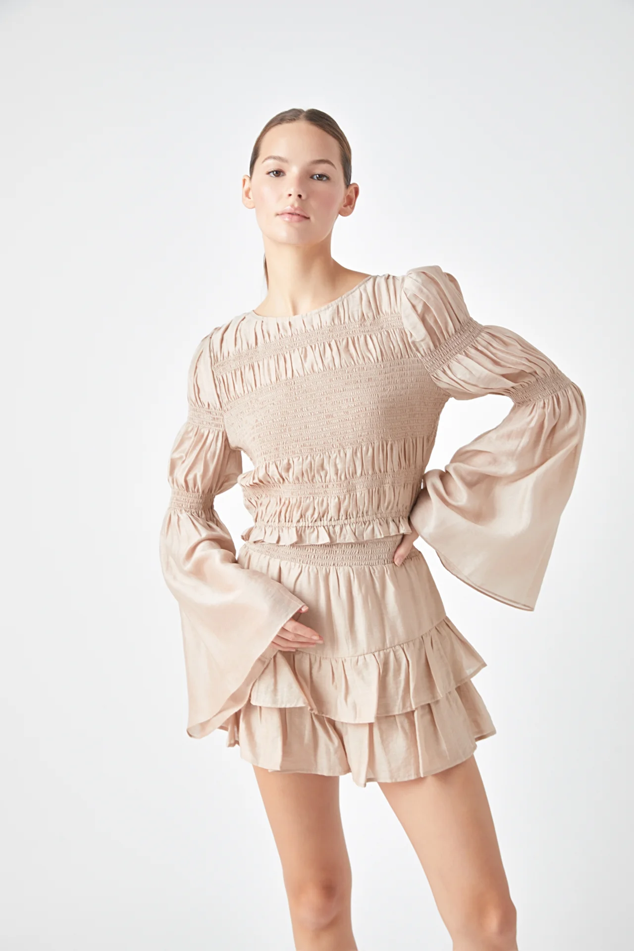 Floral Mesh Ruched Mini Dress with Short Sleeves