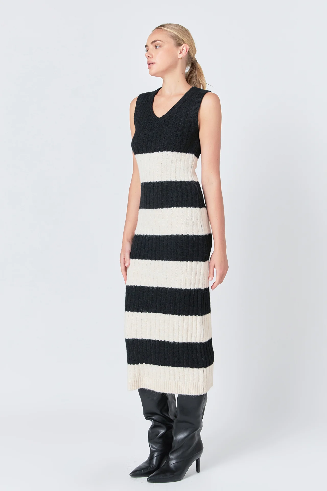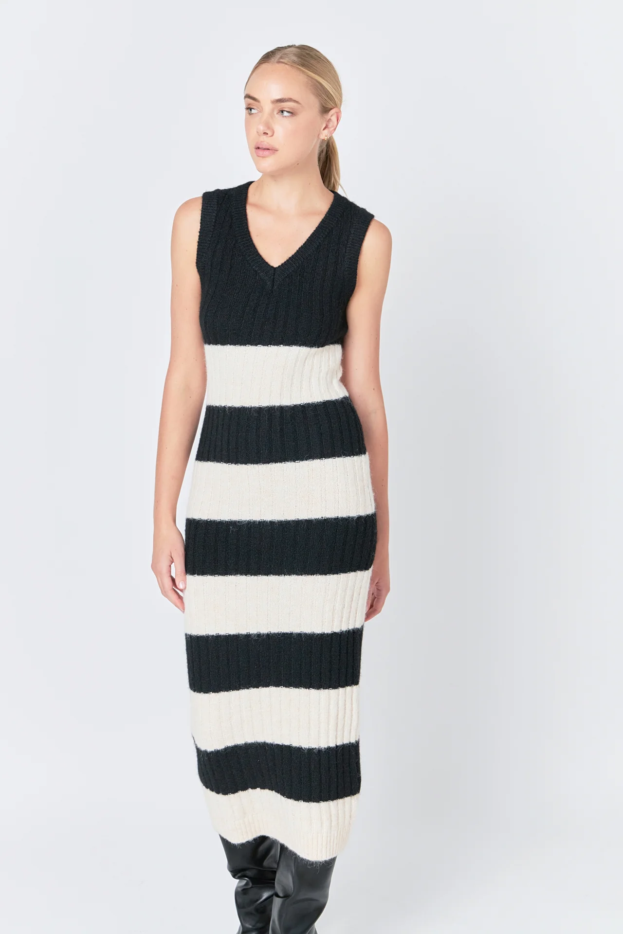 Striped Knit Midi Dress