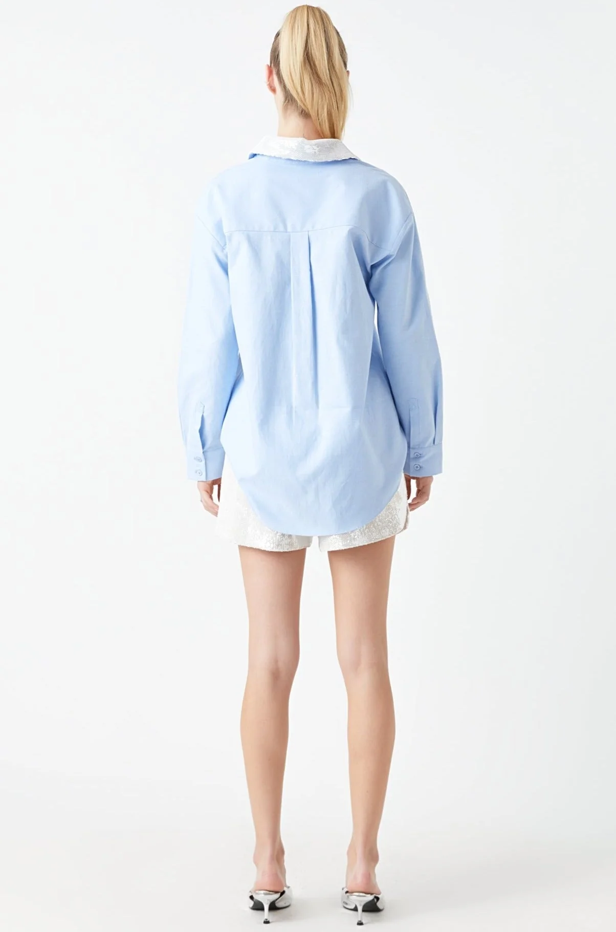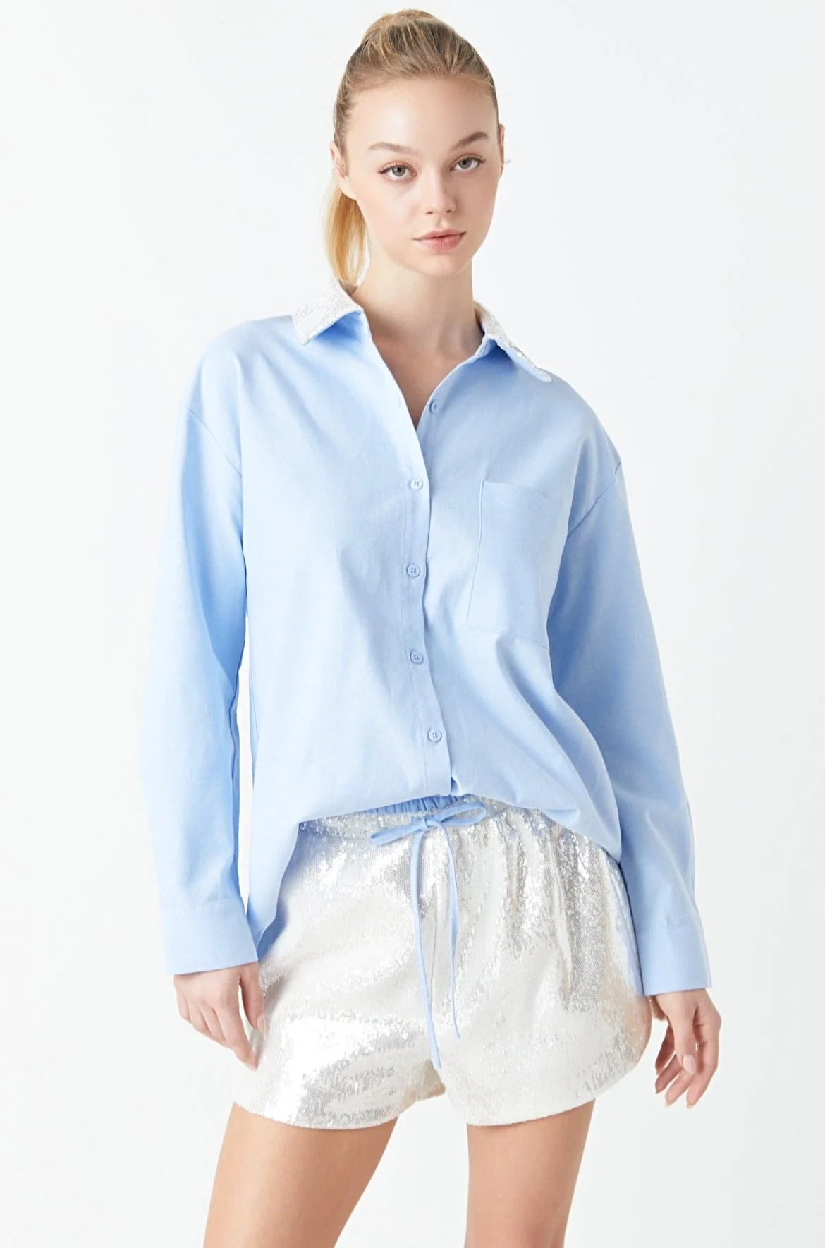 Oversized Oxford Shirt with Sequin Collar