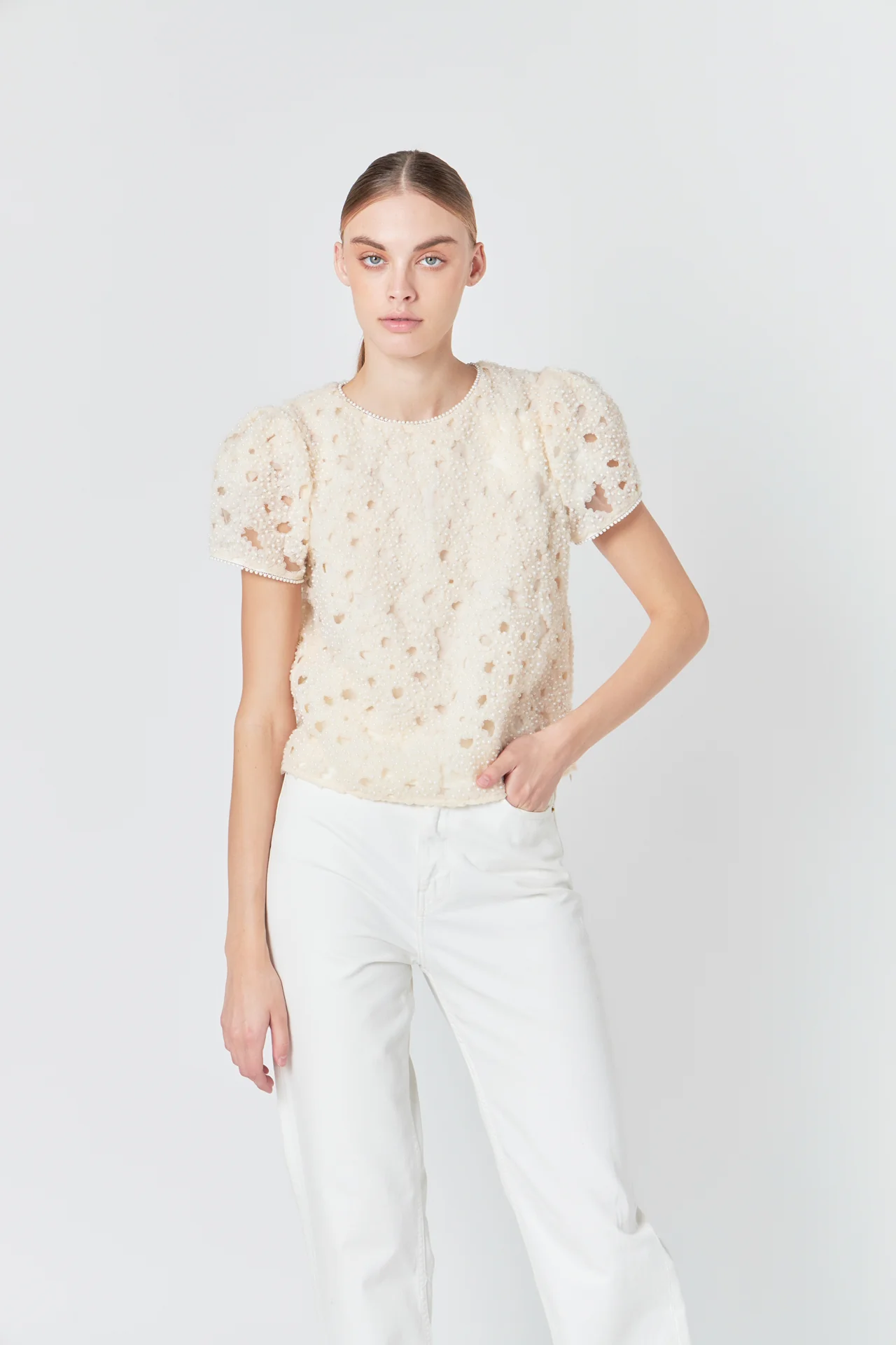 Pearl and Tulle Textured Top