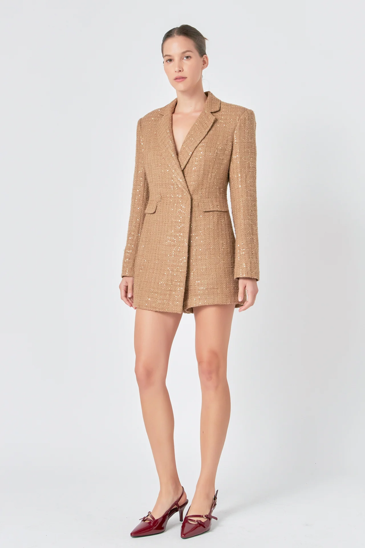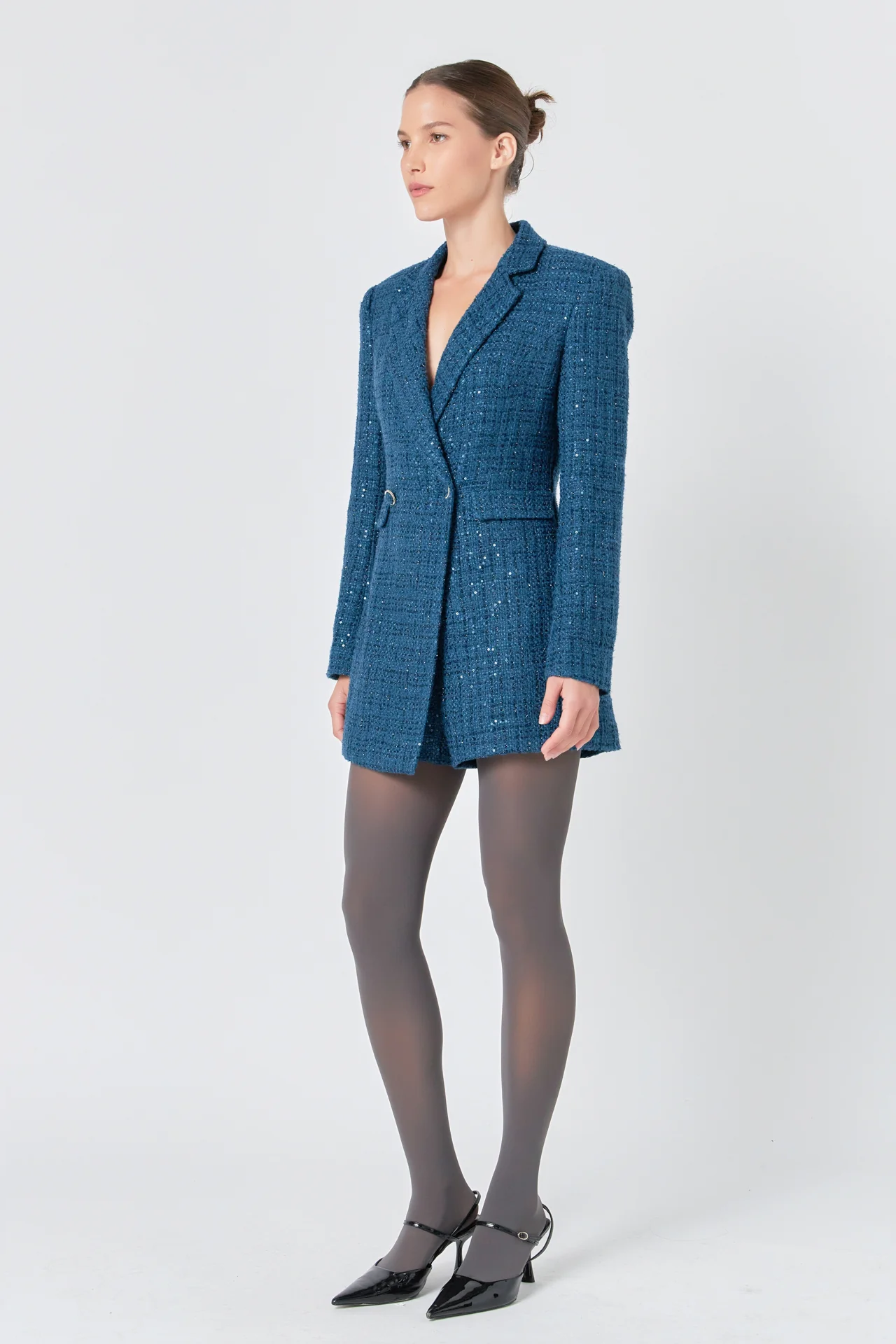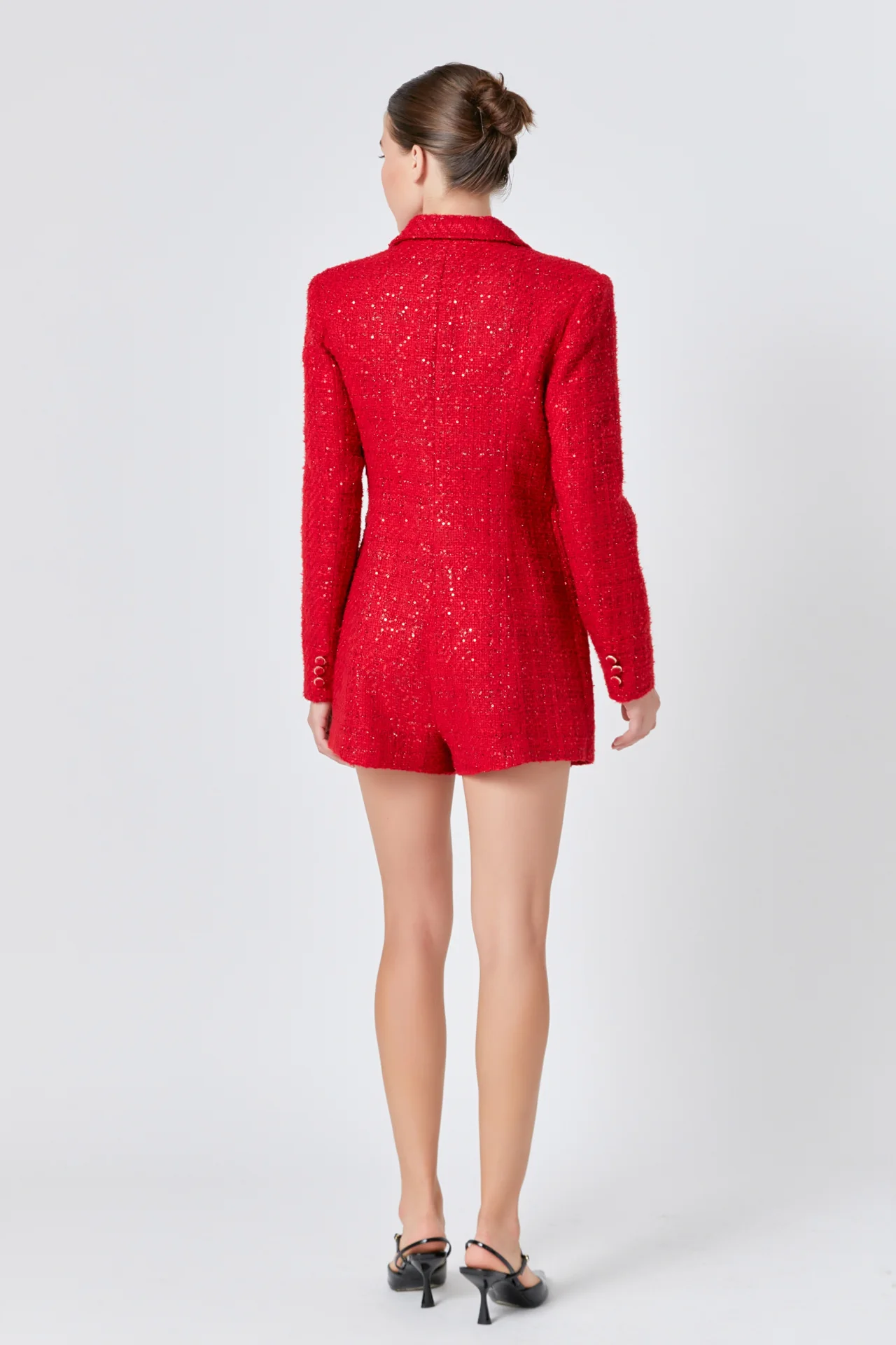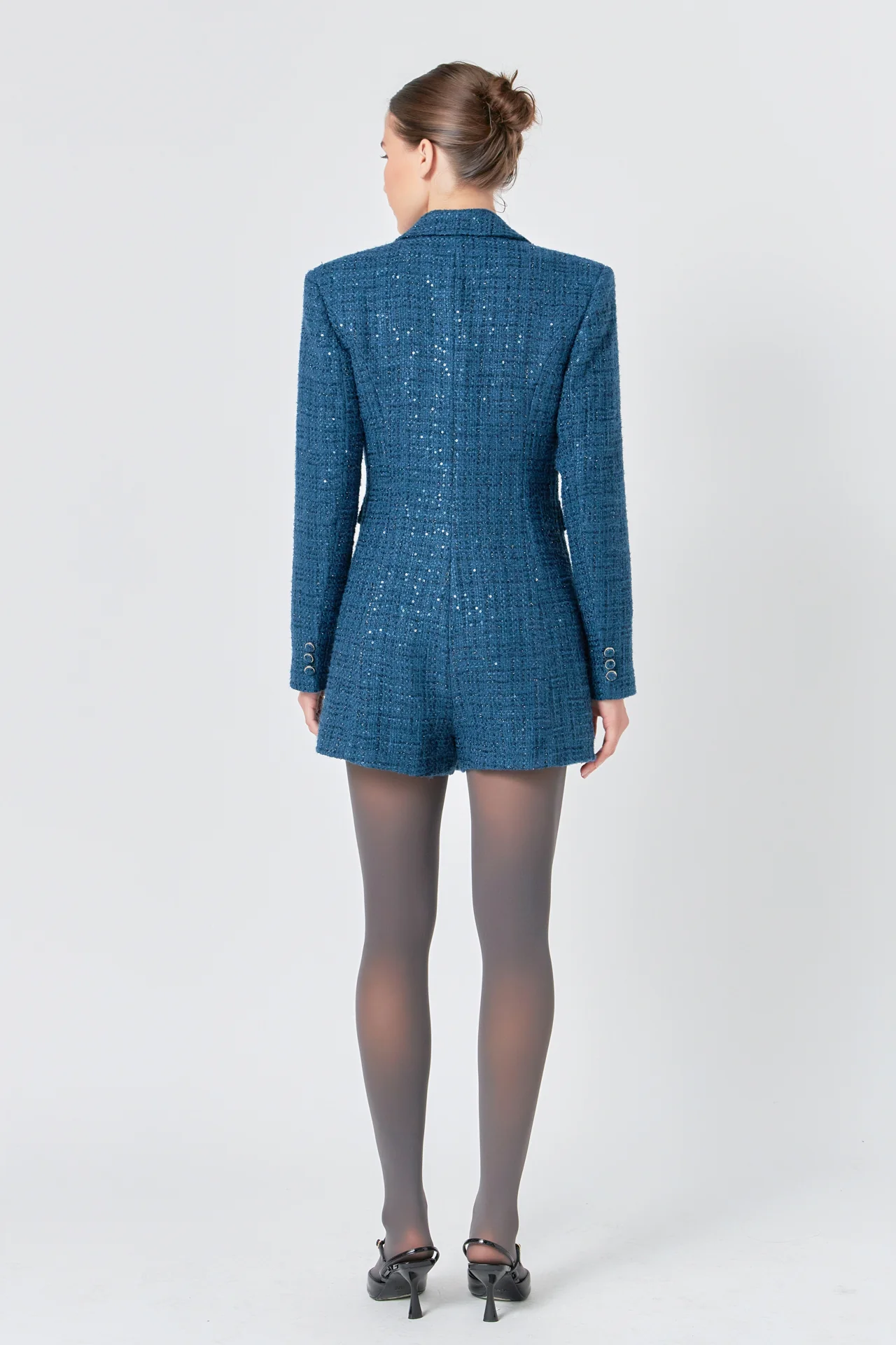Premium Sequin Tweed Blazer Romper