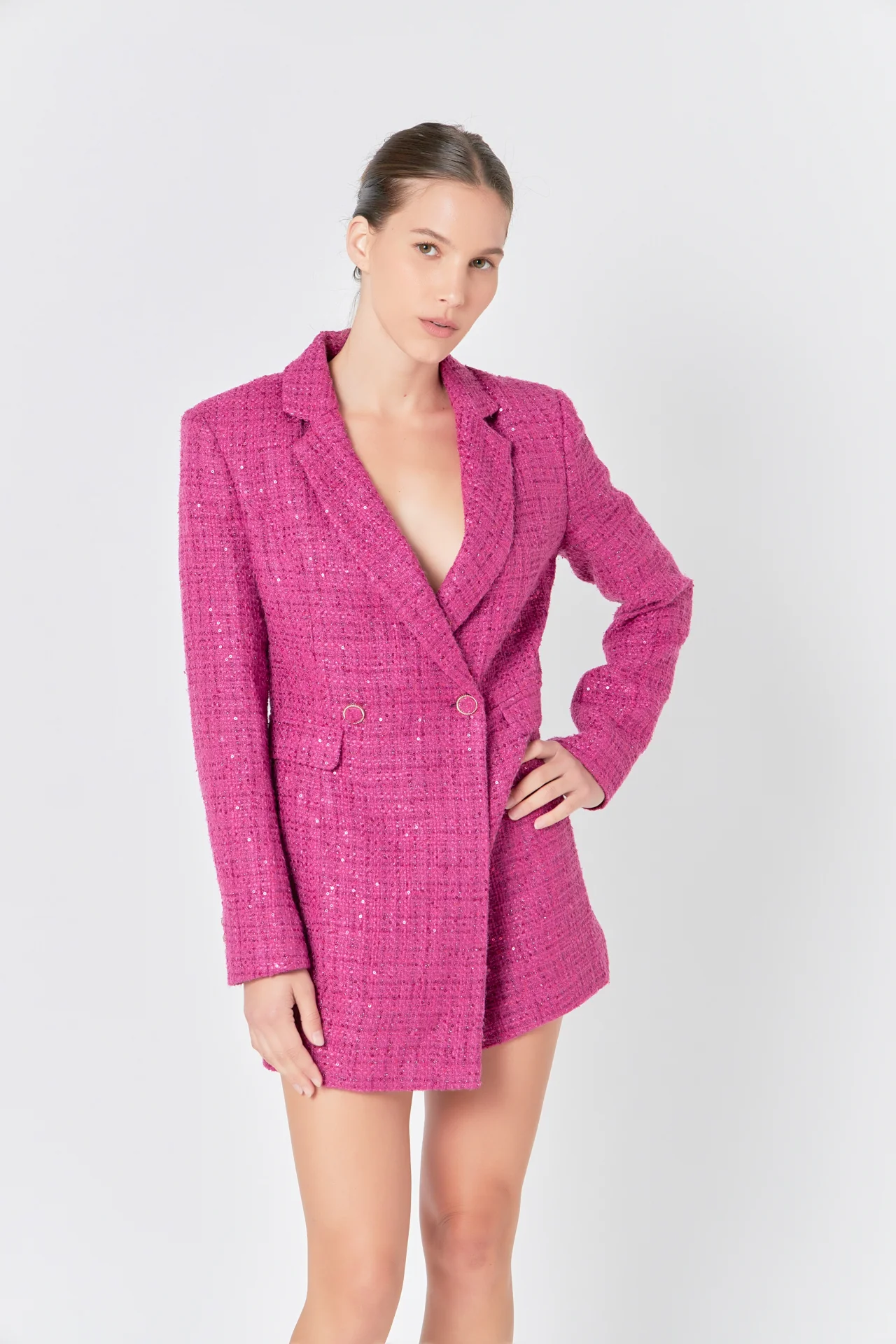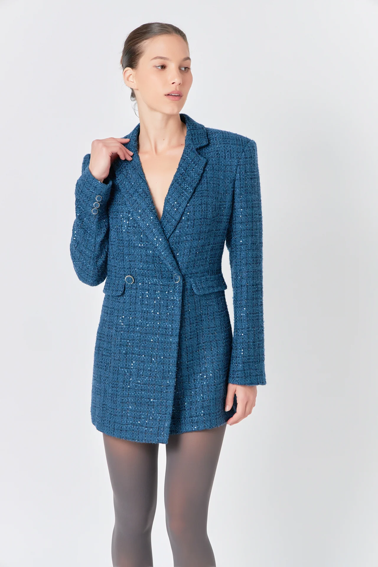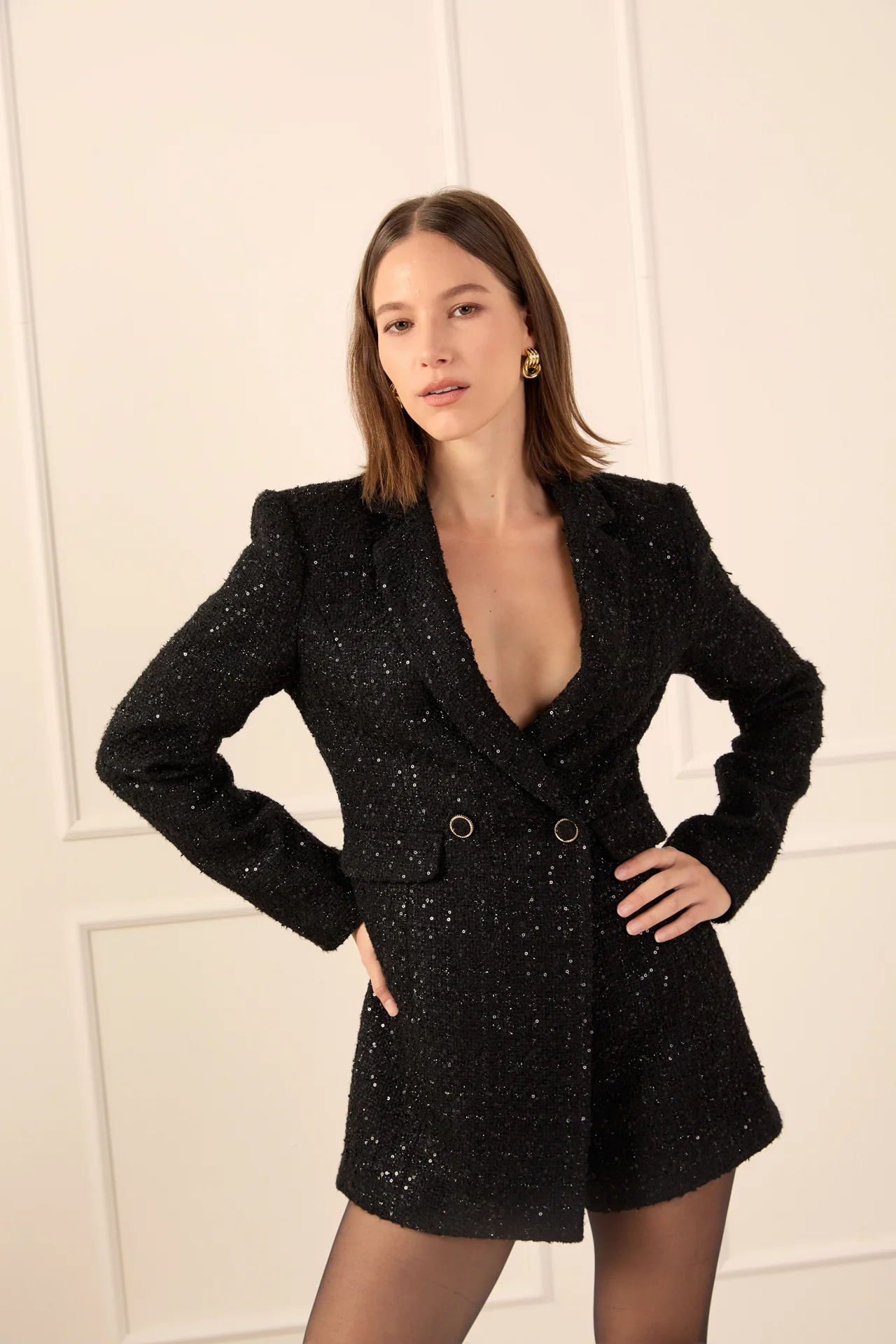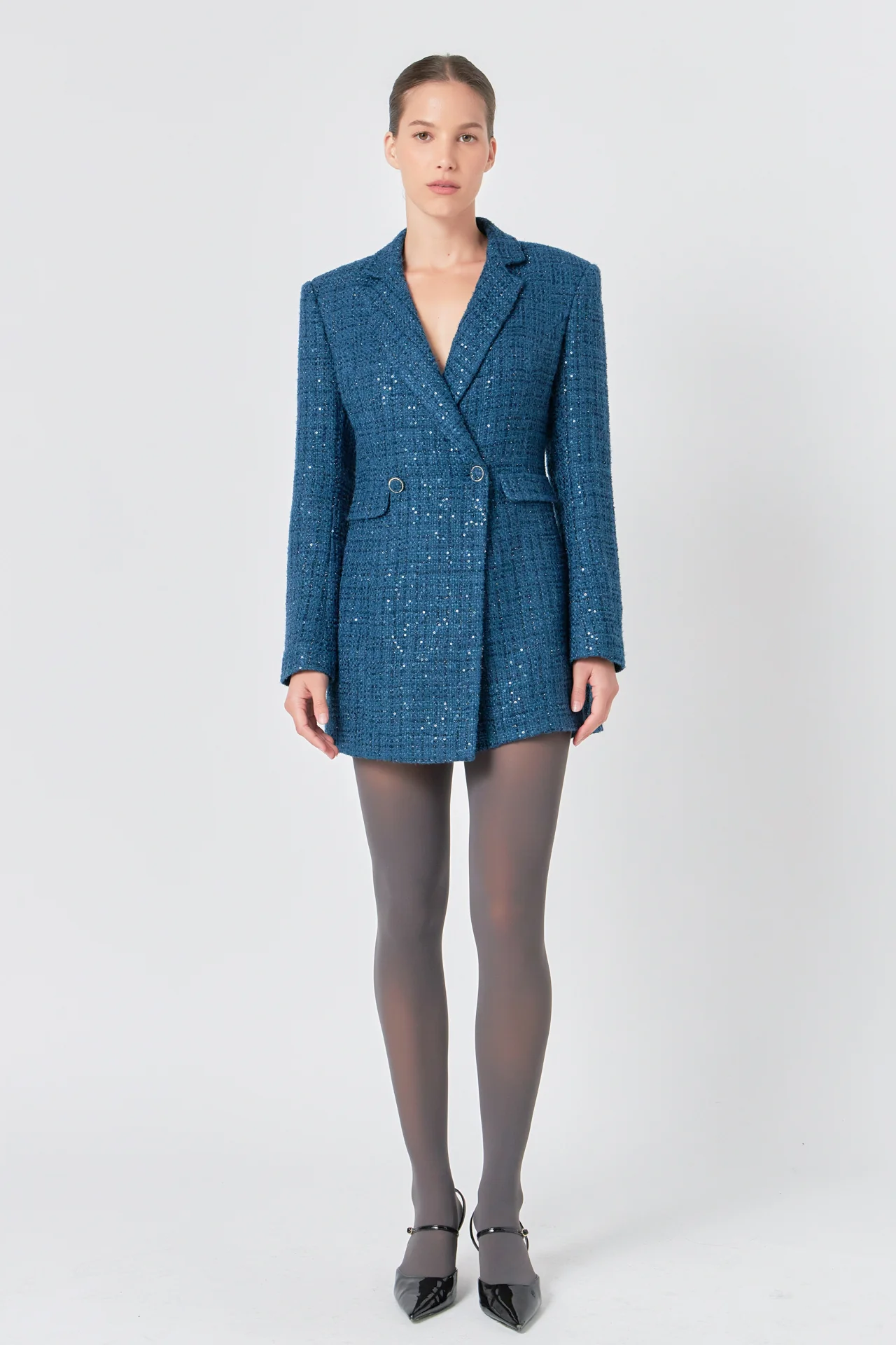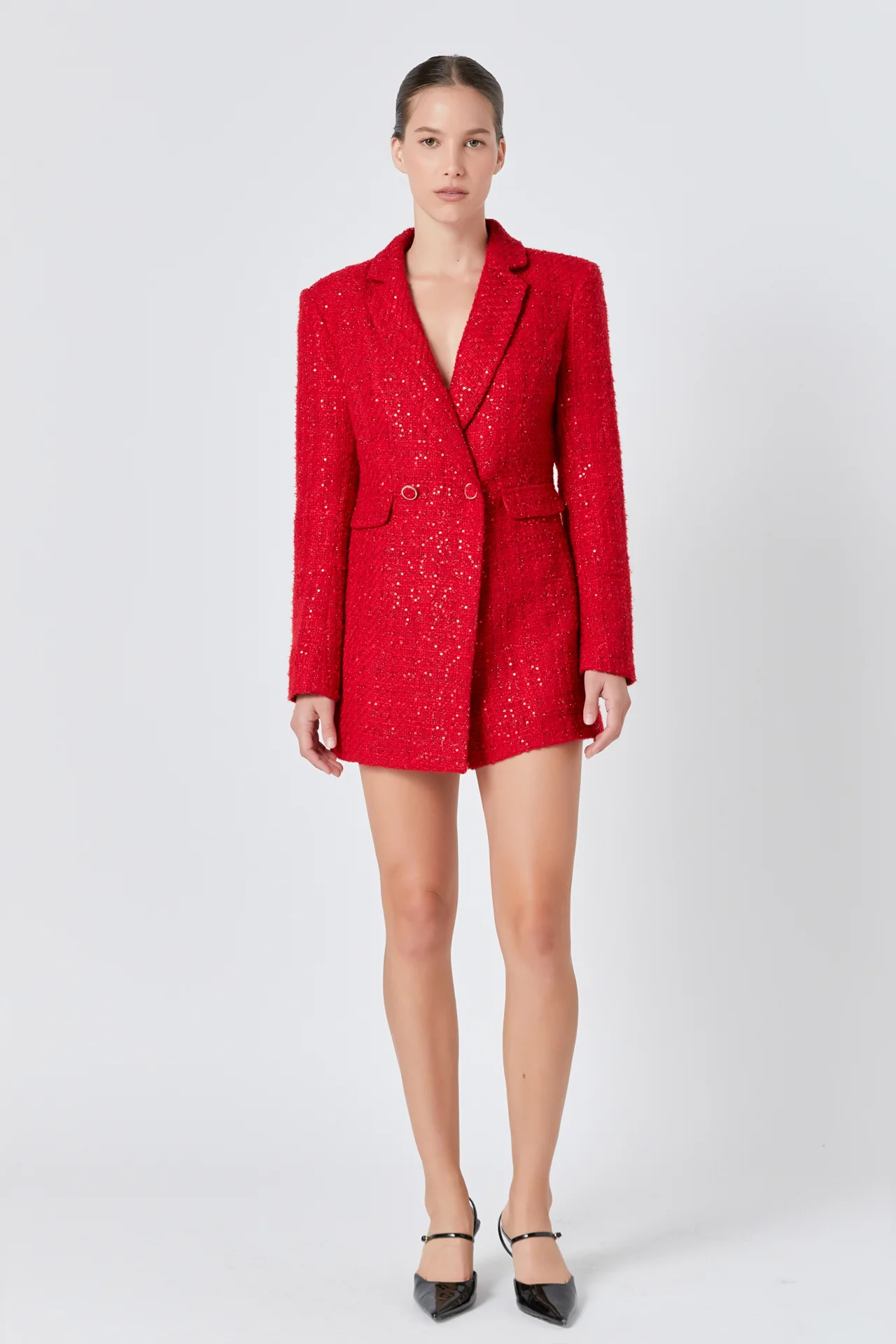 Premium Sequin Tweed Blazer Romper