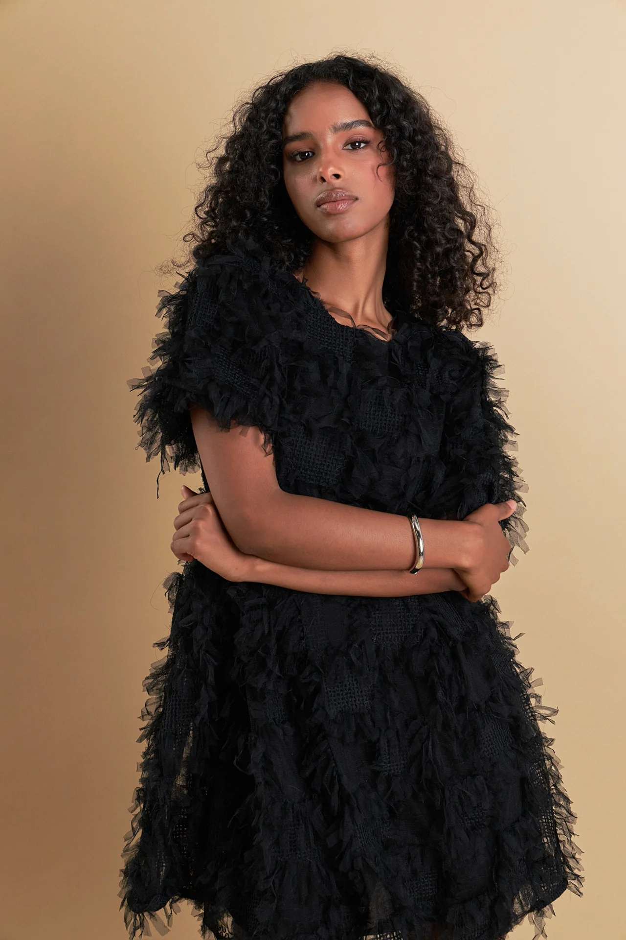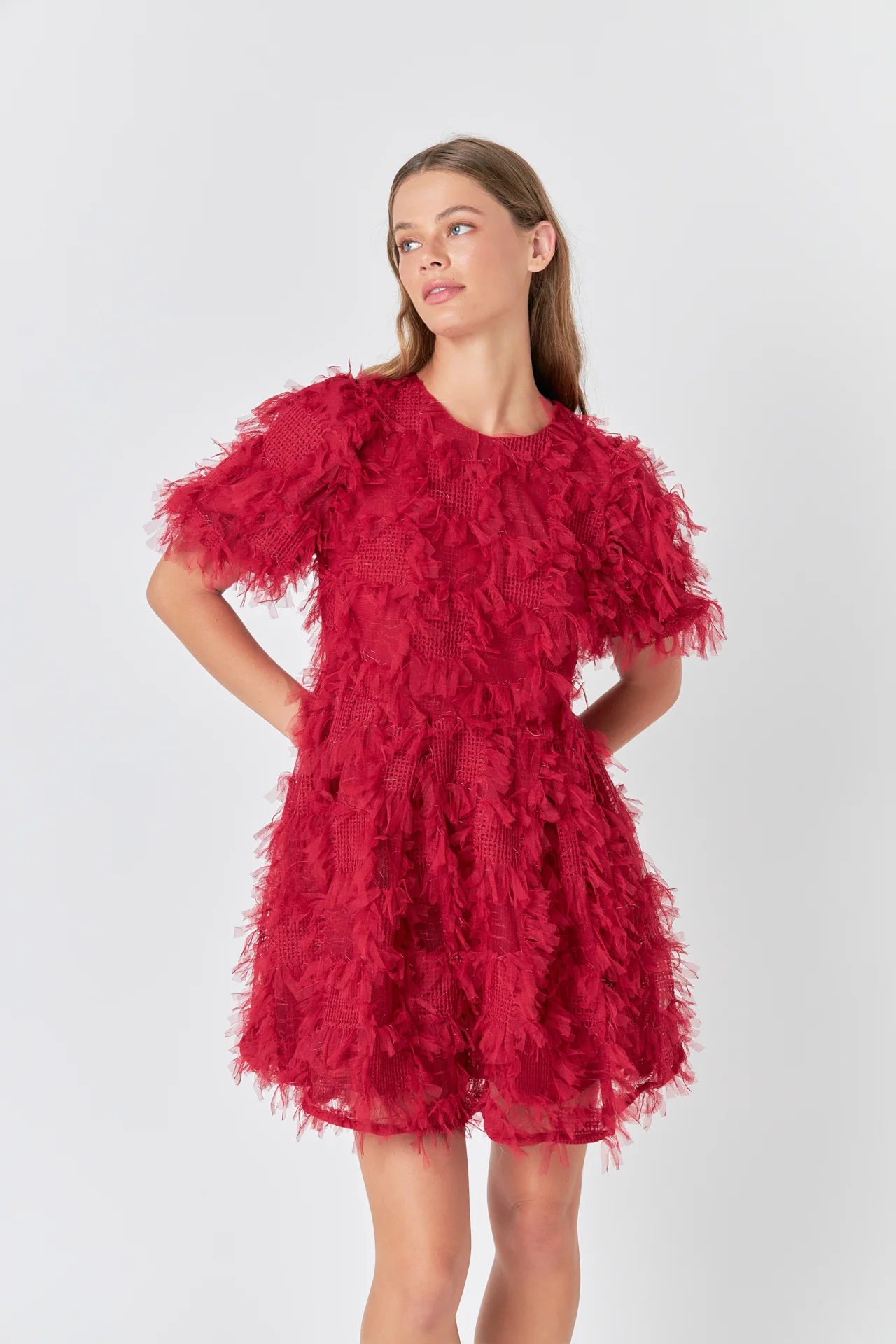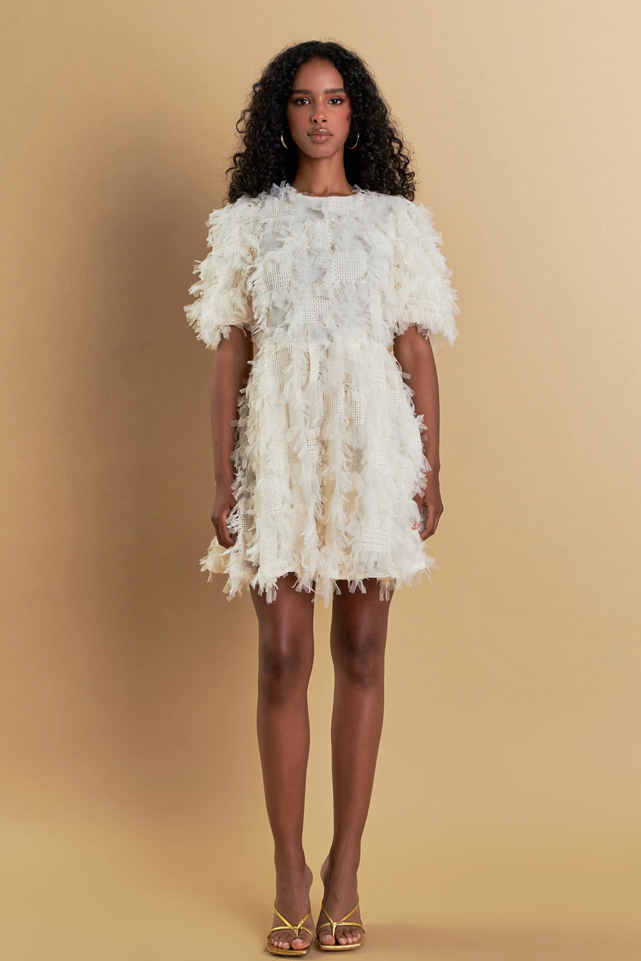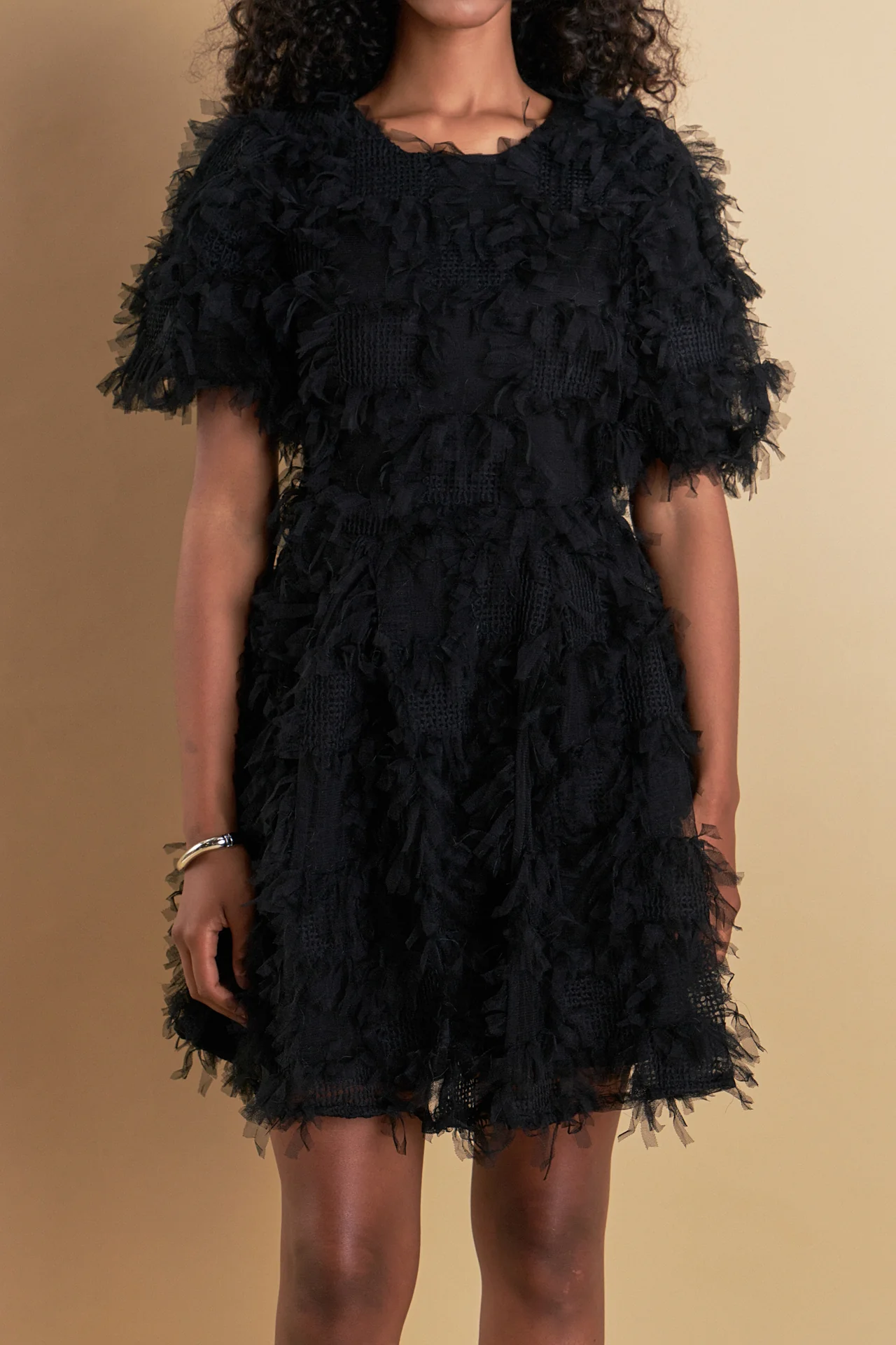 Textured Mesh Mini Dress