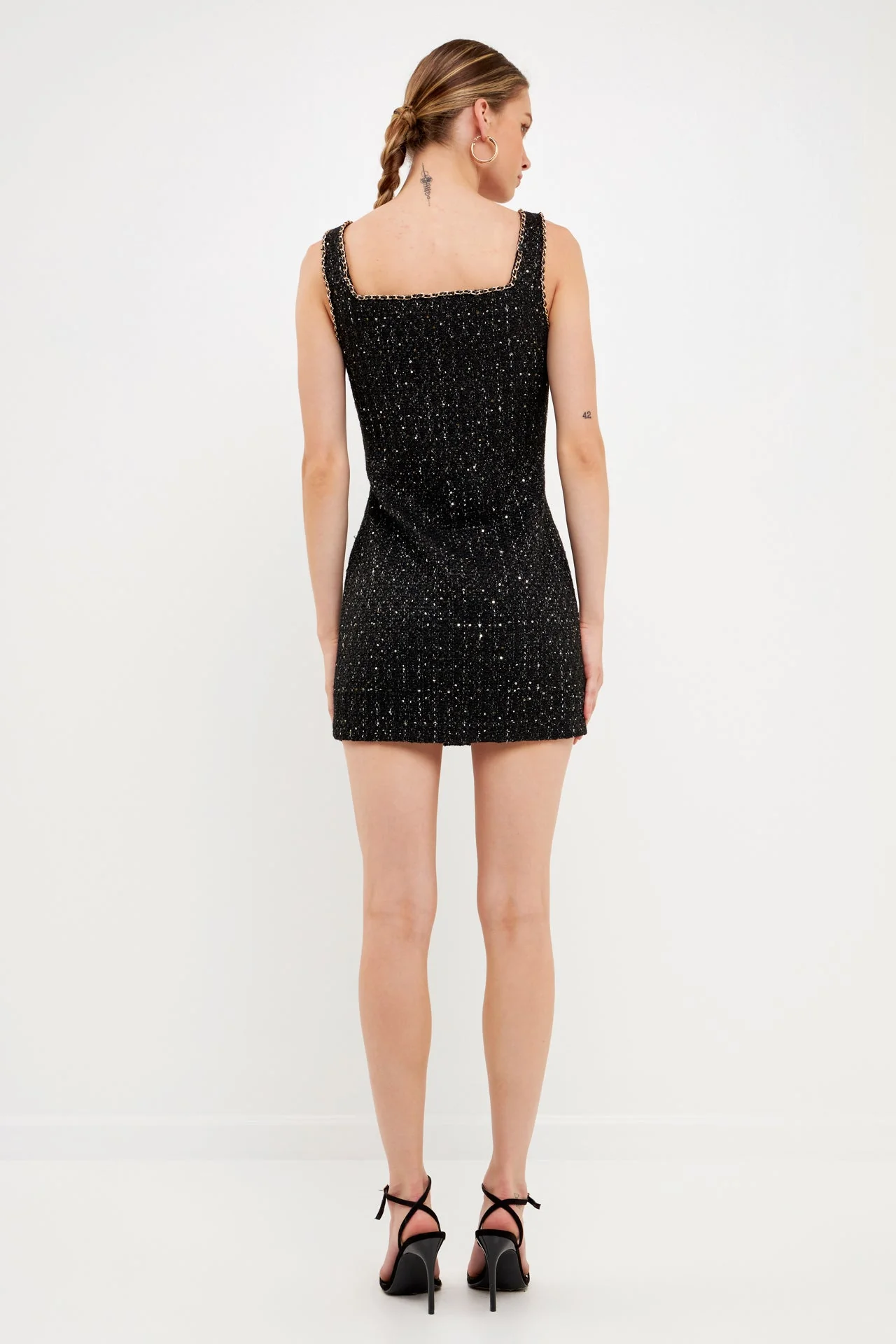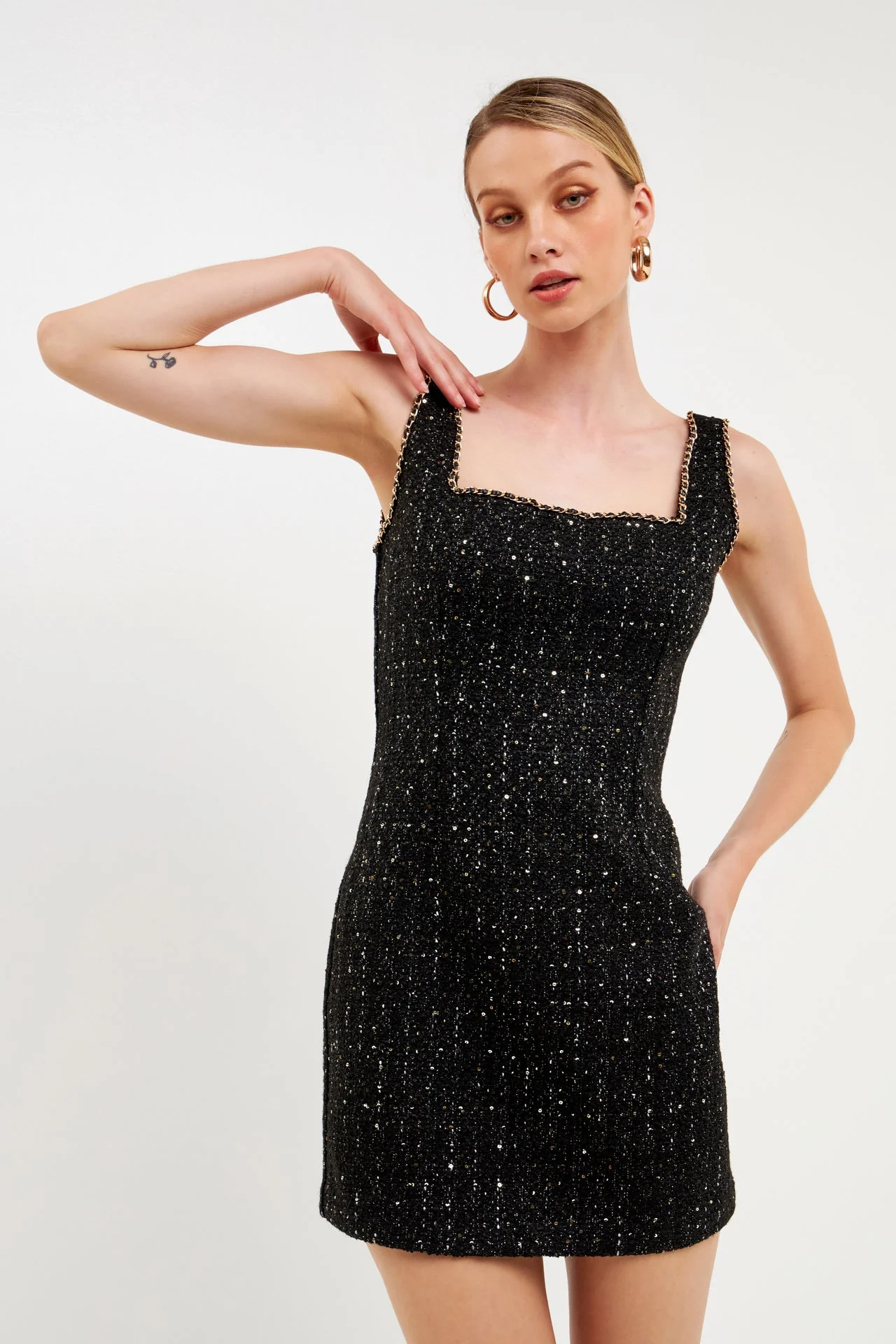 Chain-Trimmed Tweed Mini Dress