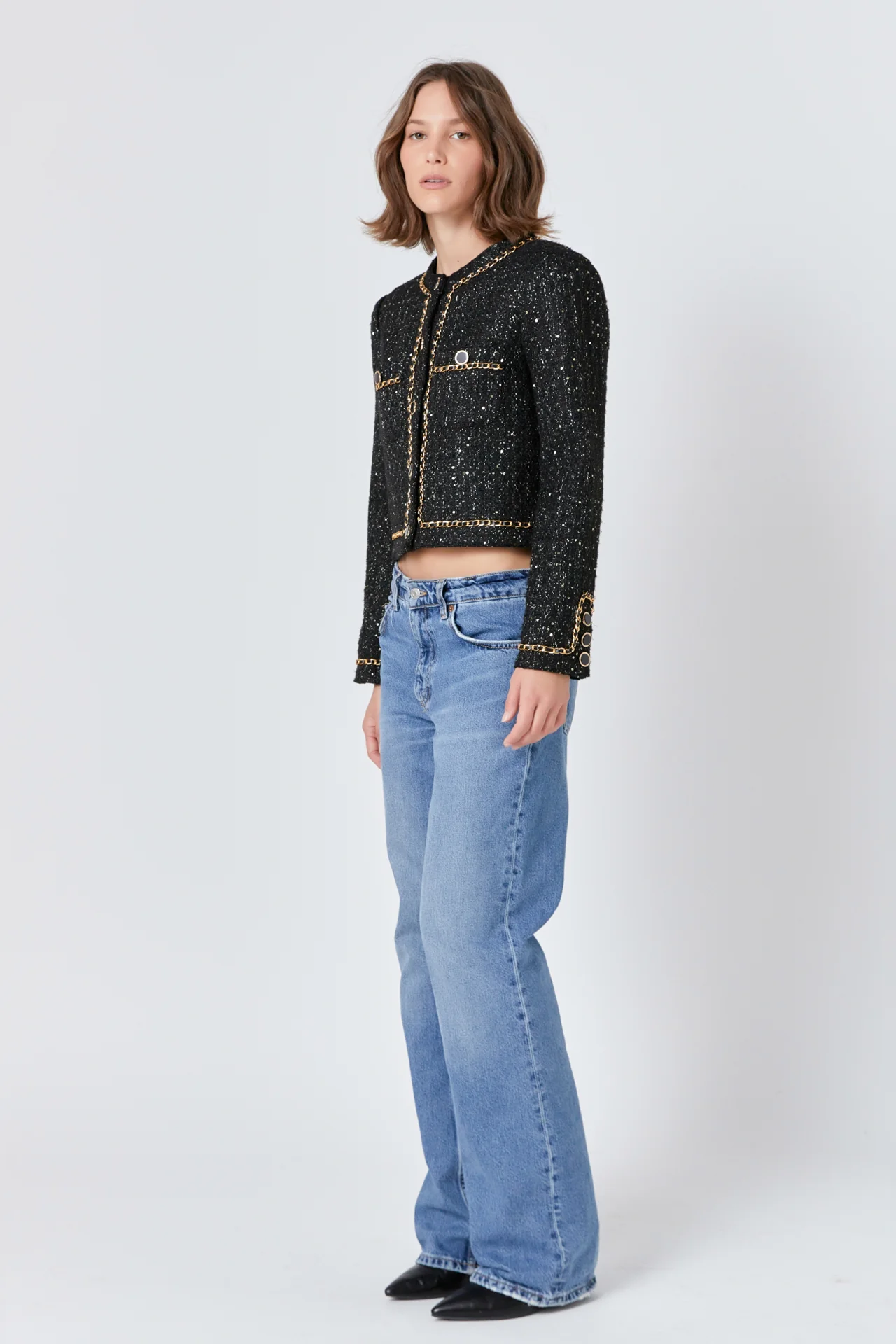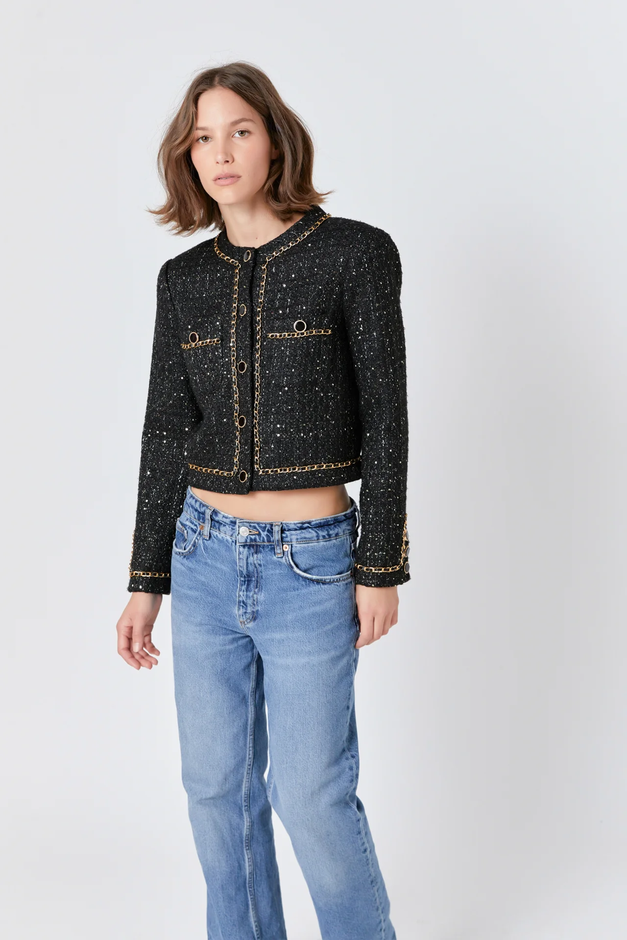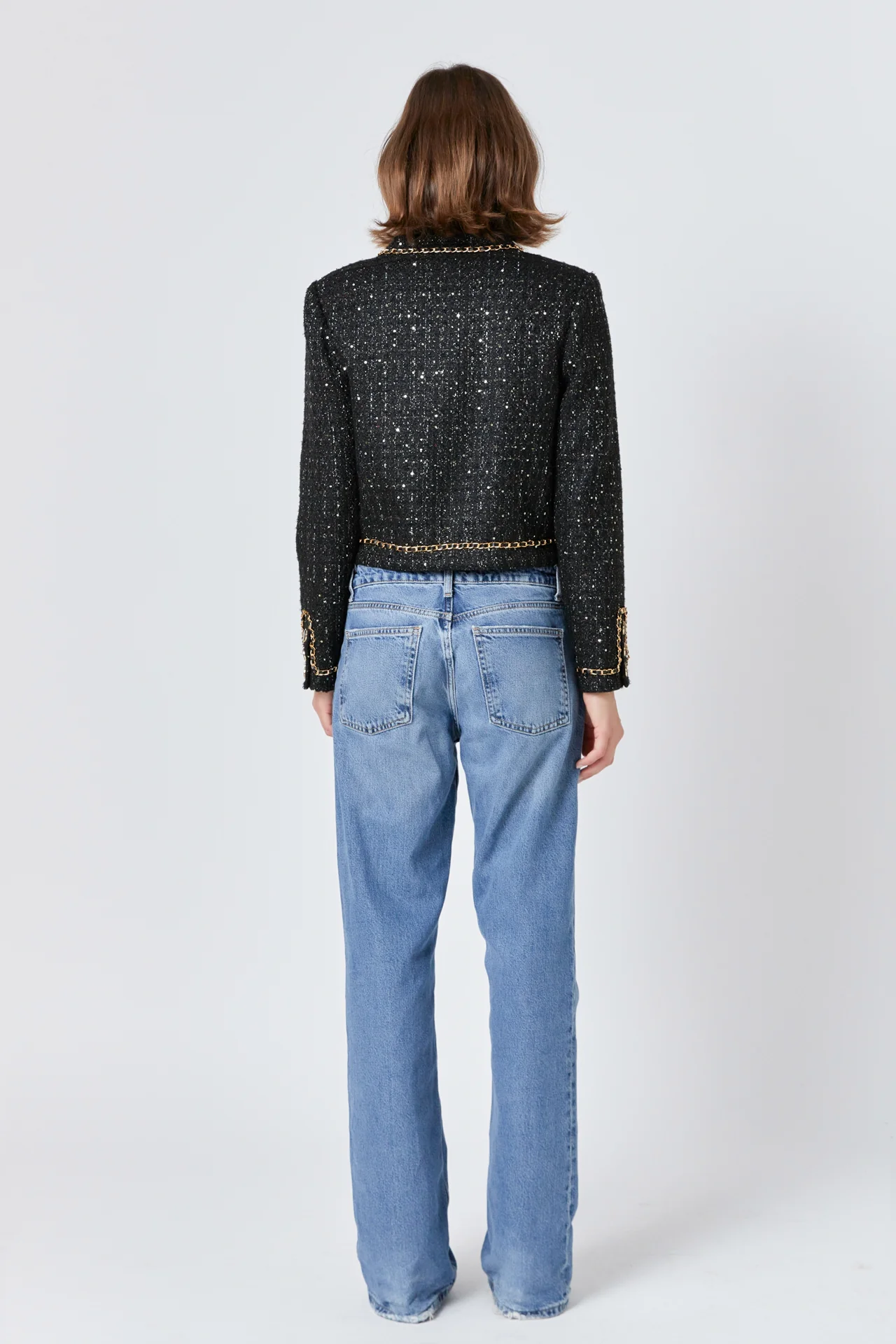 Chain-Trimmed Tweed Jacket