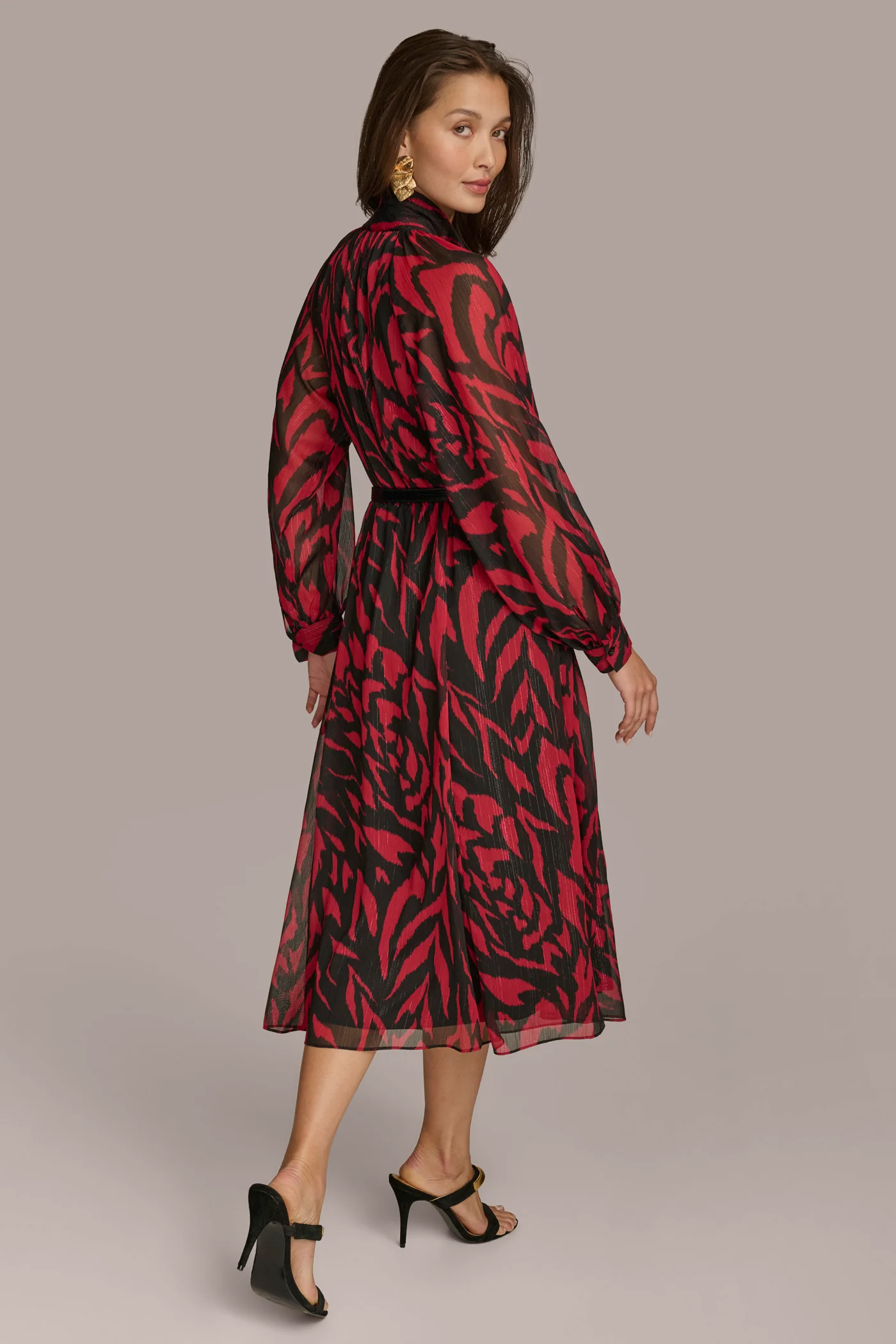 CHIFFON SHIRT DRESS MIDI WITH BELT