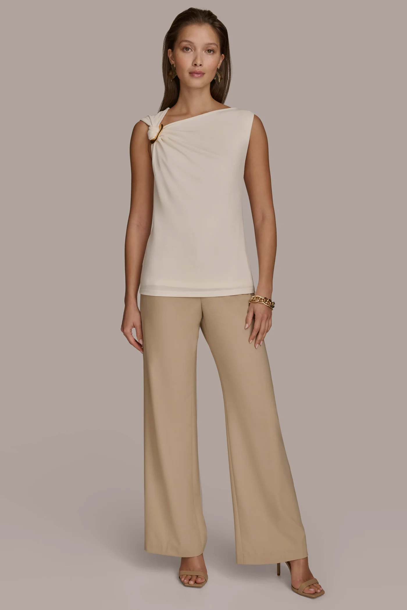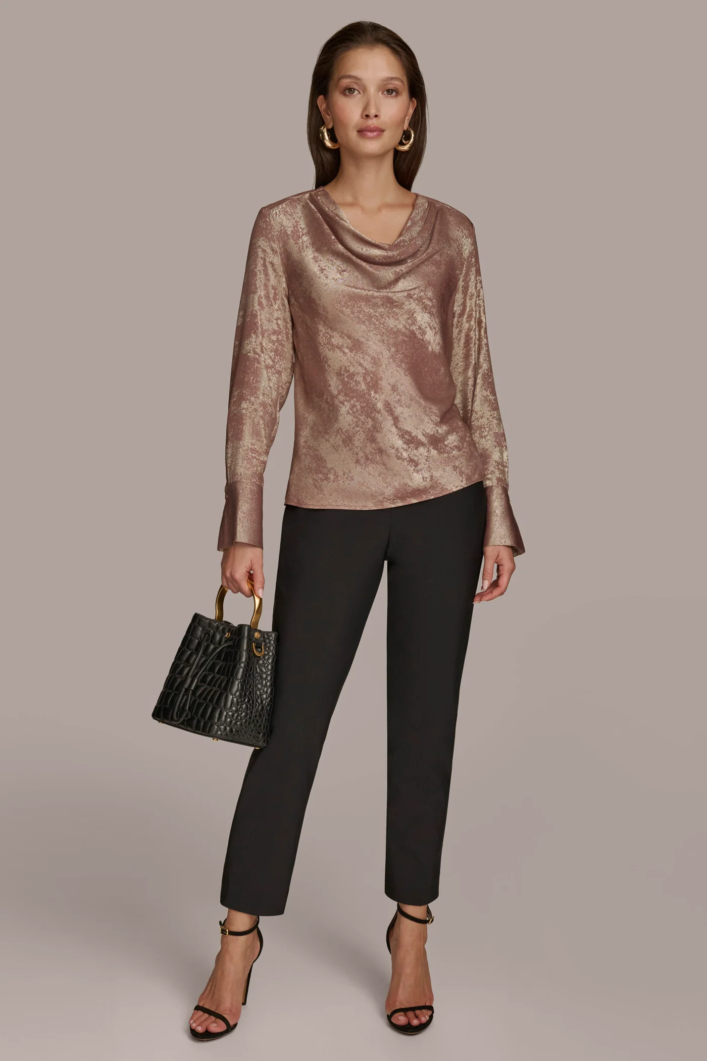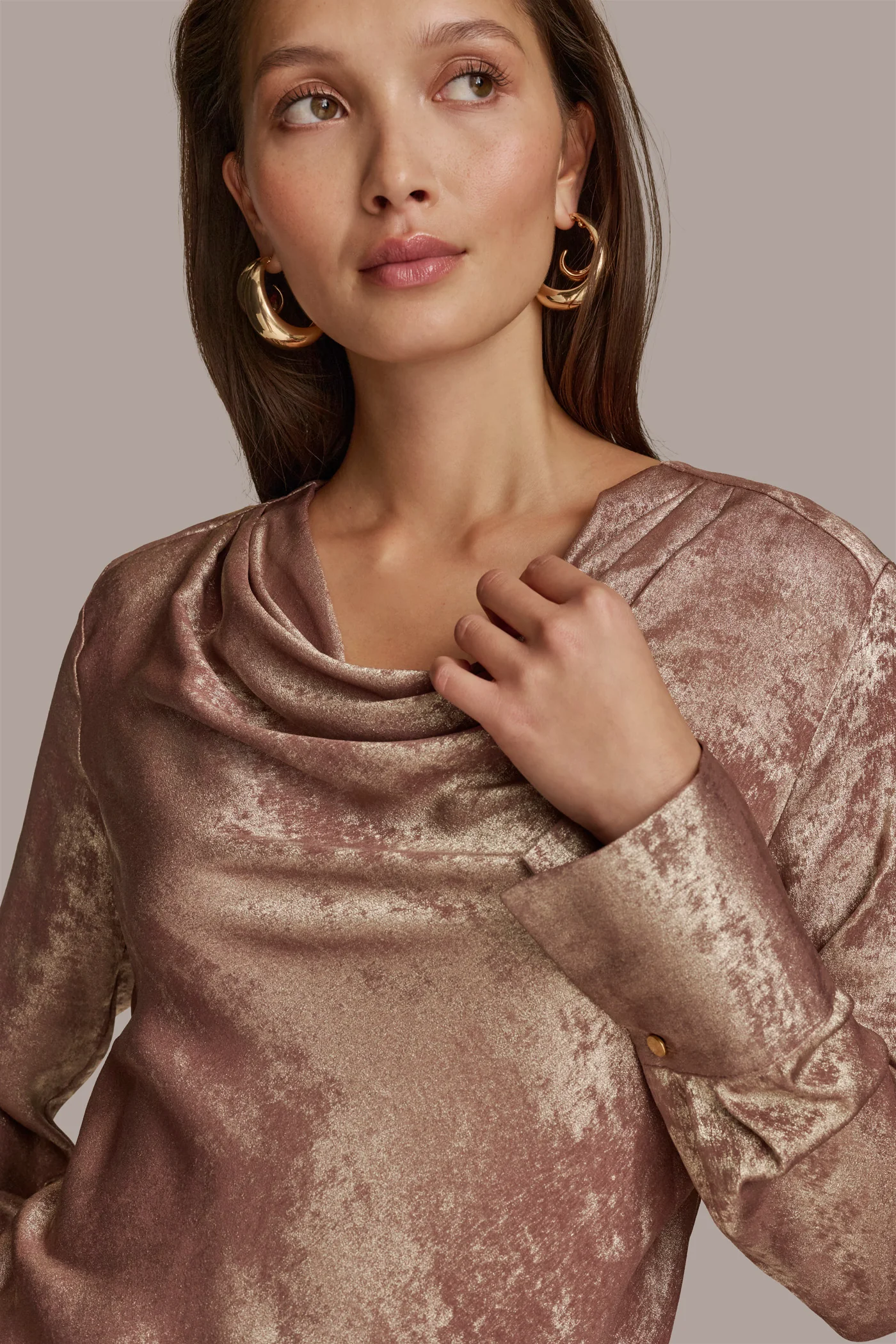 METALLIC COWL NECK TOP