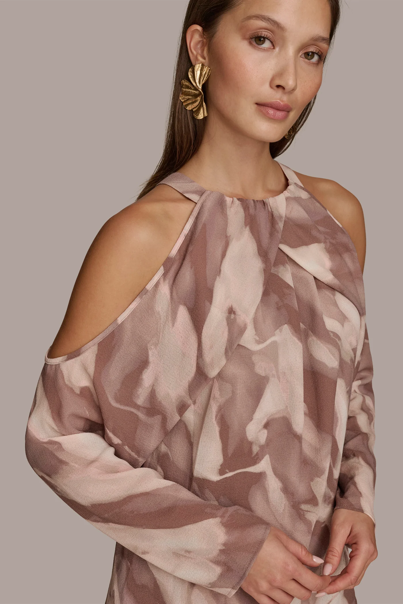 PRINTED COLD SHOULDER TOP