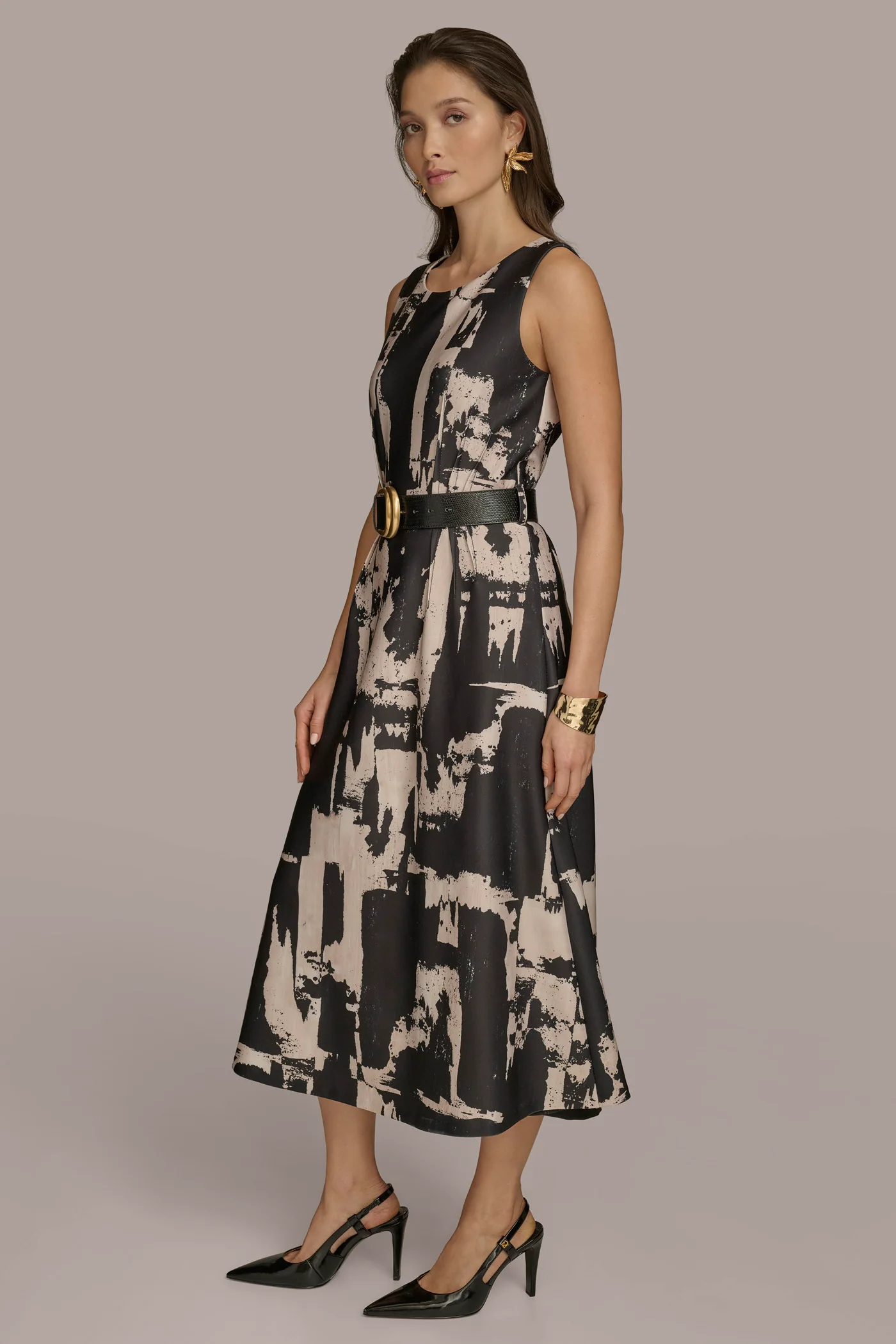 ABSTRACT PRINTED A LINE MIDI DRESS