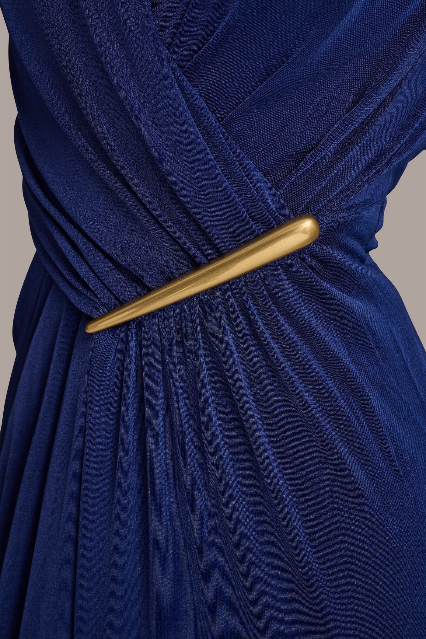 PLEATED SHOULDER DRESS WITH CHAIN BELT