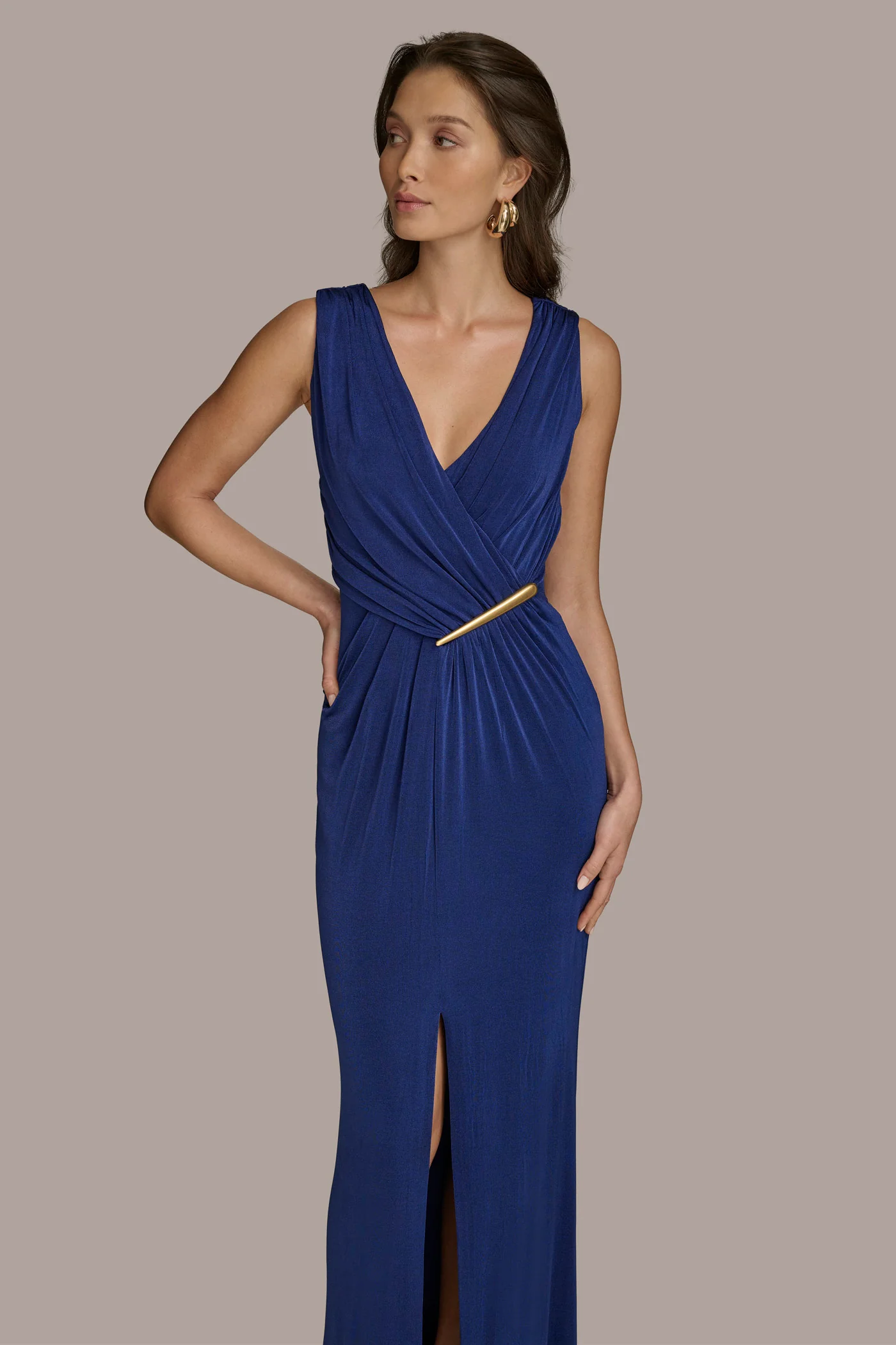 VNECK GOWN WITH SIDE BAR