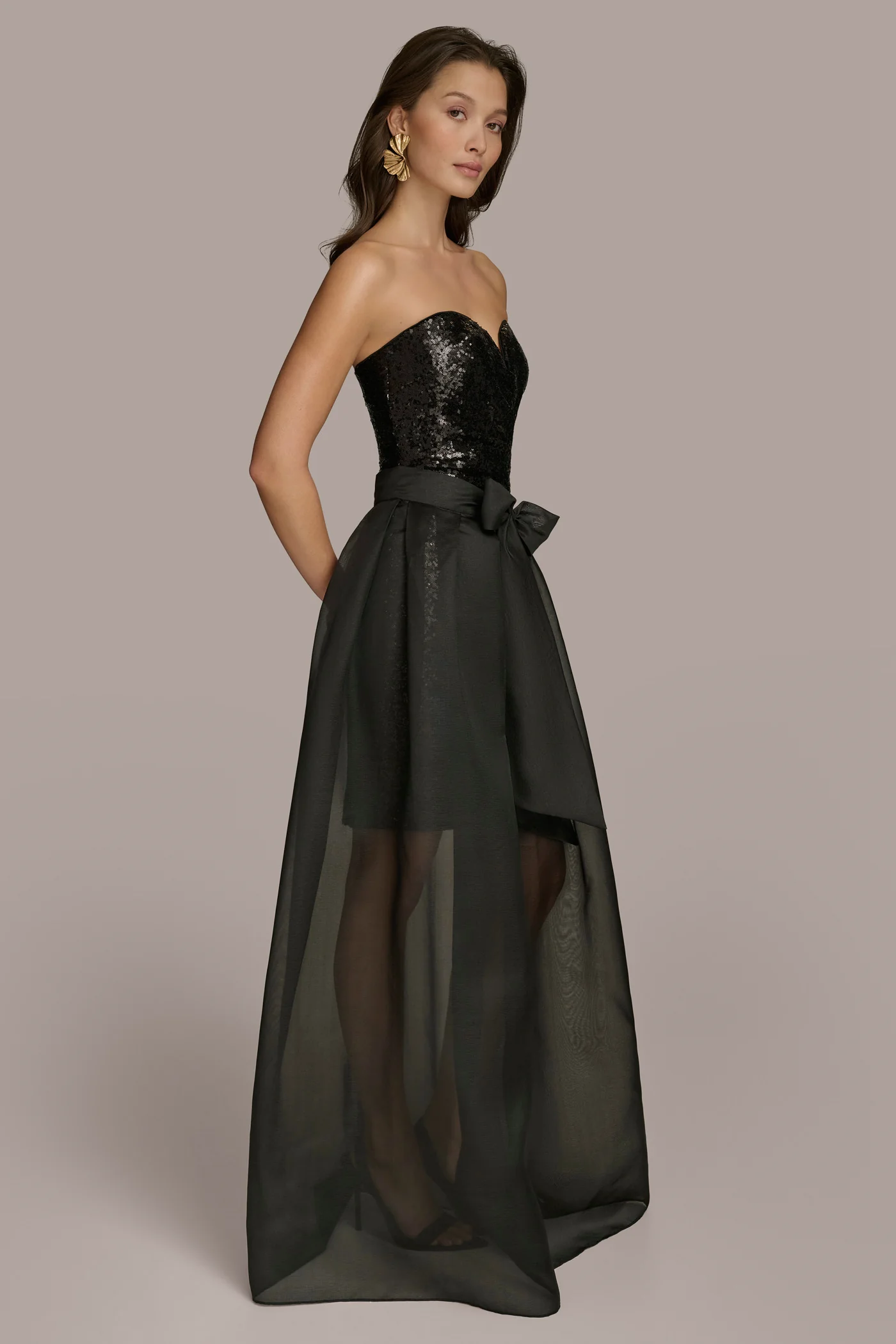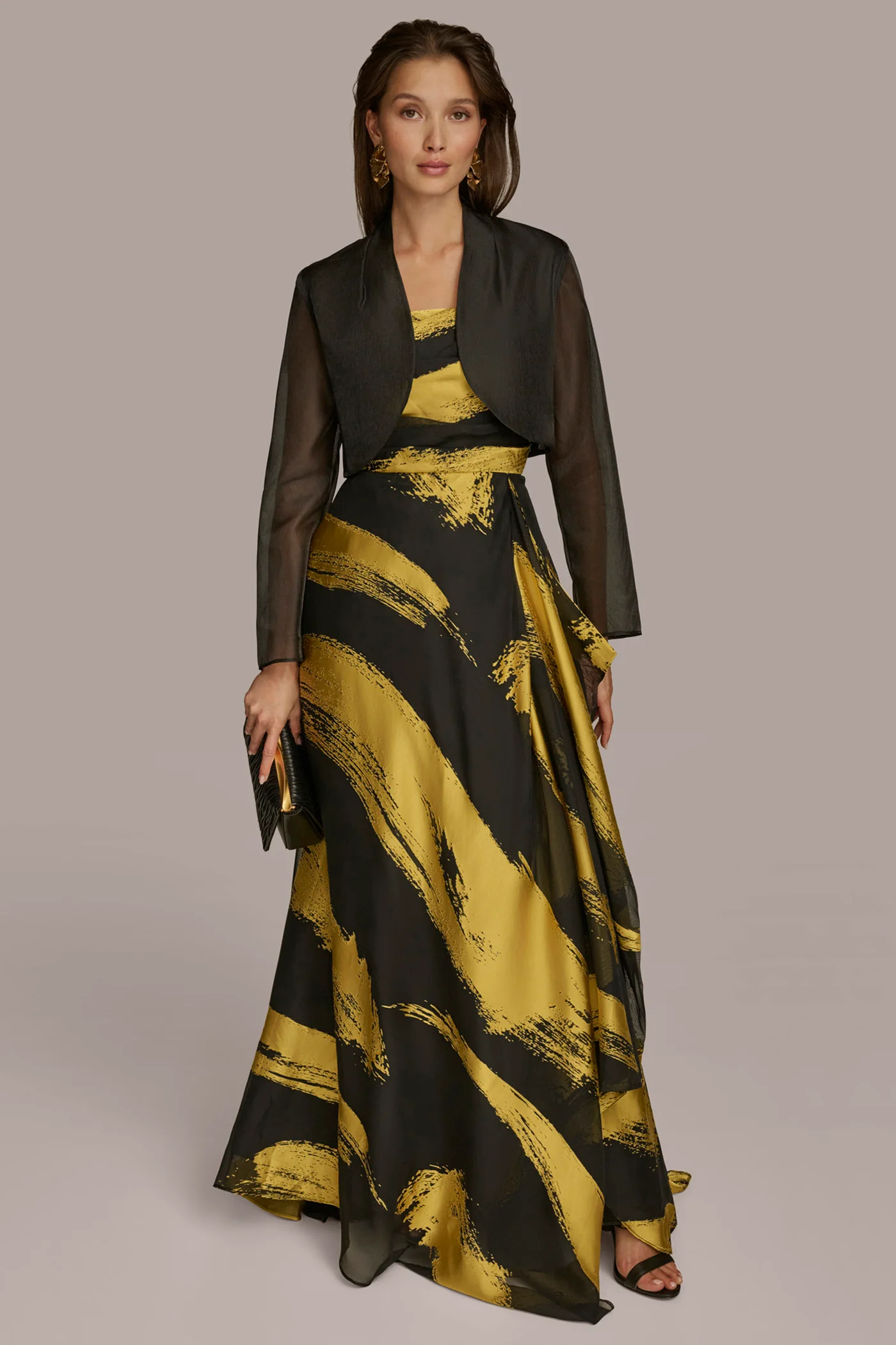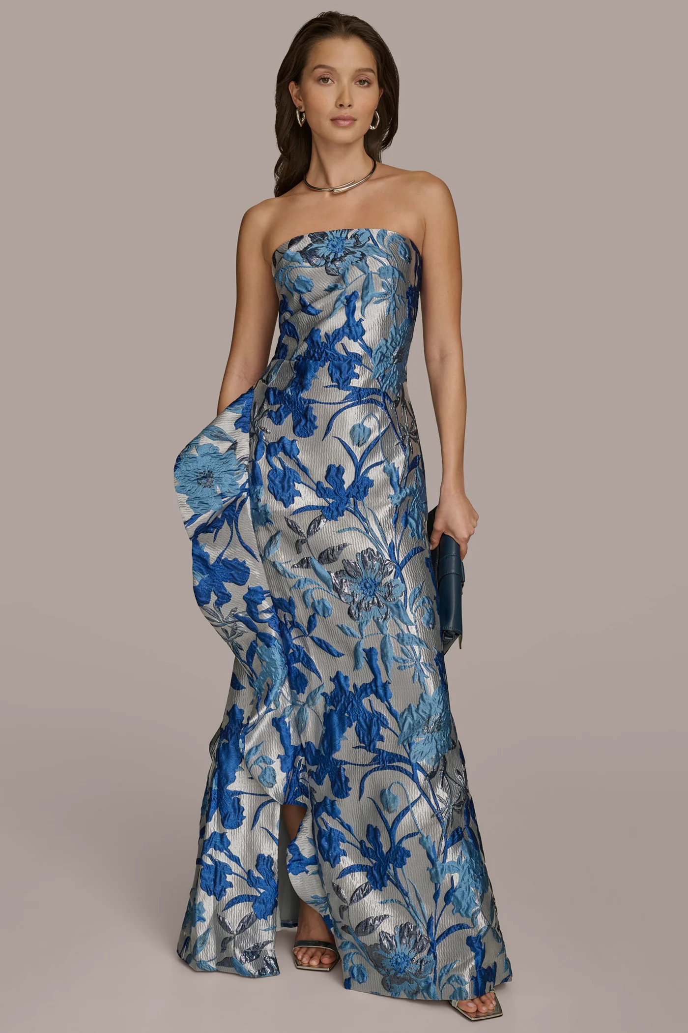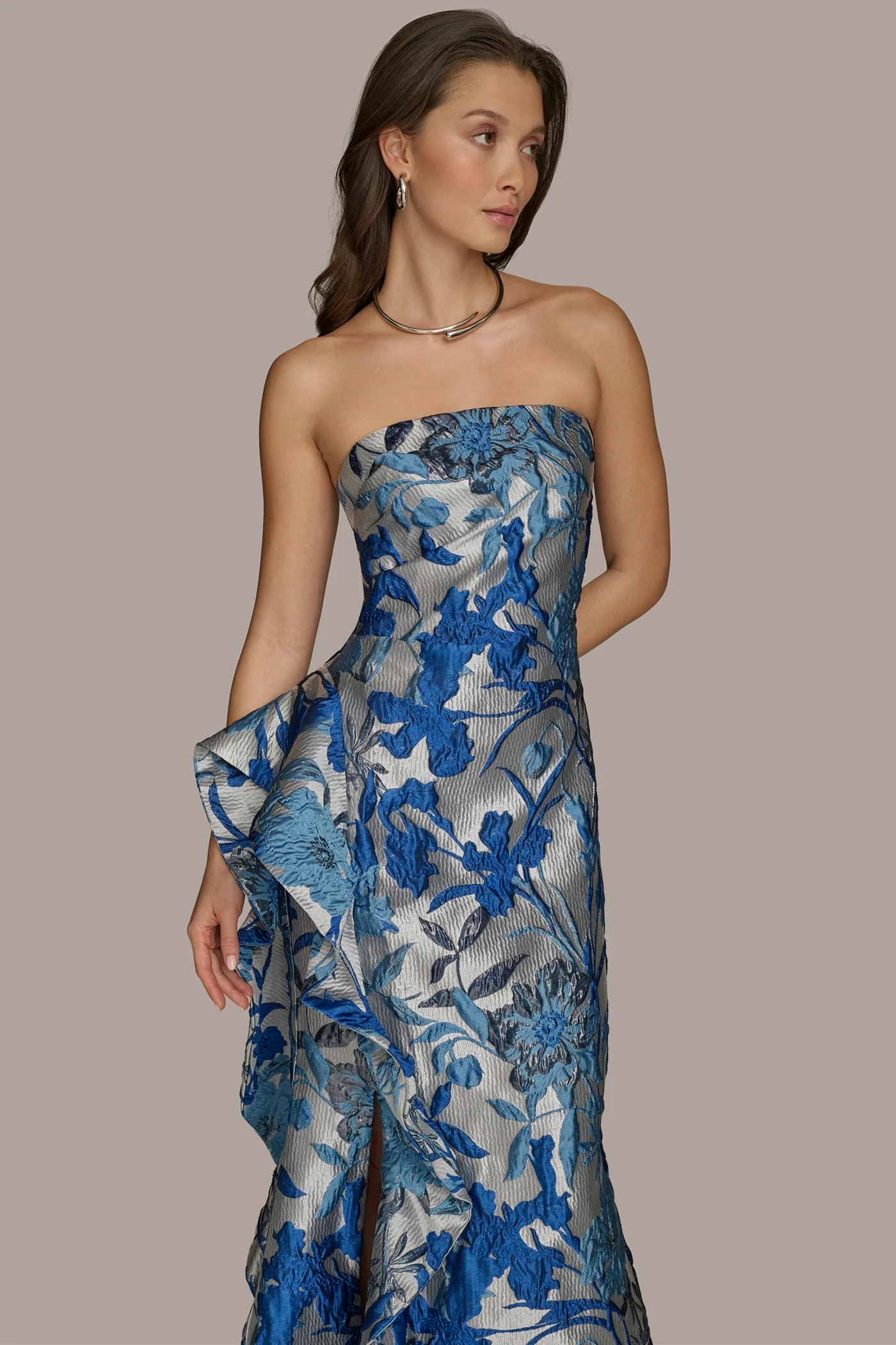 FLORAL JACQUARD WITH SIDE RUFFLE GOWN