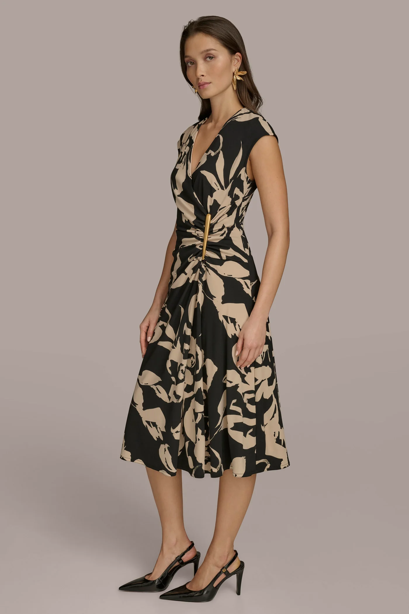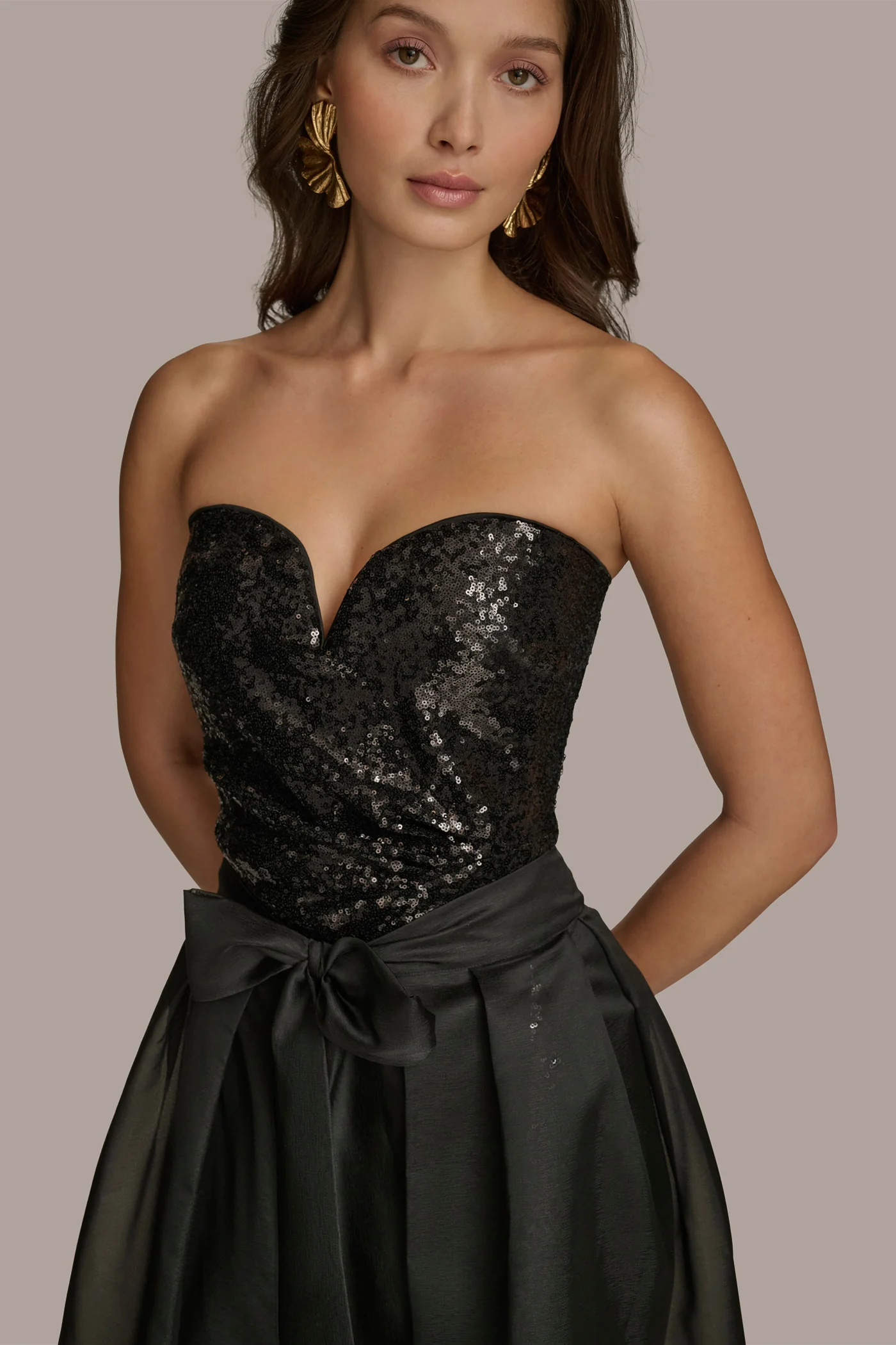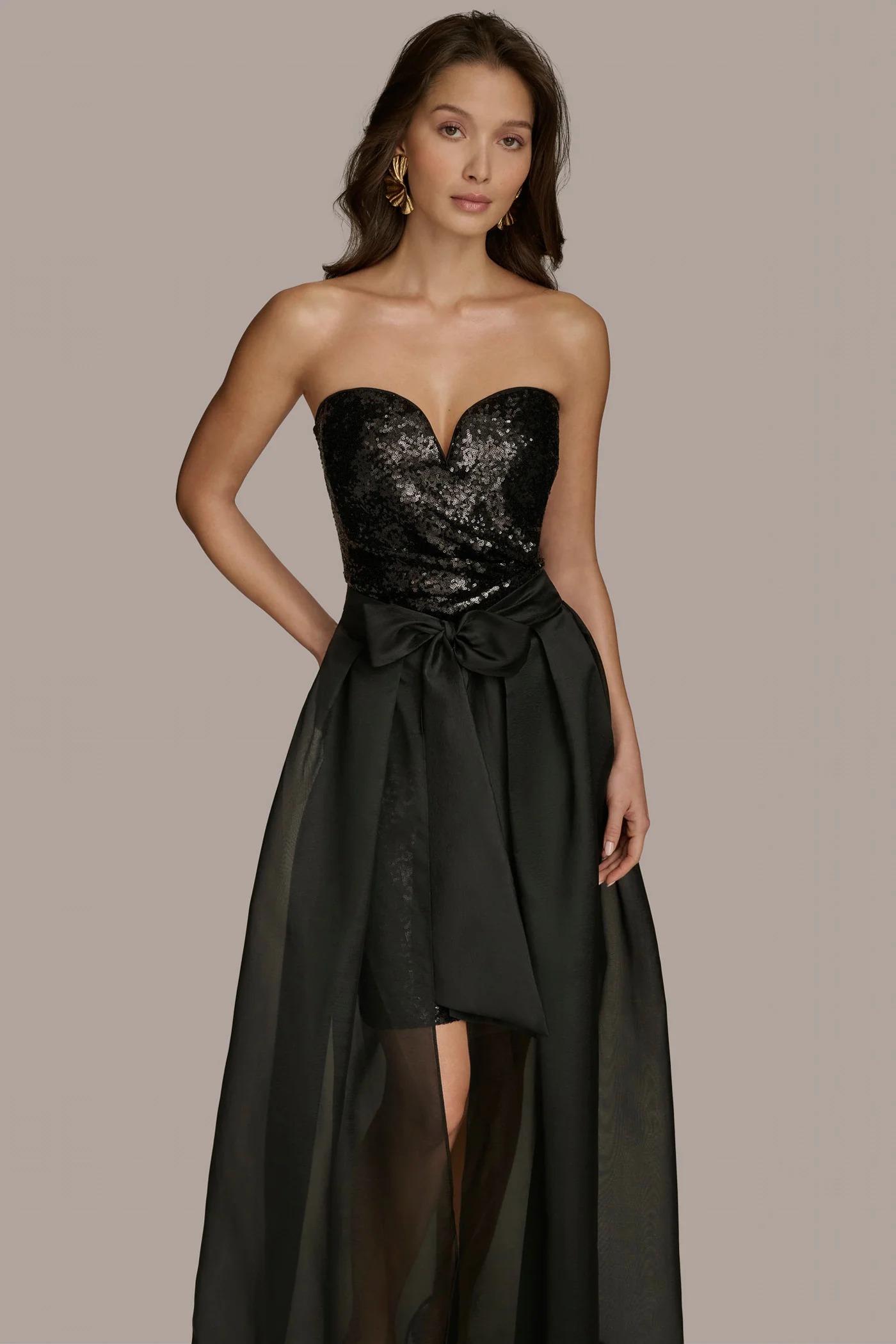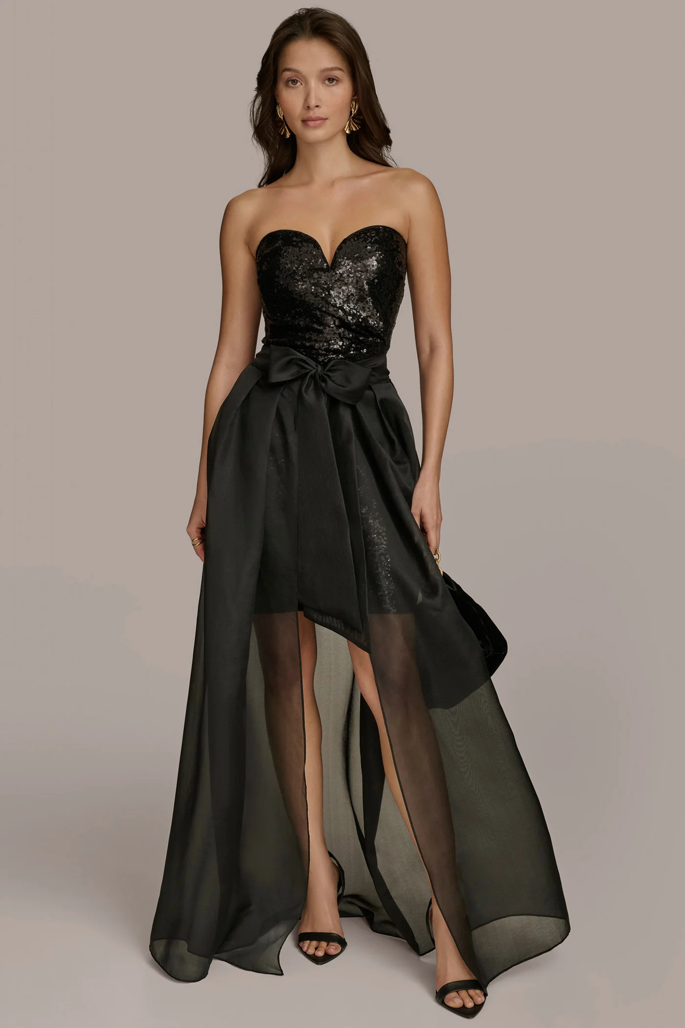 FLORAL JACQUARD WITH SIDE RUFFLE GOWN