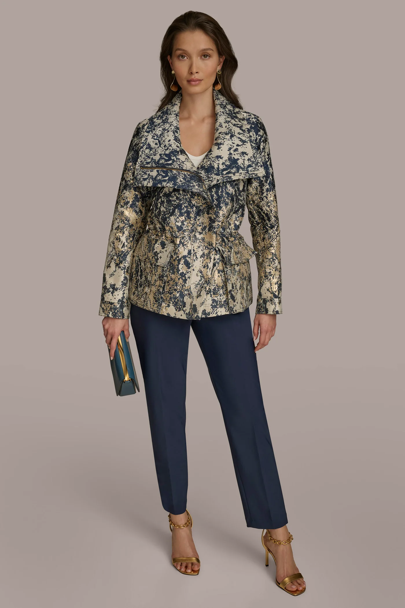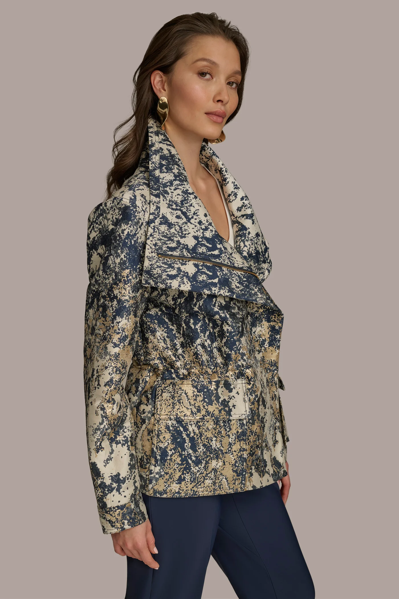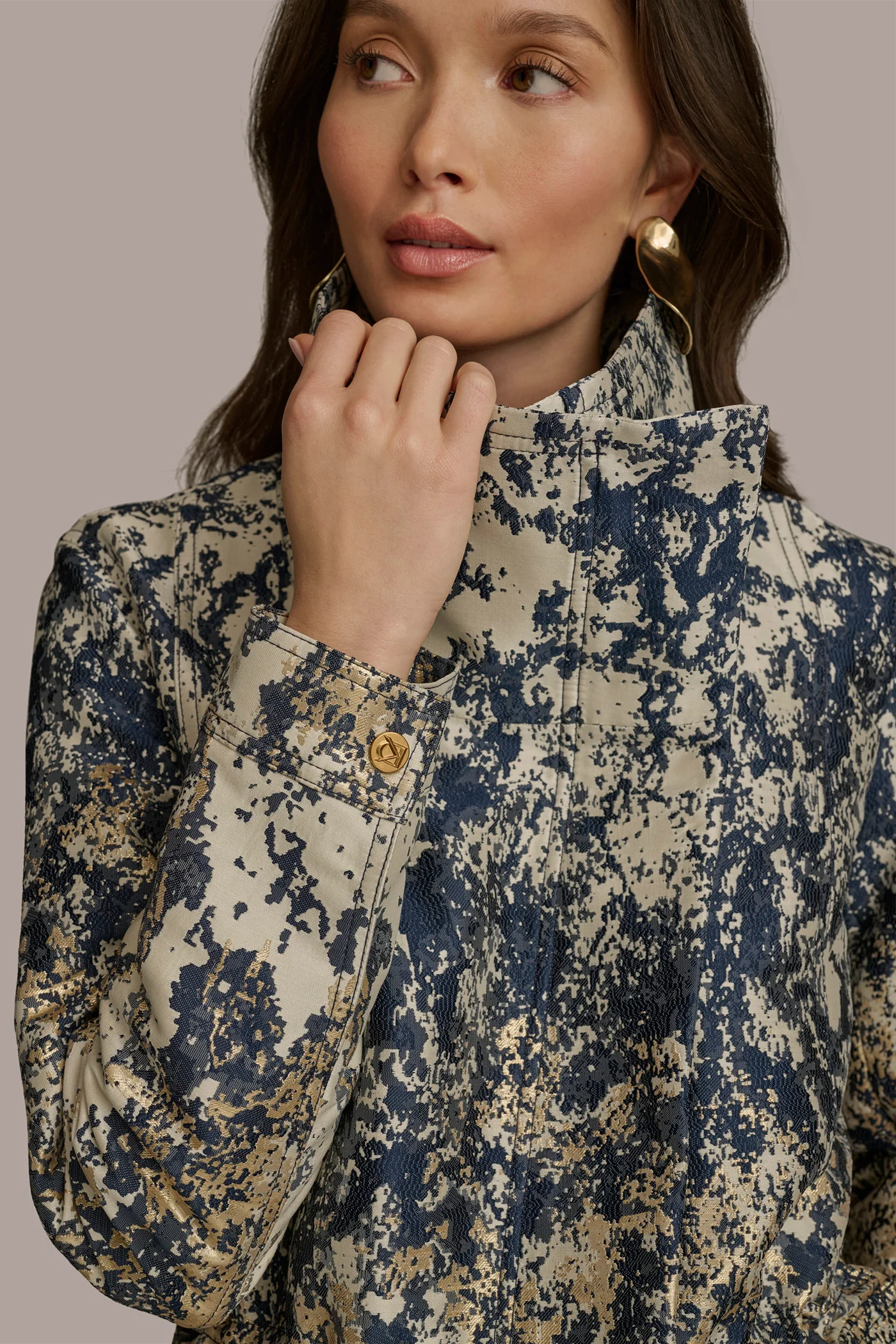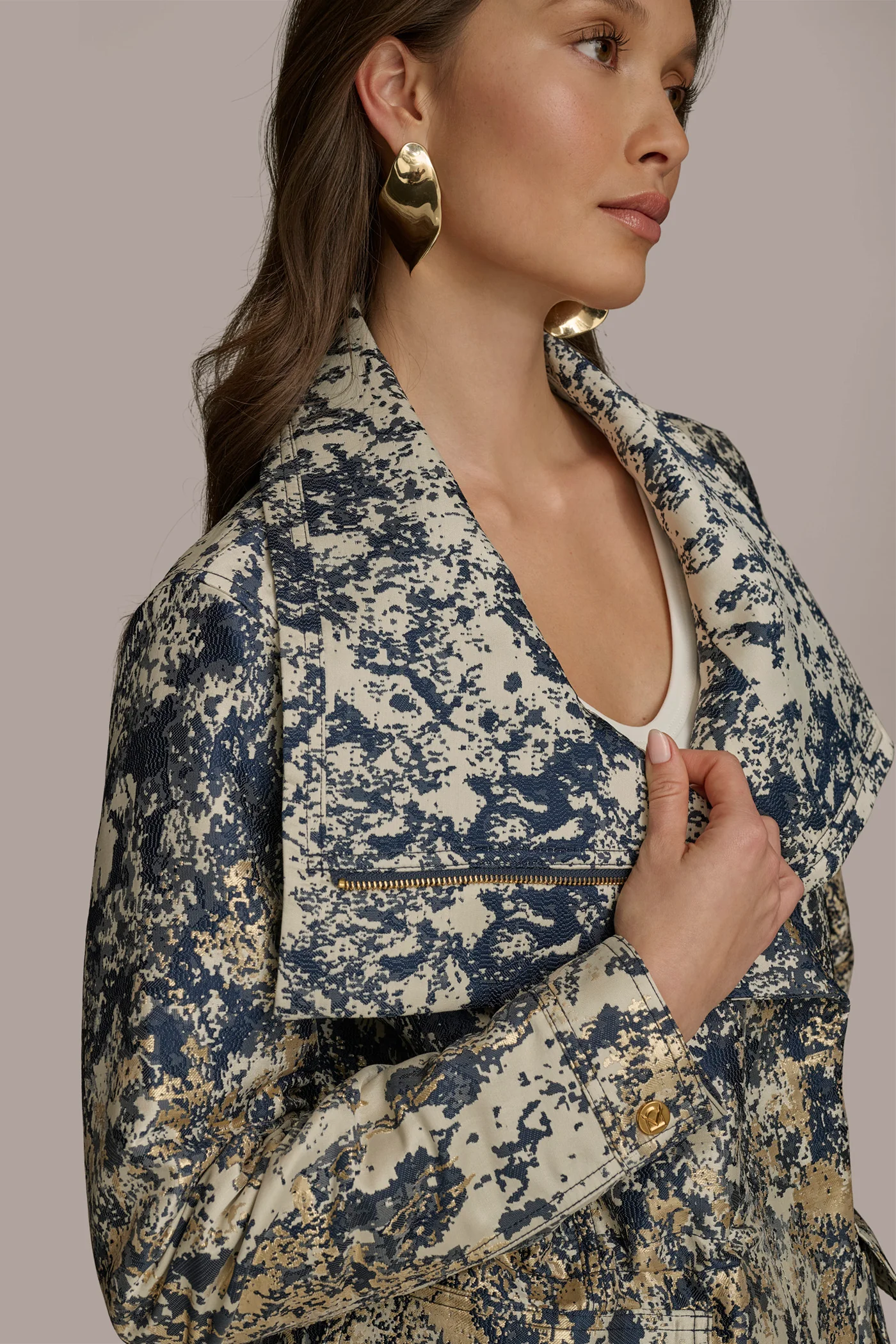METALLIC JACQUARD ZIP UP JACKET