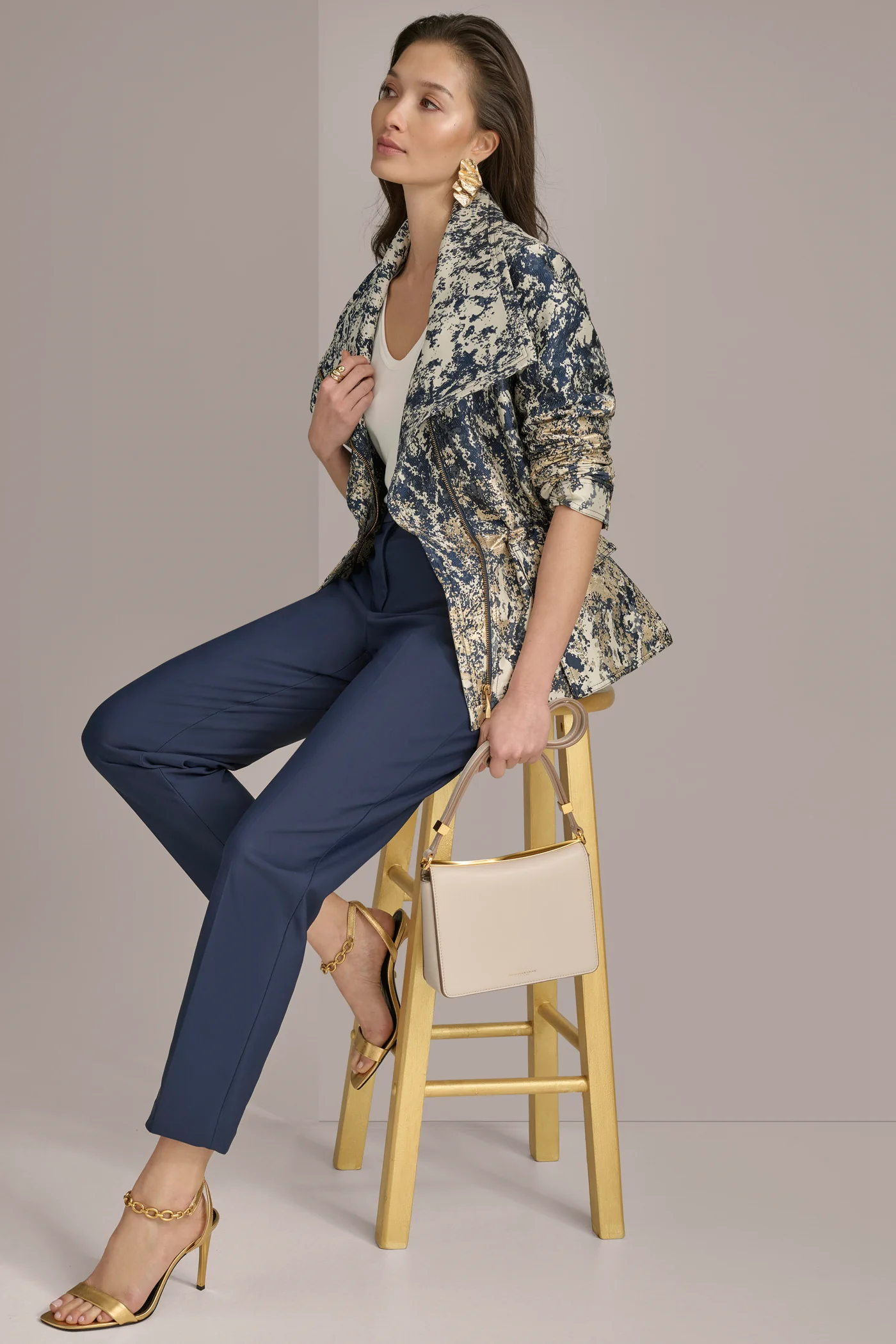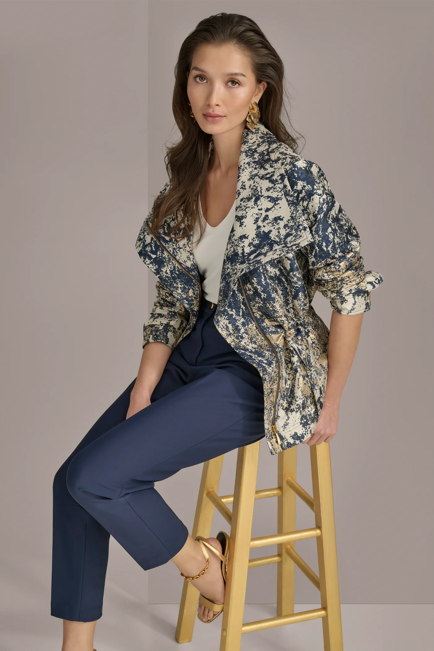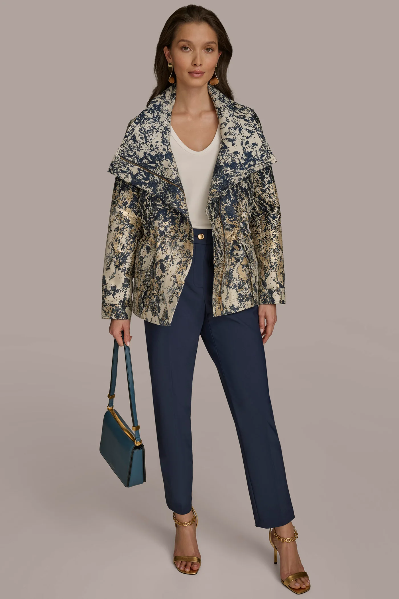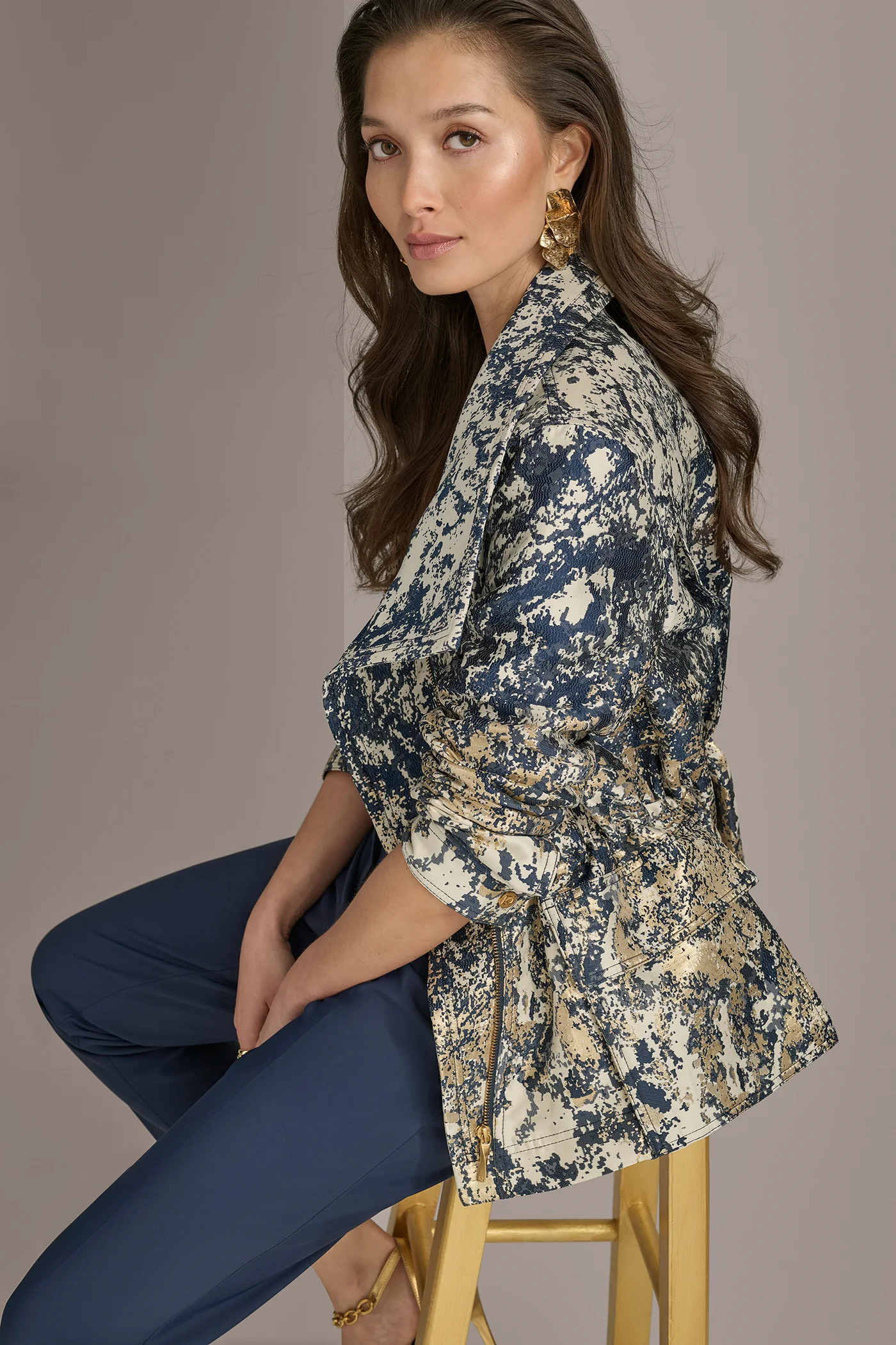 METALLIC JACQUARD ZIP UP JACKET