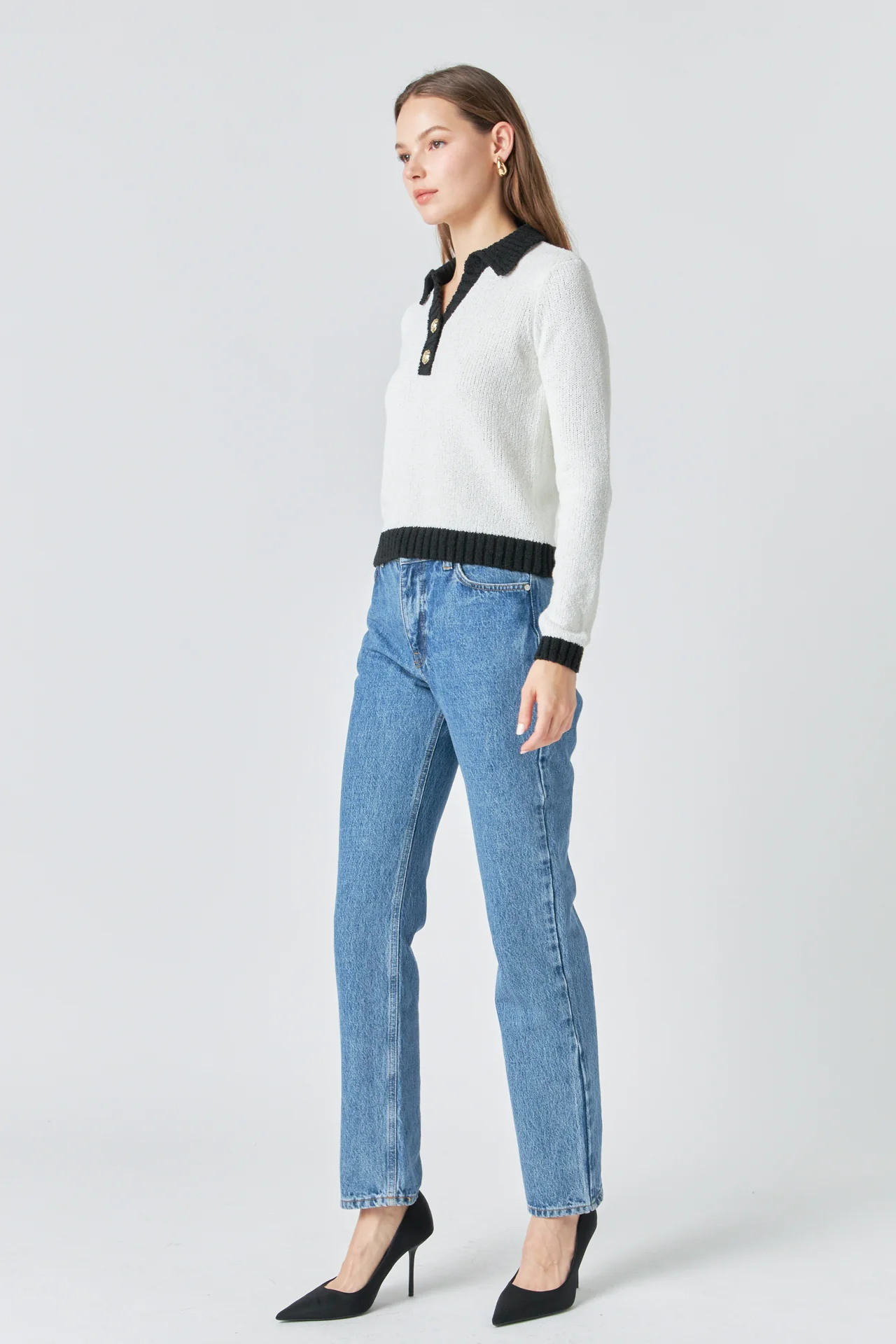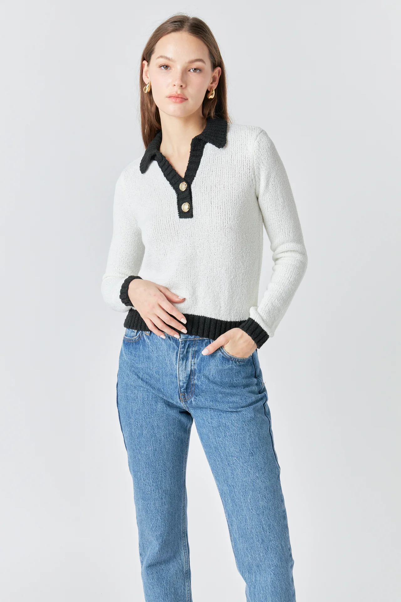 Knit Collared Contrast Sweater