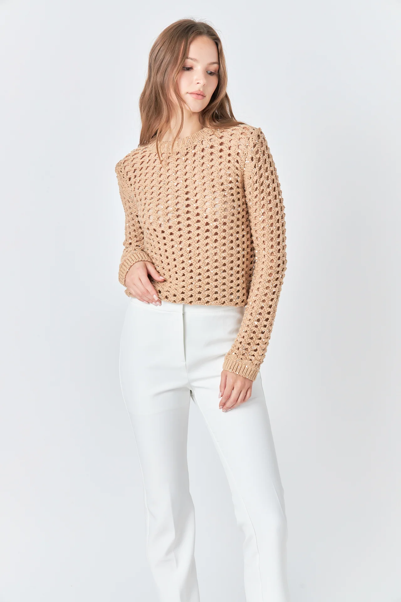Sequins Knit Long Sleeve Top