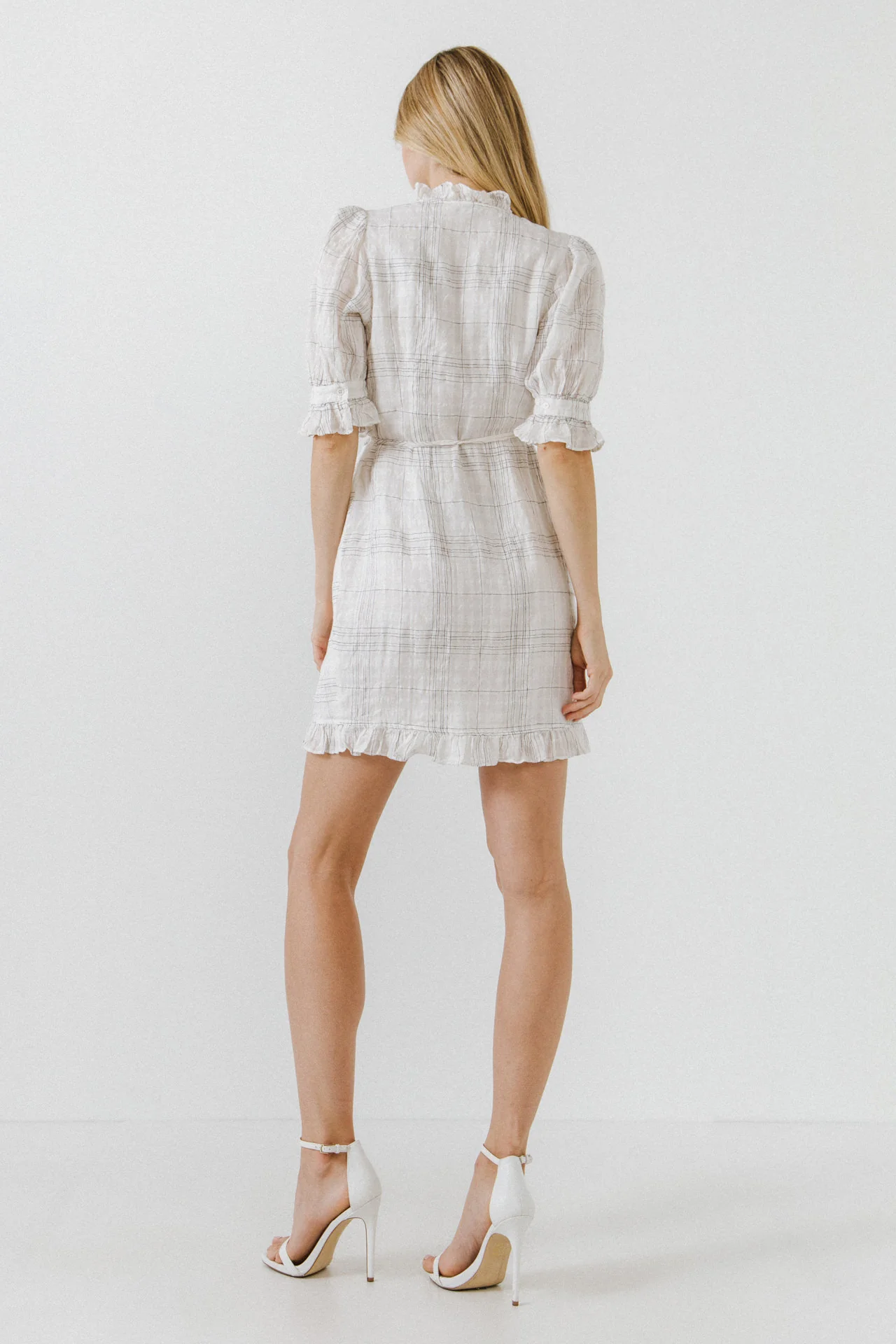 Check Print Linen Wrap Dress