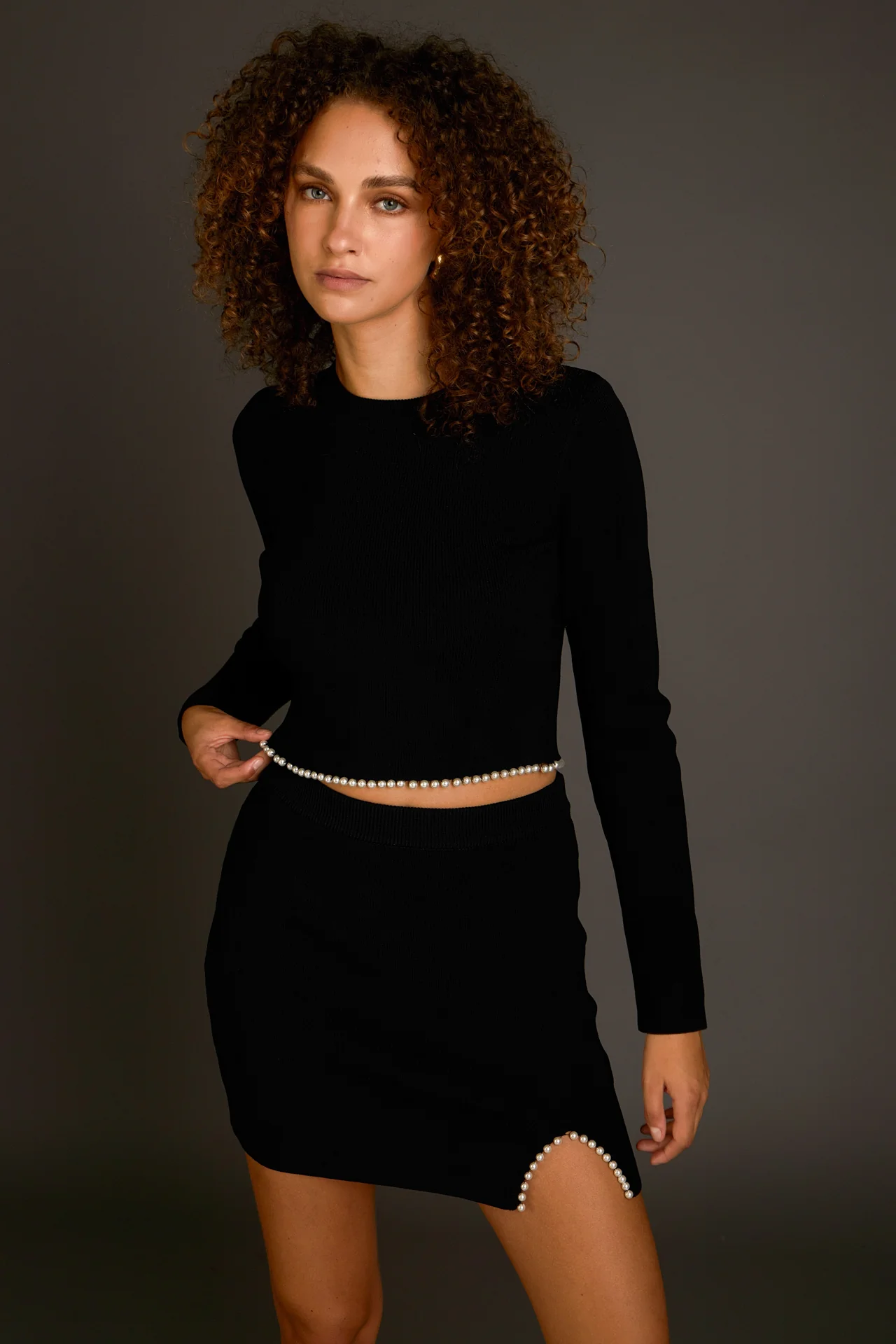 Pearl Accented Cutout Mini Skirt