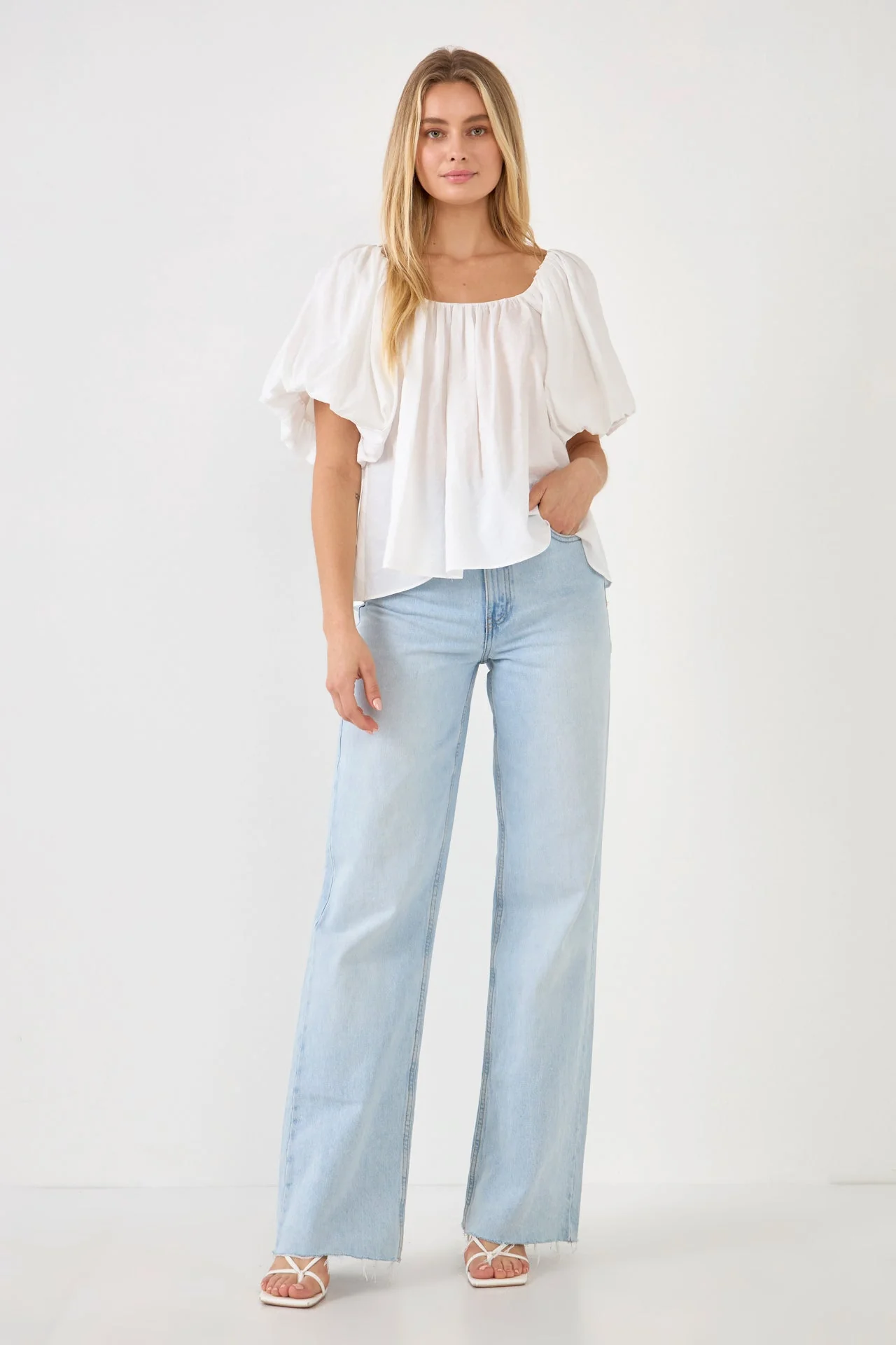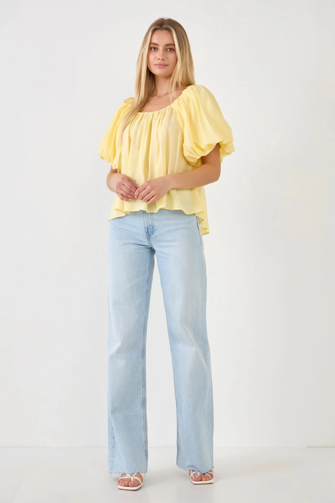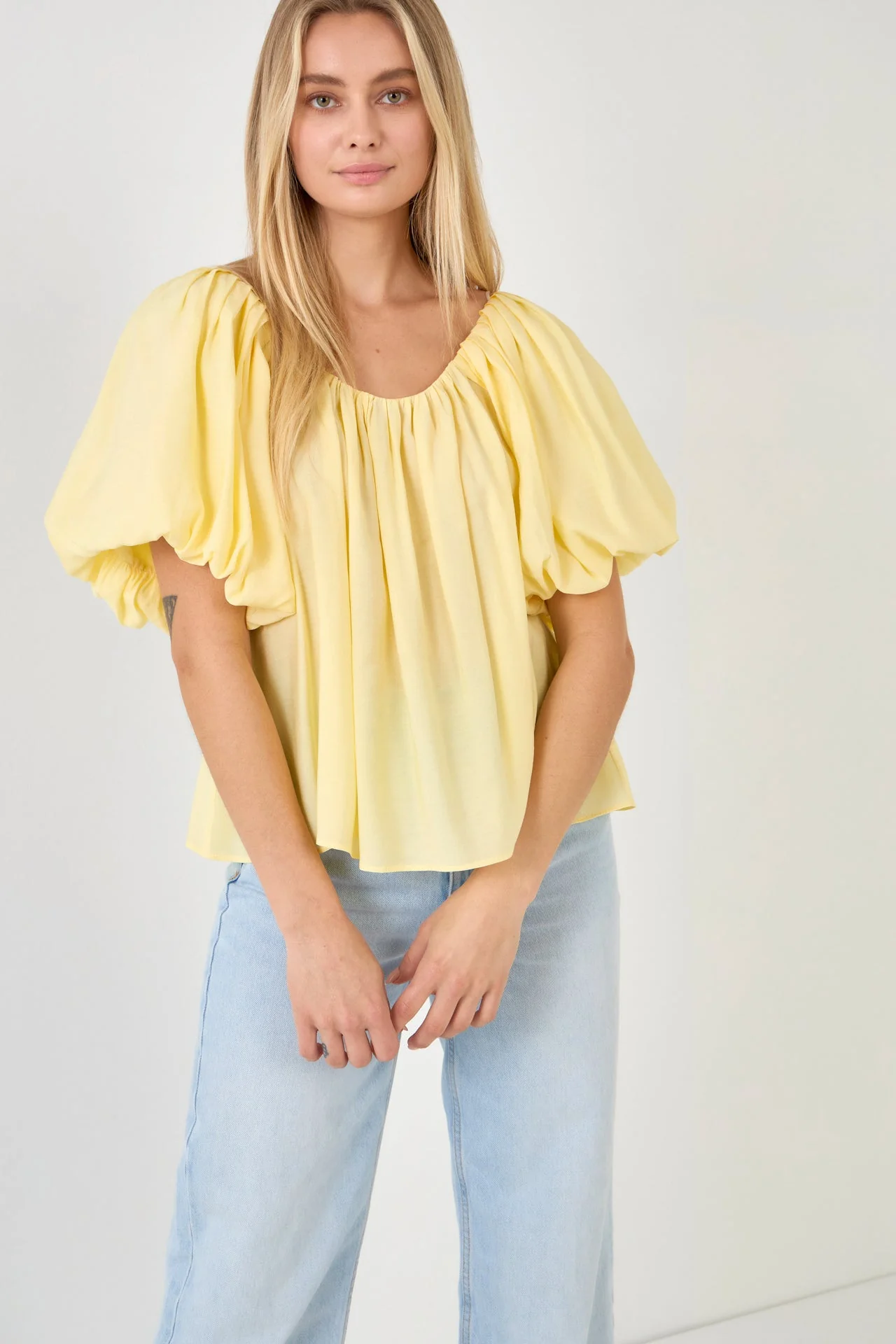 Pleated Puff Sleeve Top