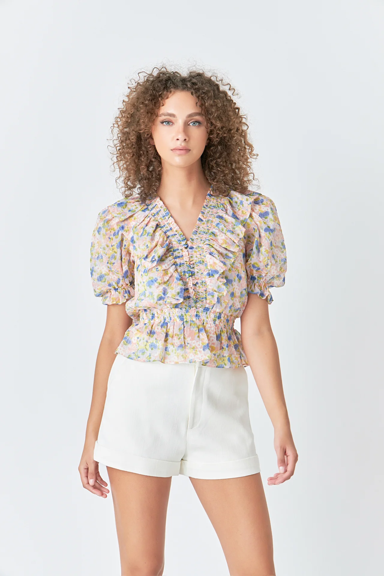 Ruffle Bodice top with Puff Sleeves