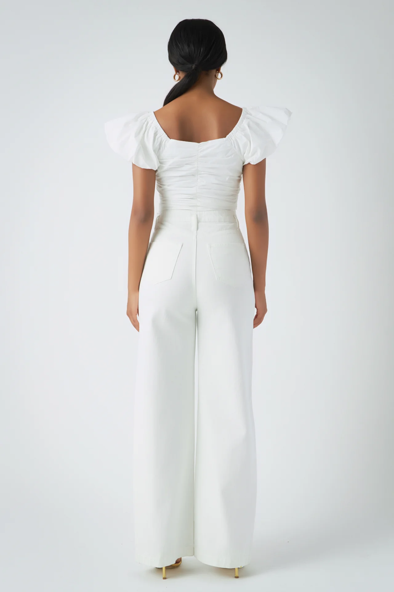 Shirring Detail Puff Sleeve Cropped Top