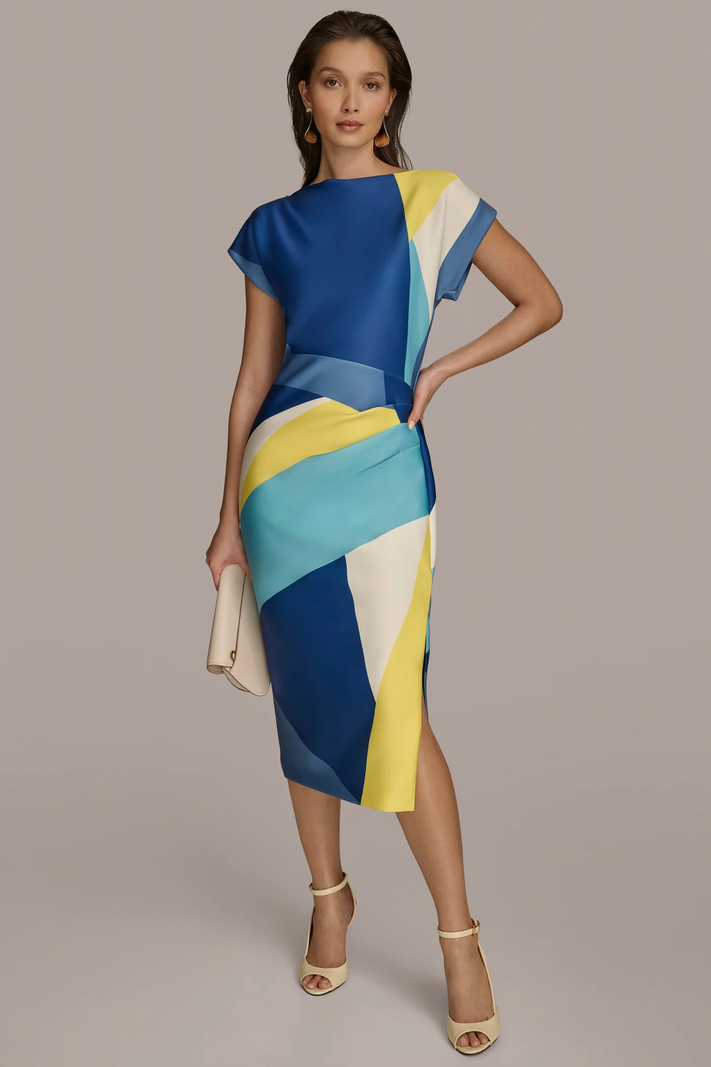 PRINTED LONG SLEEVE DRESS WITH HARDWARE