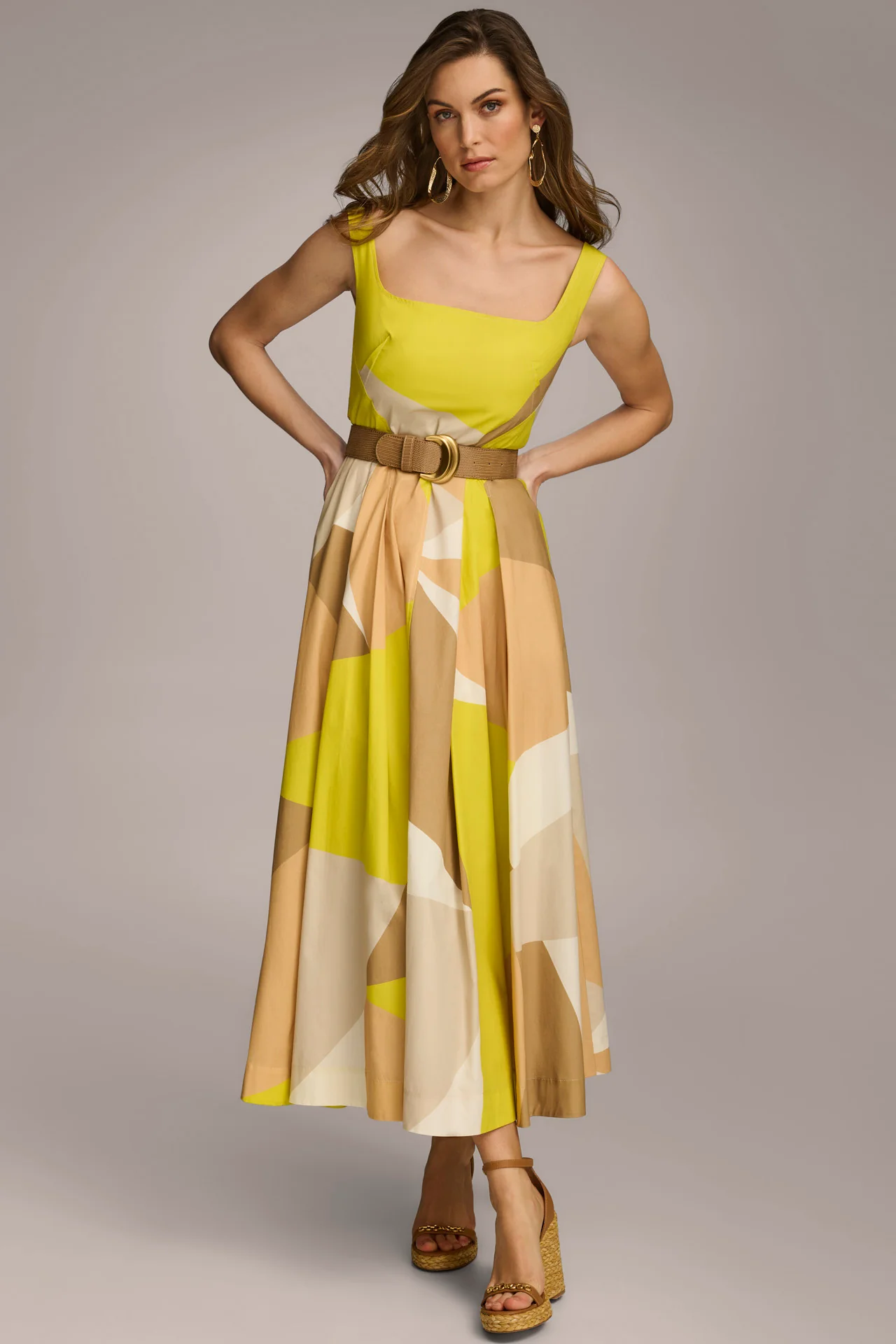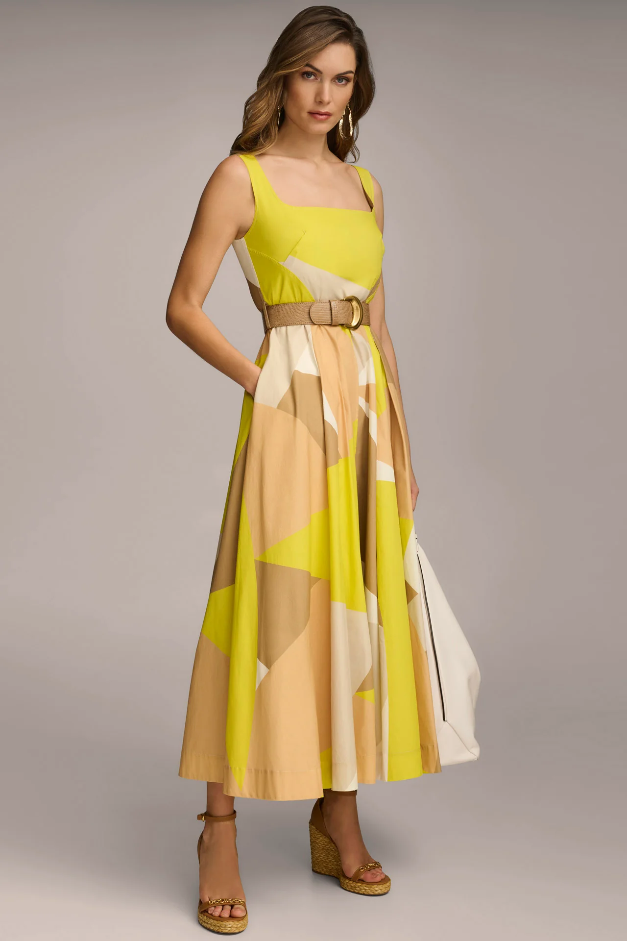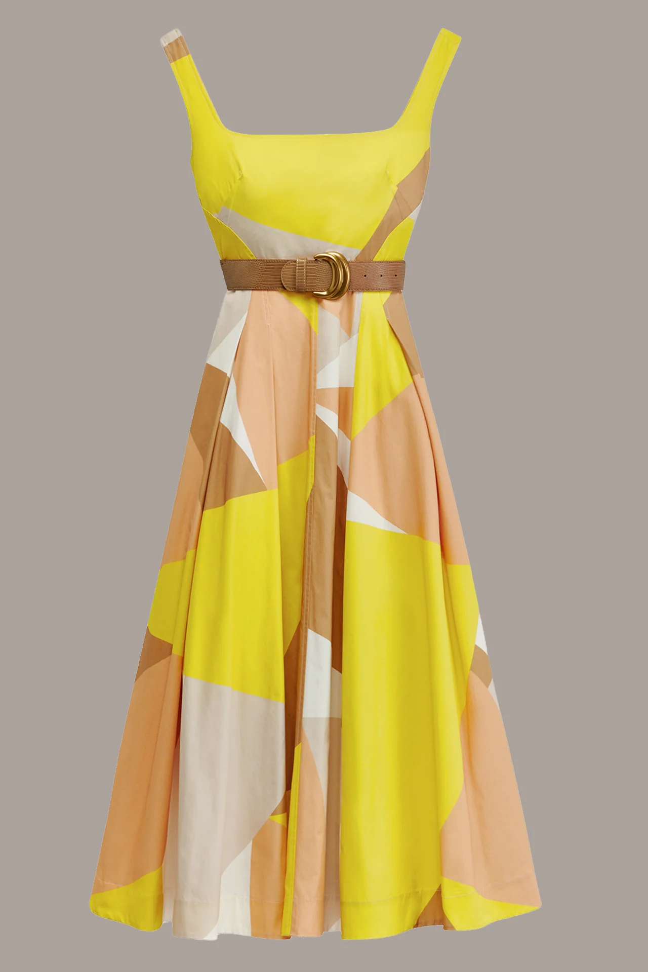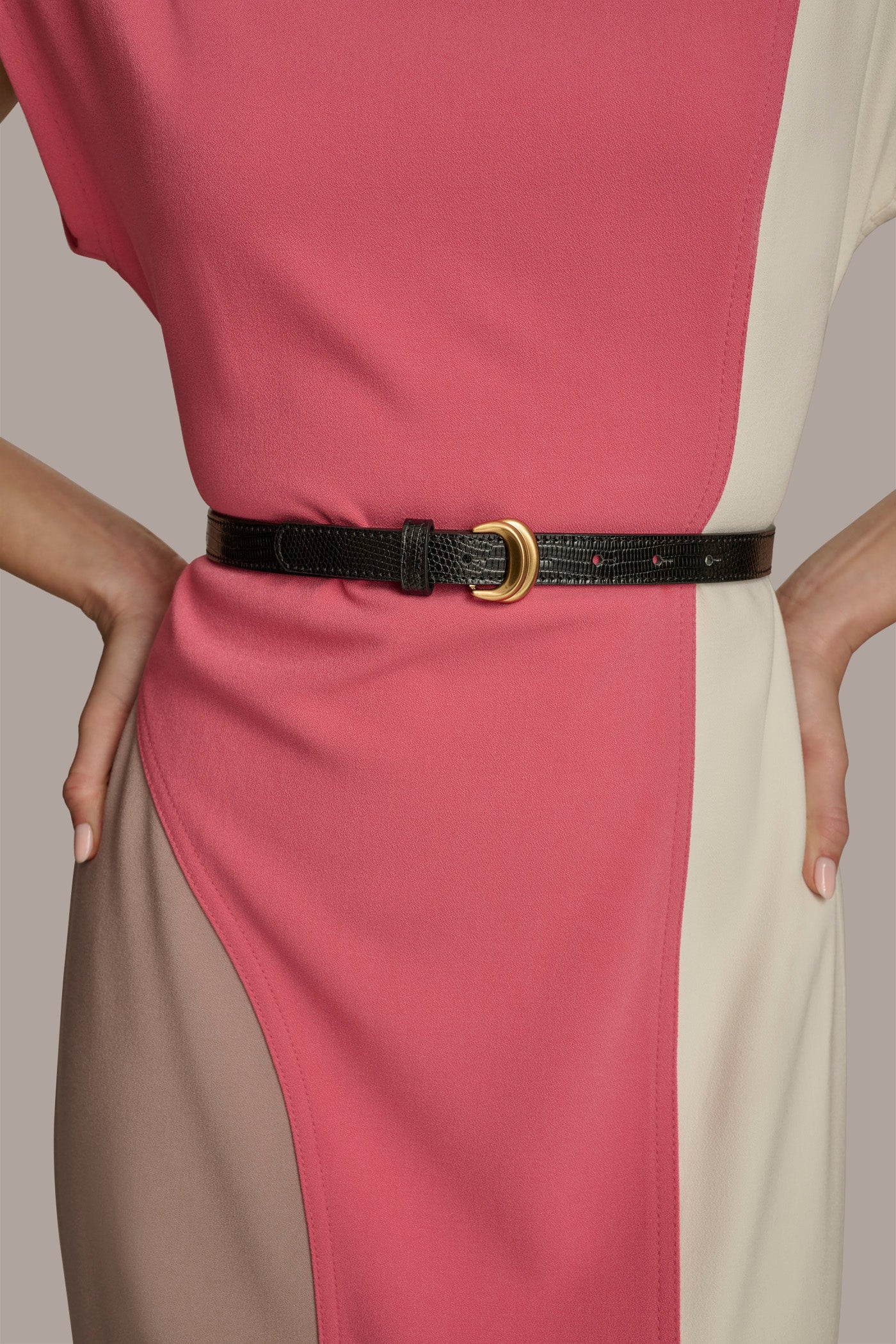 COLORBLOCK BELTED FIT AND FLARE DRESS