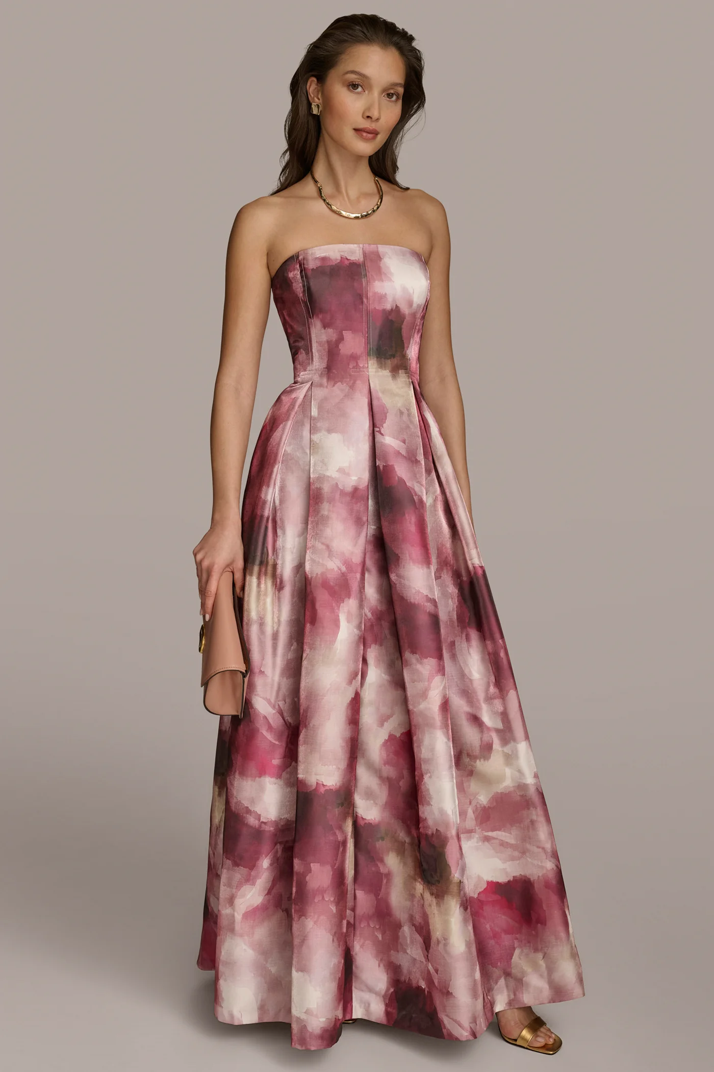 STRAPLESS PRINTED BALL GOWN