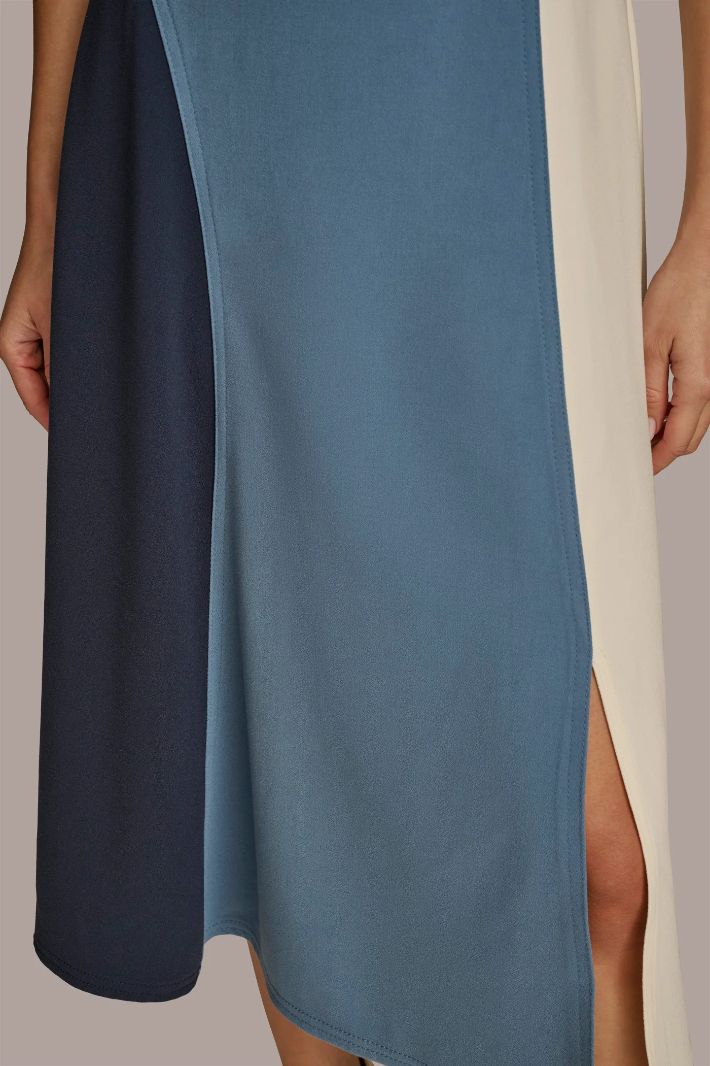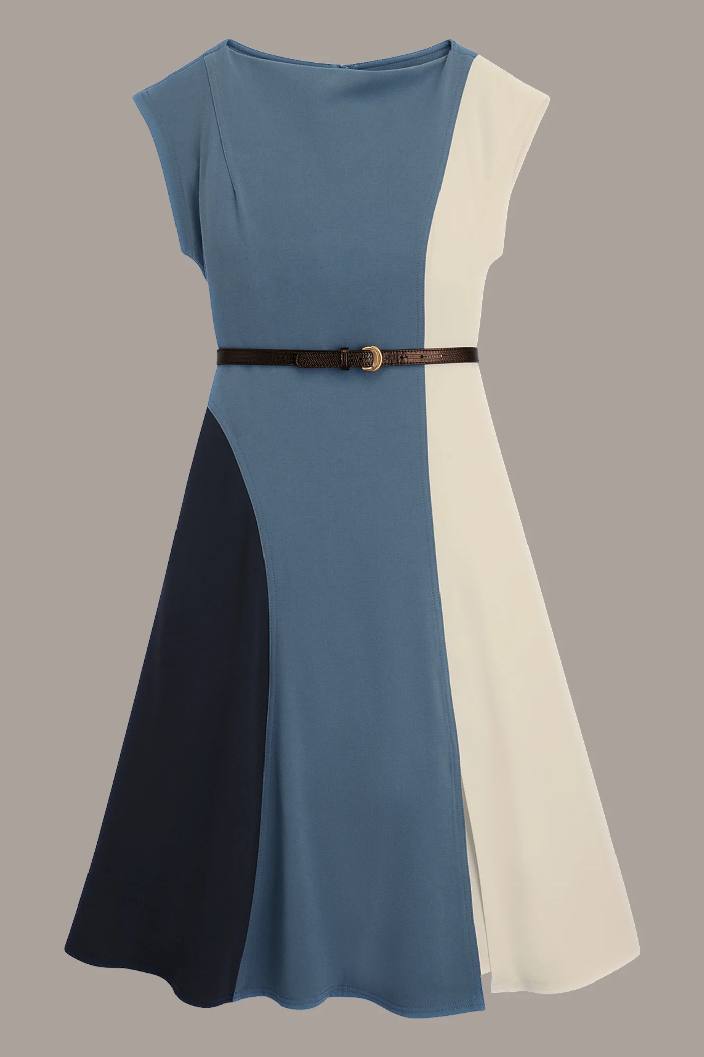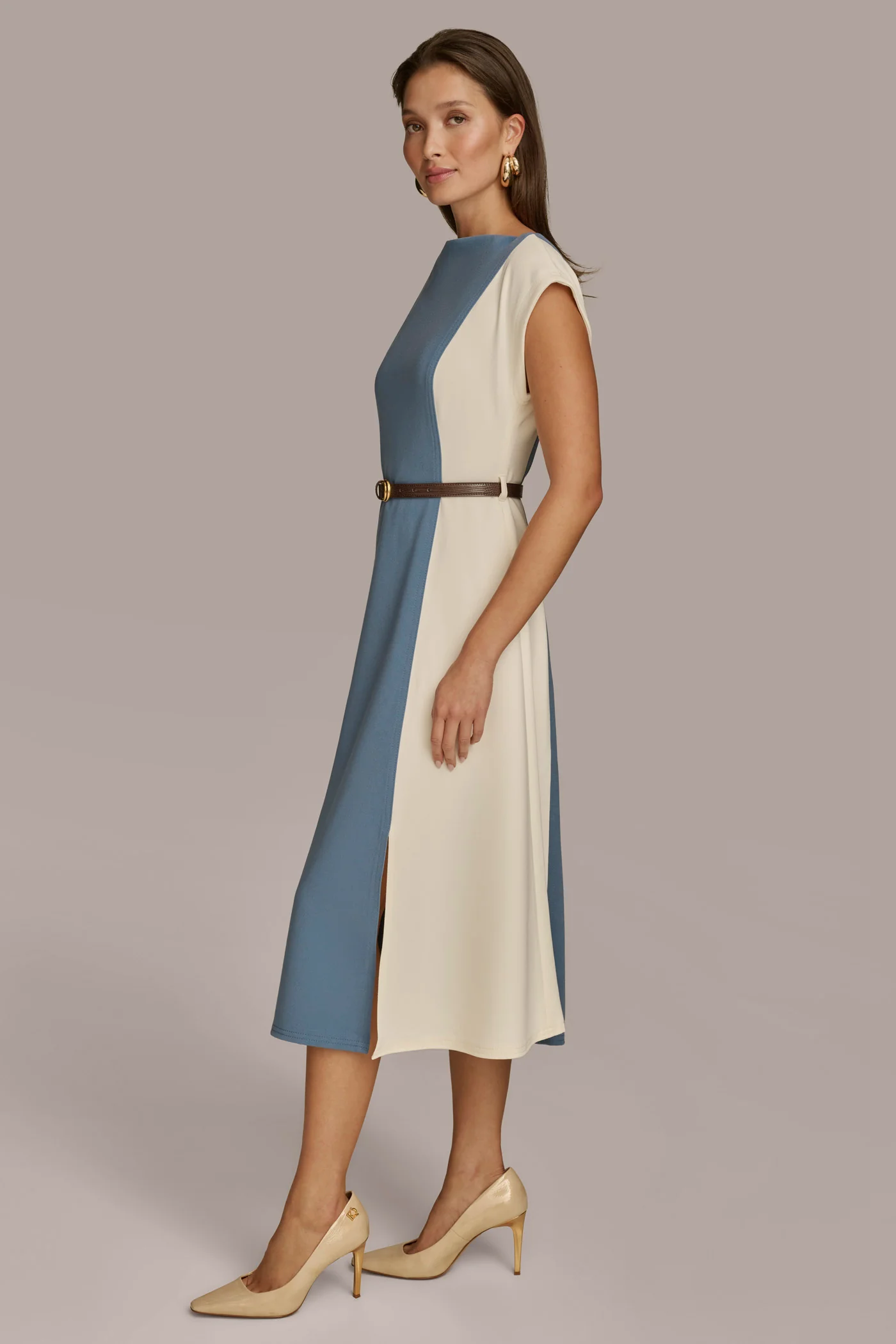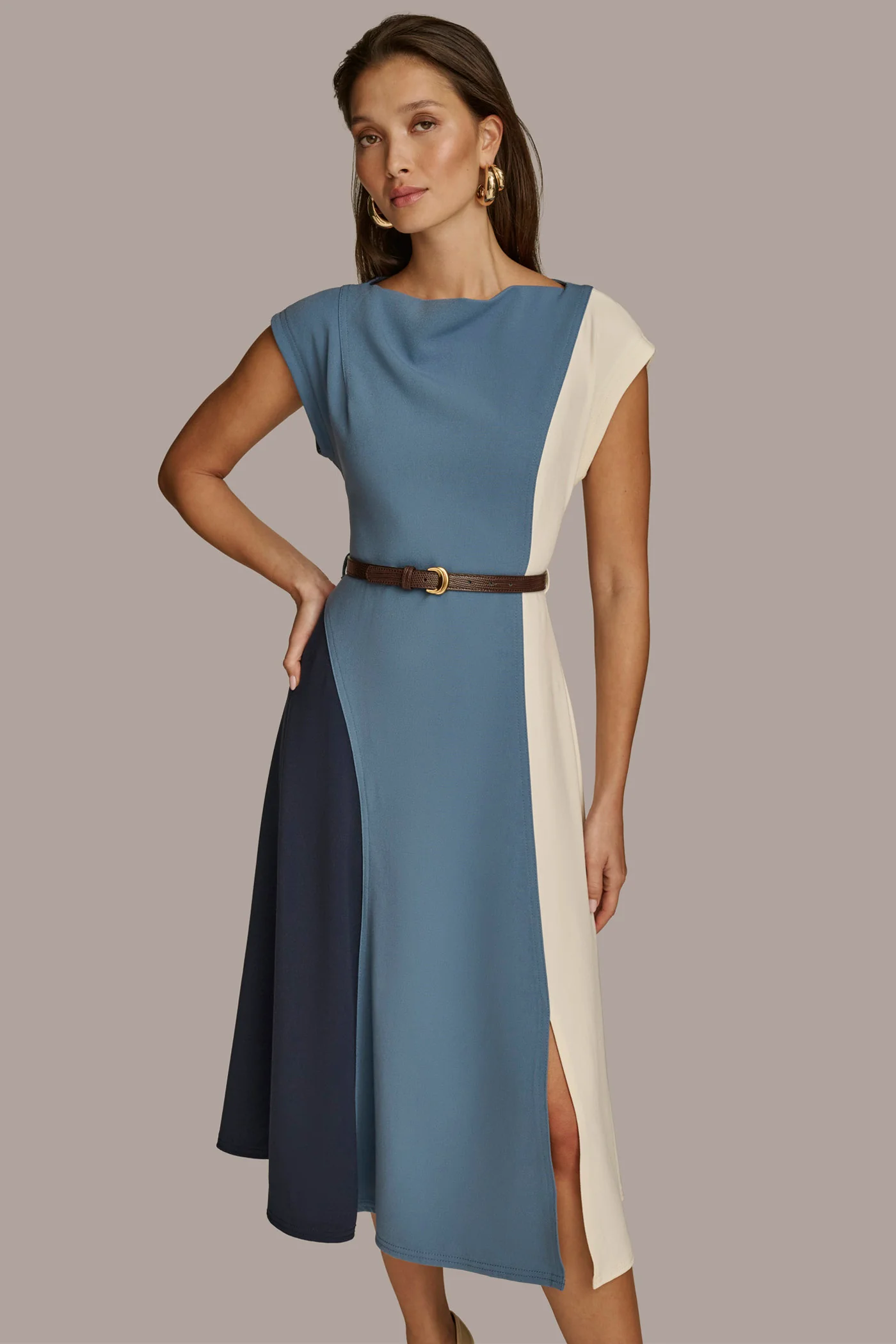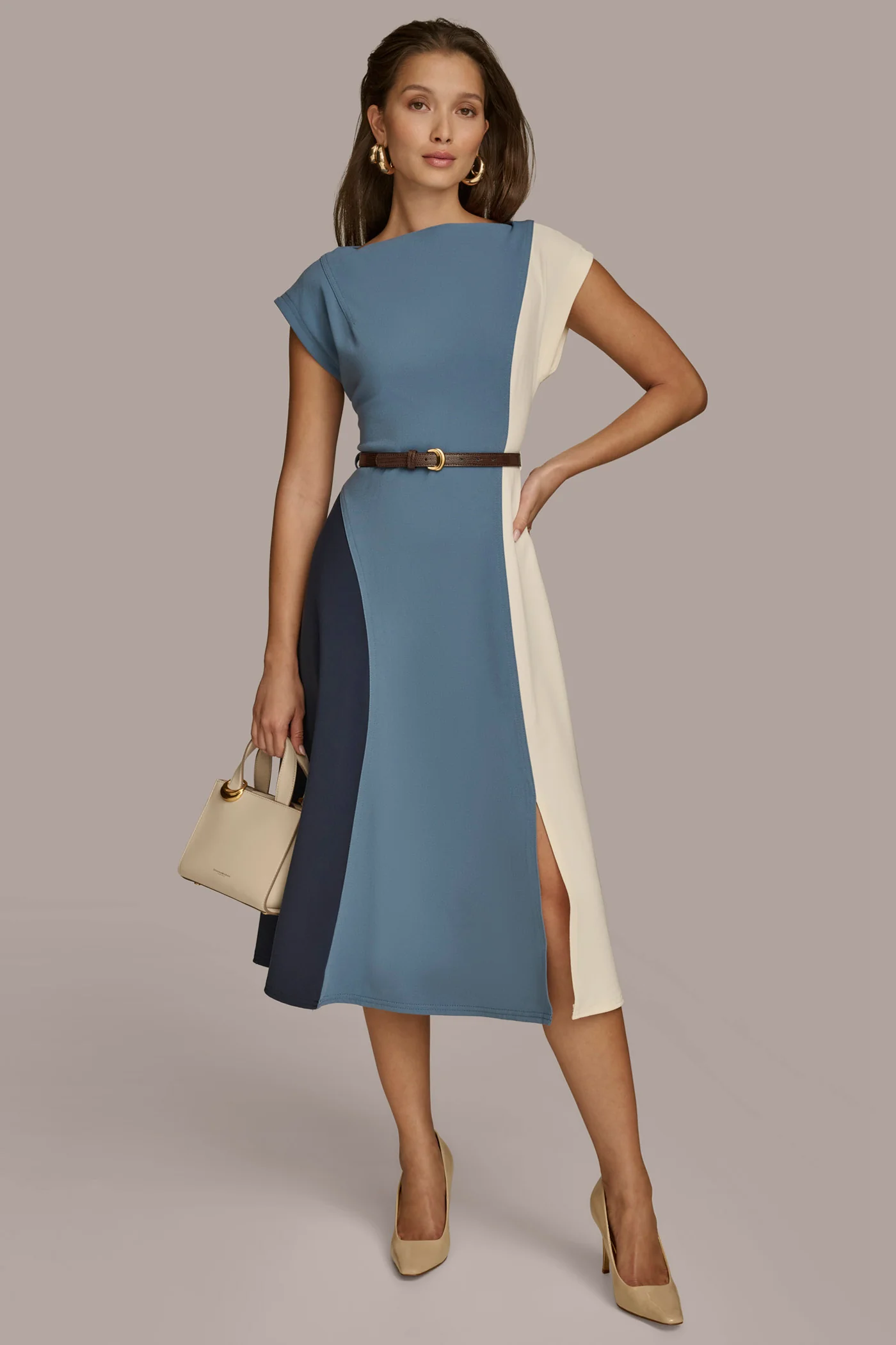 BELTED COLORBLOCK A LINE MIDI DRESS