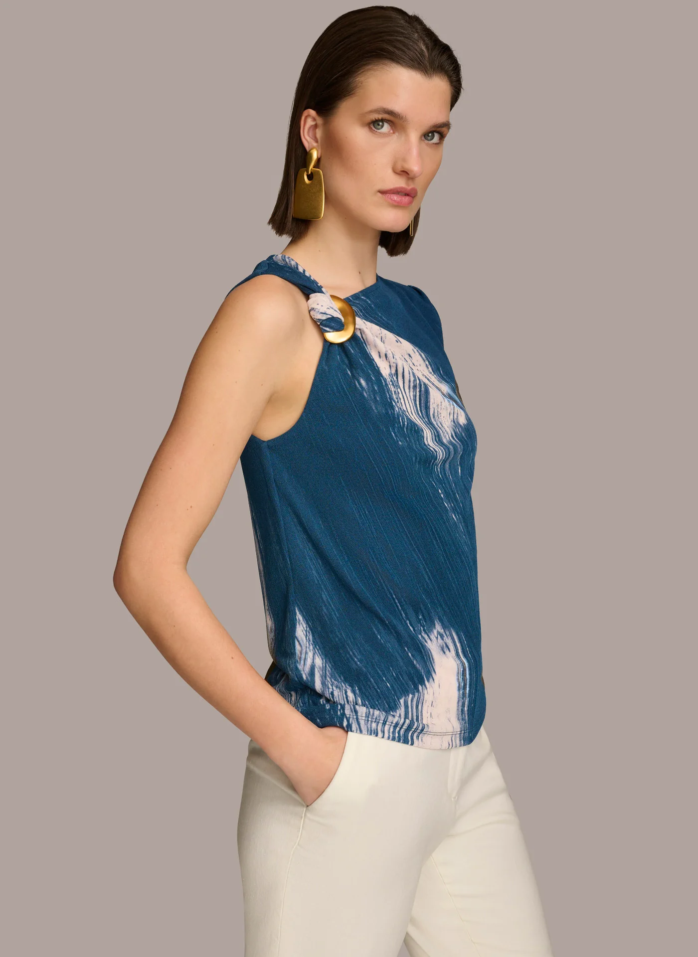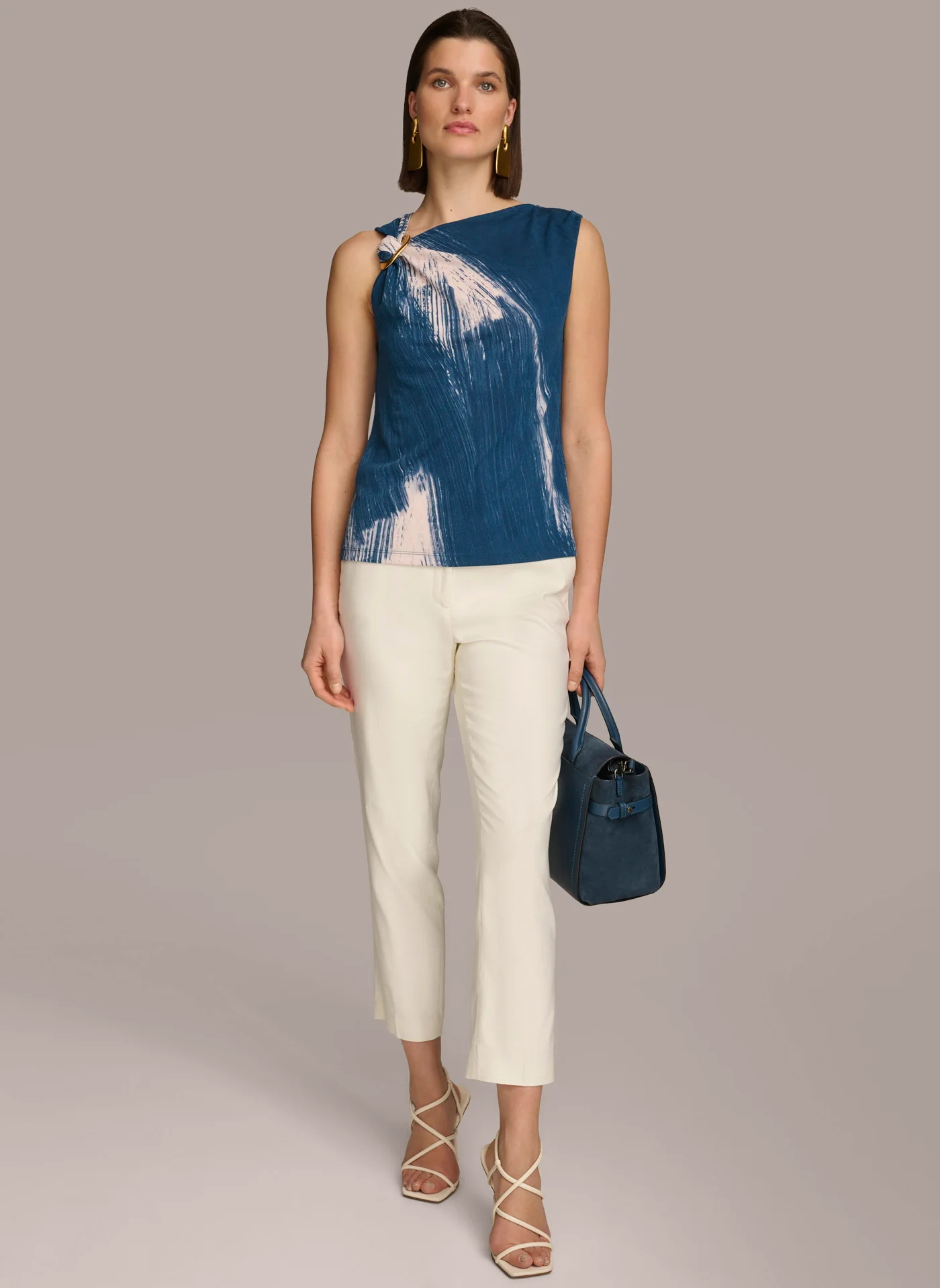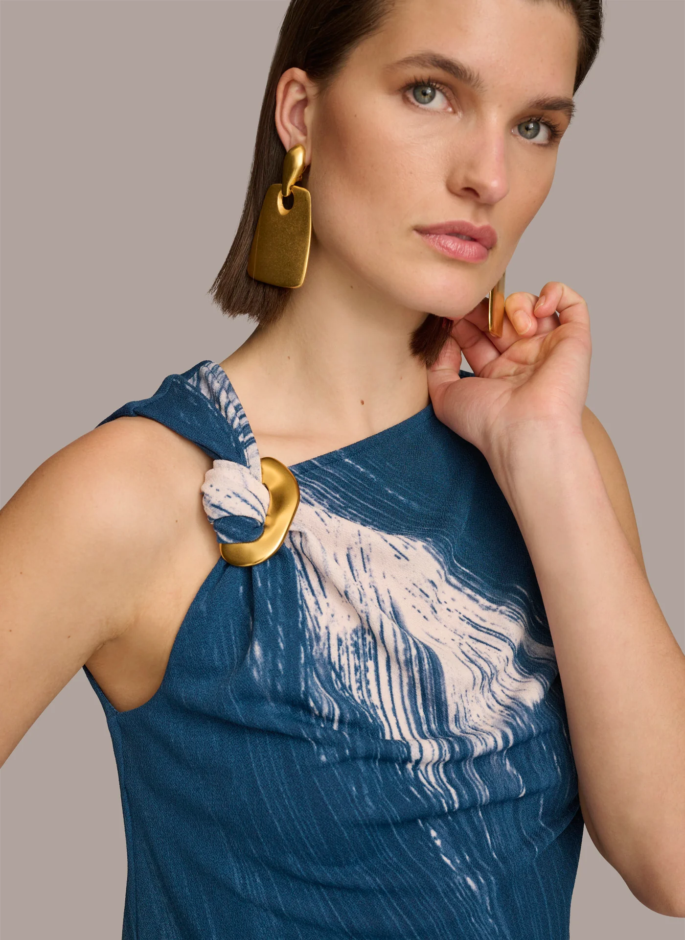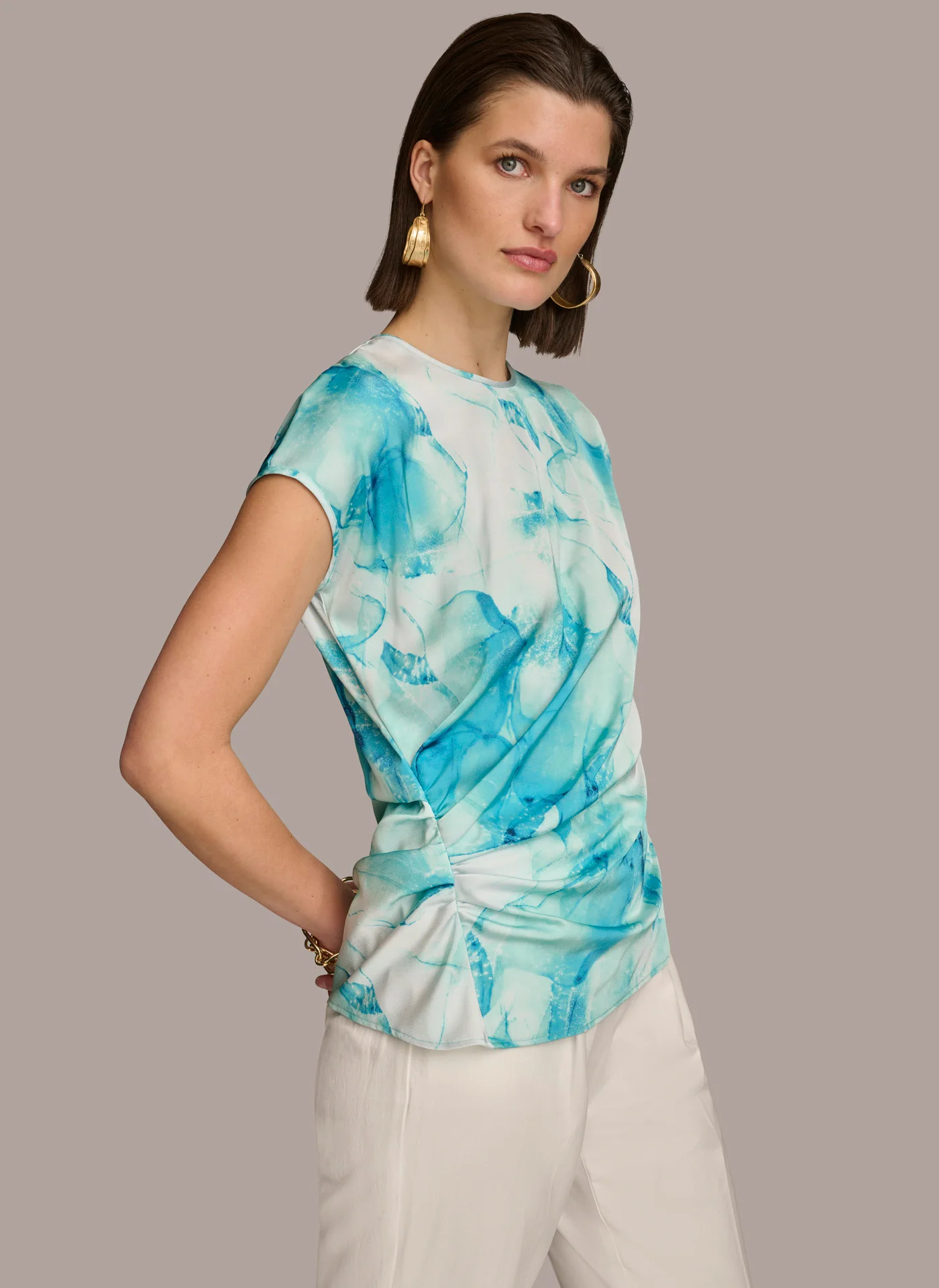 PRINT EXTENDED SHOULDER RUCHED TOP