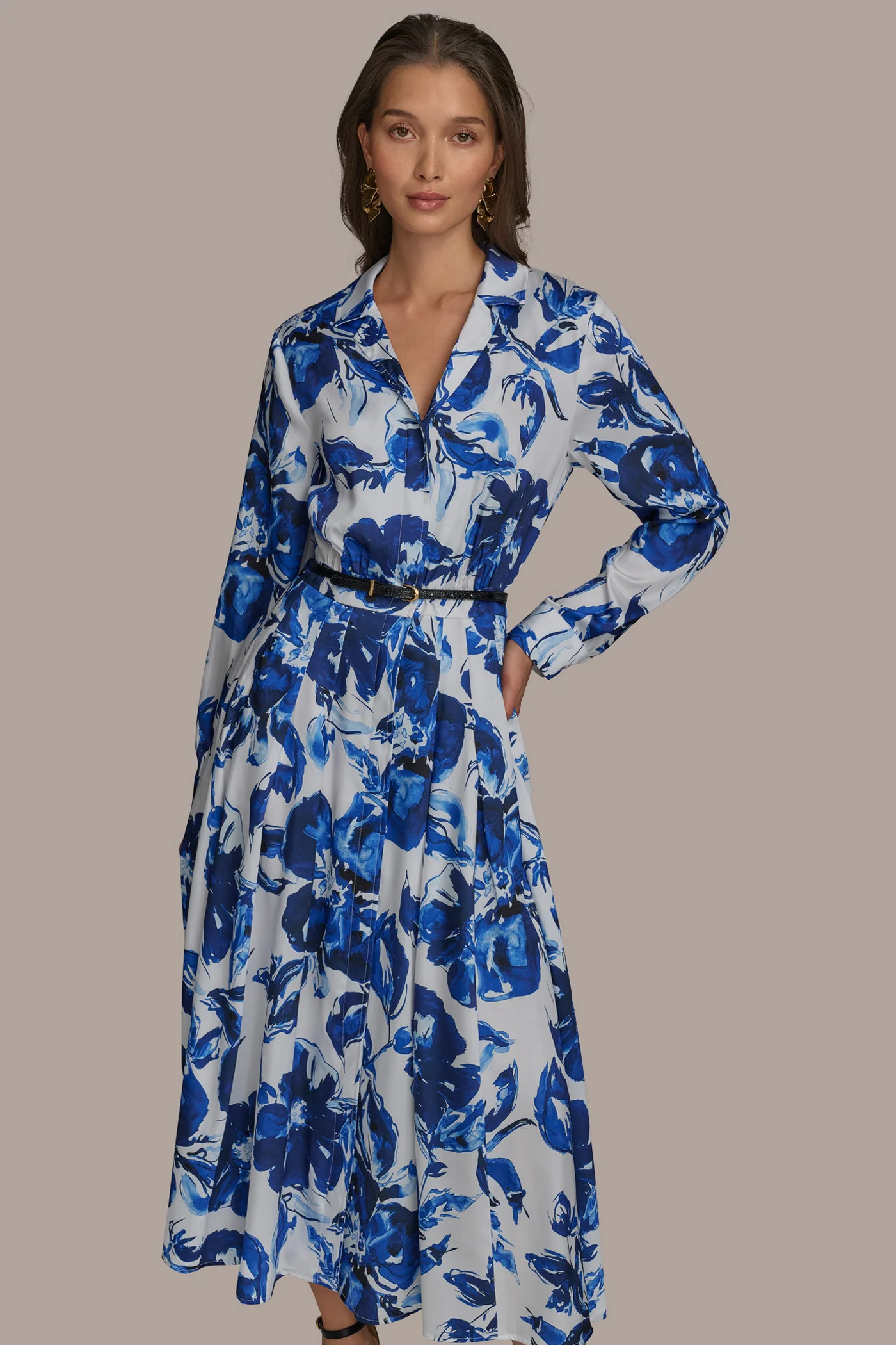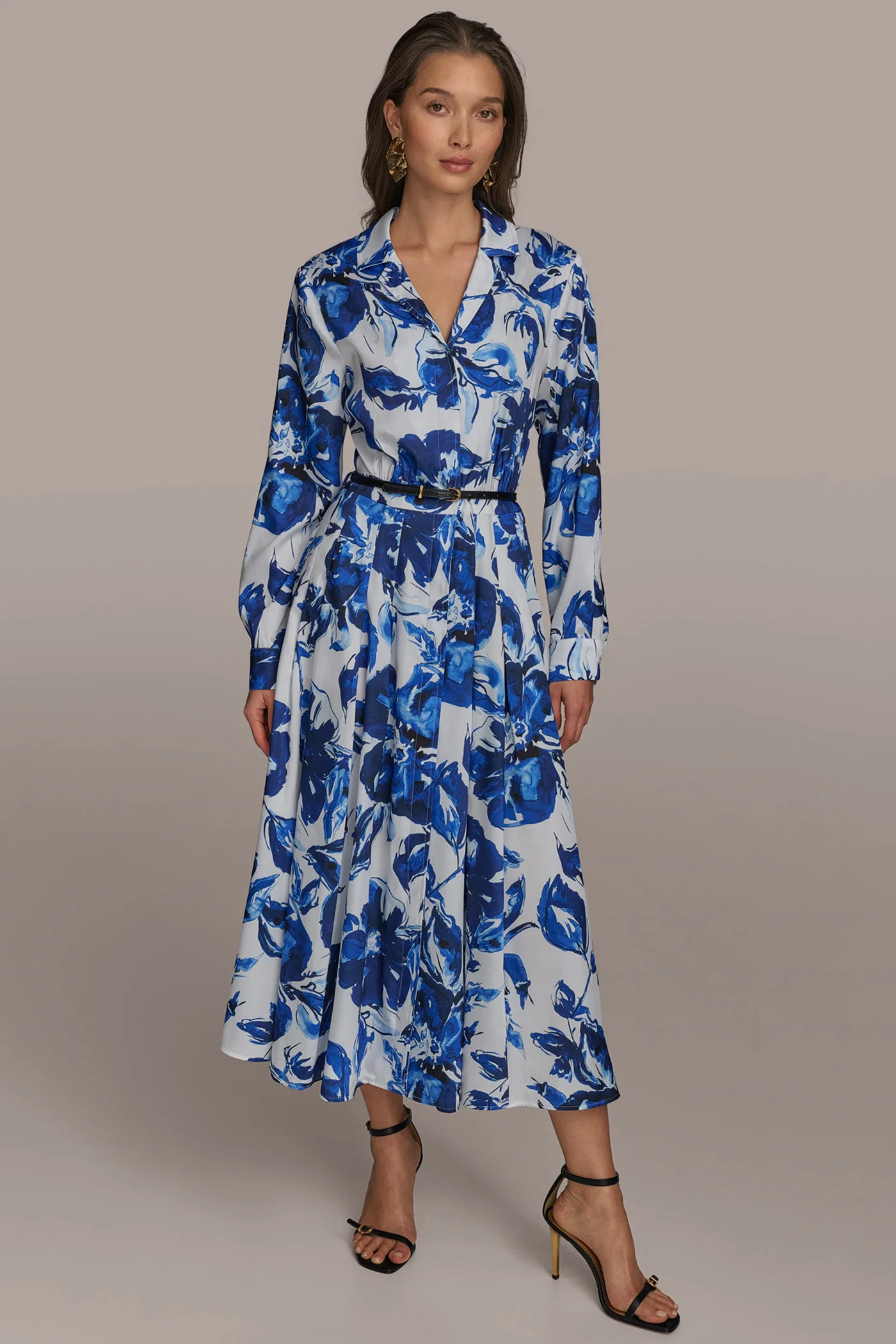 PRINTED BELTED SHIRT DRESS