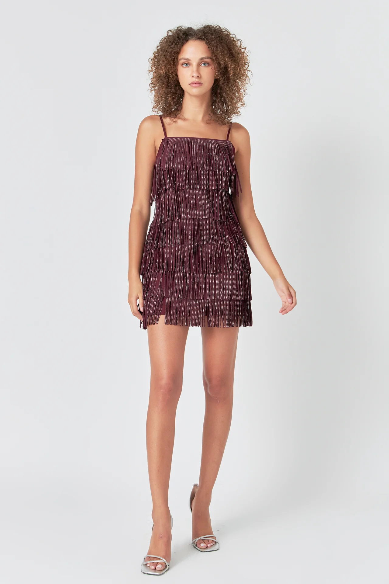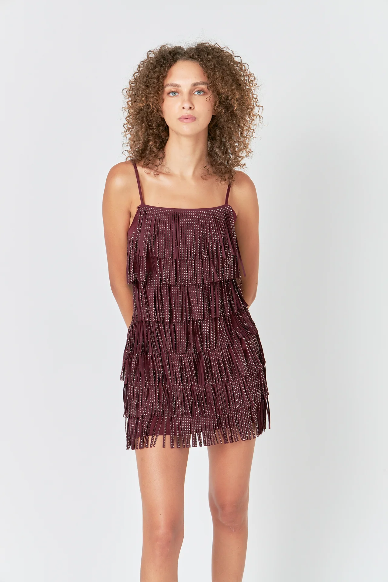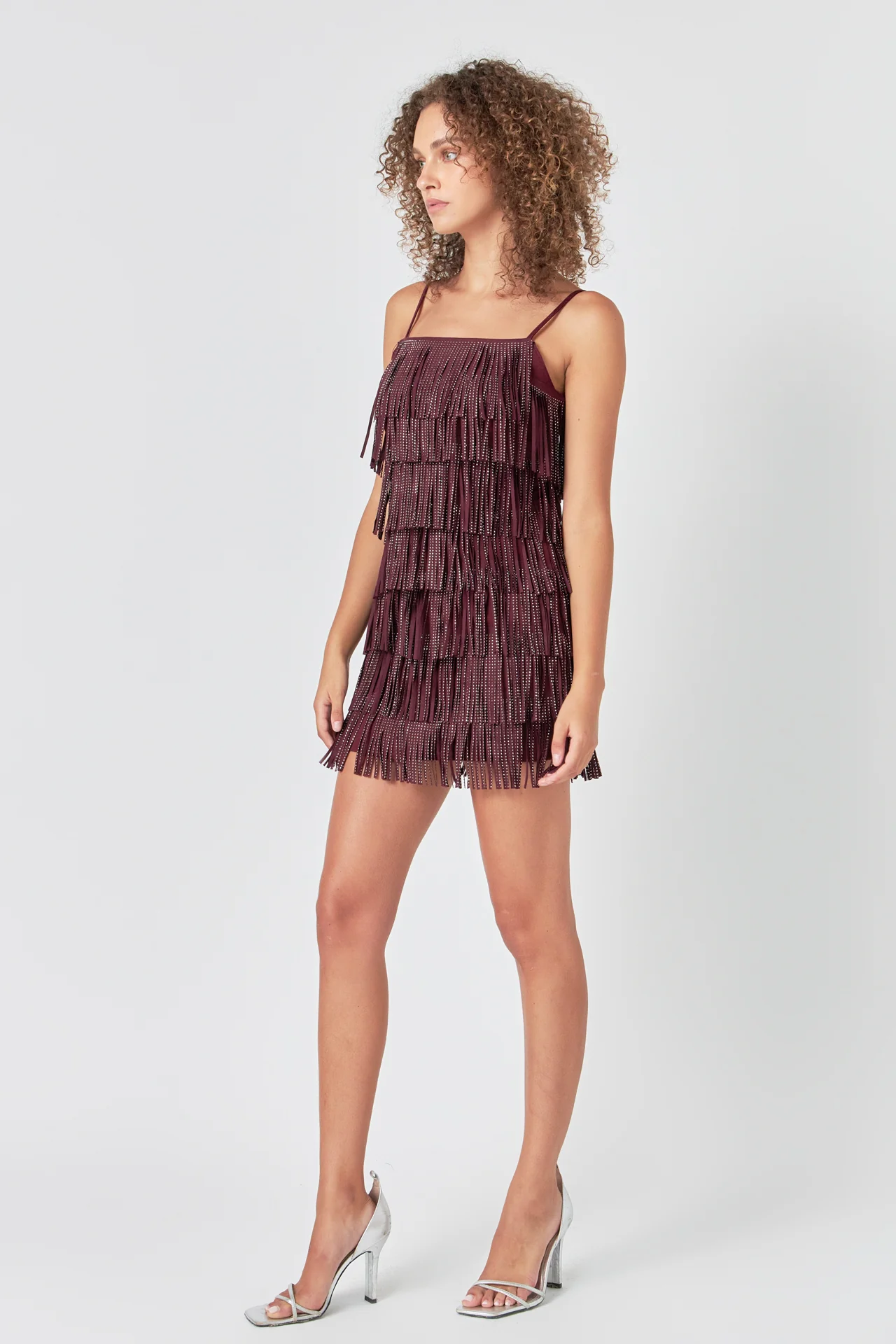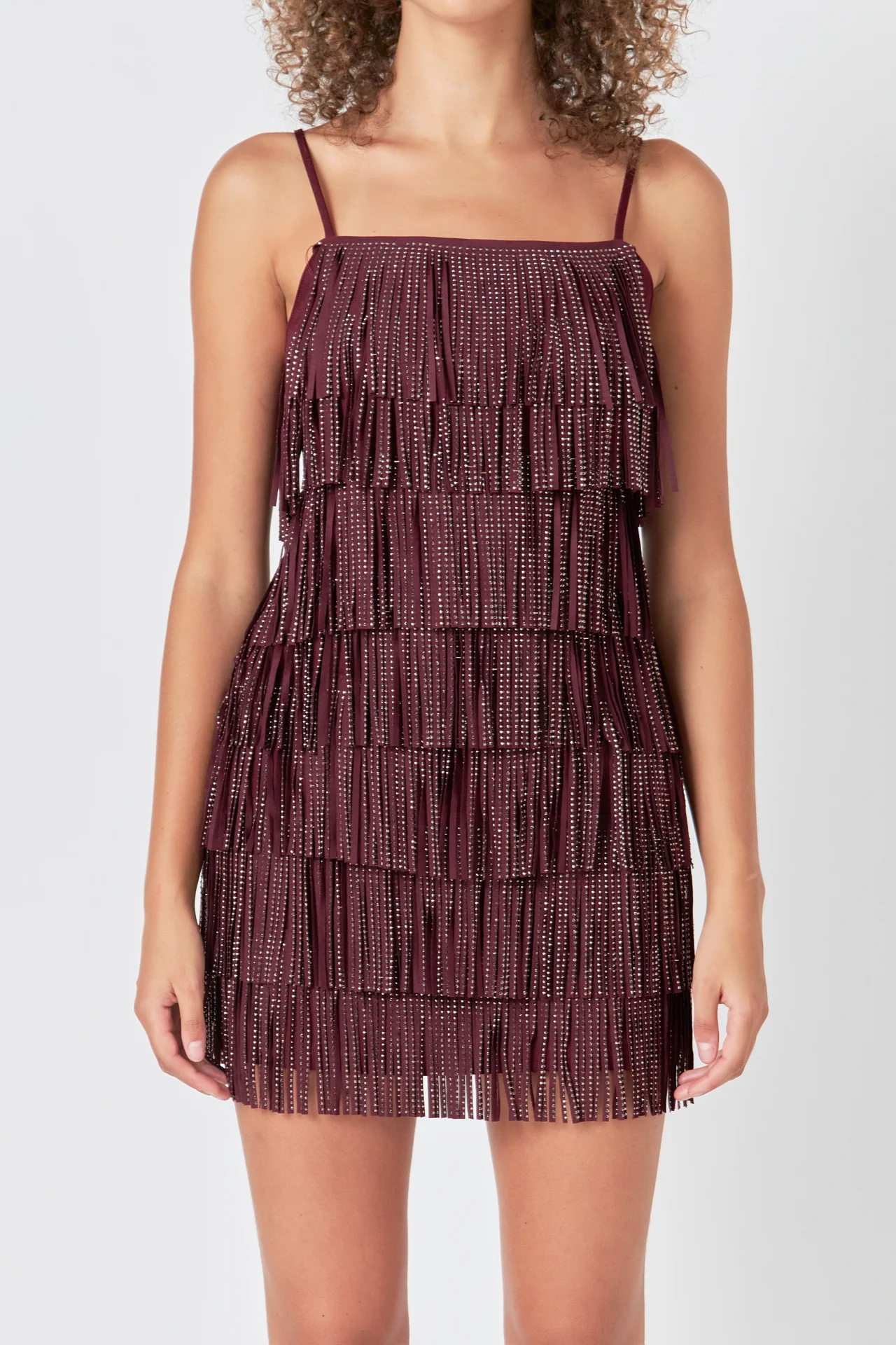 Rhinestone Faux Suede Fringe Mini Dress
