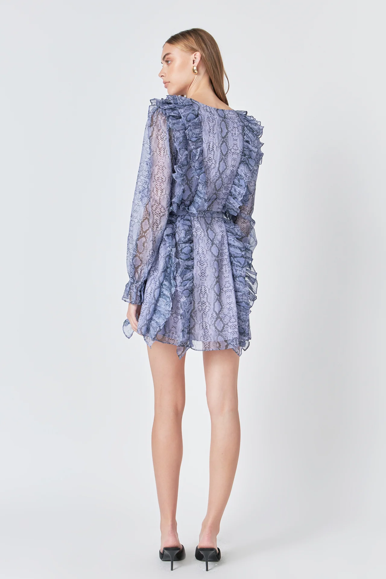 Button Down Long Sleeve Ruffled Mini Dress