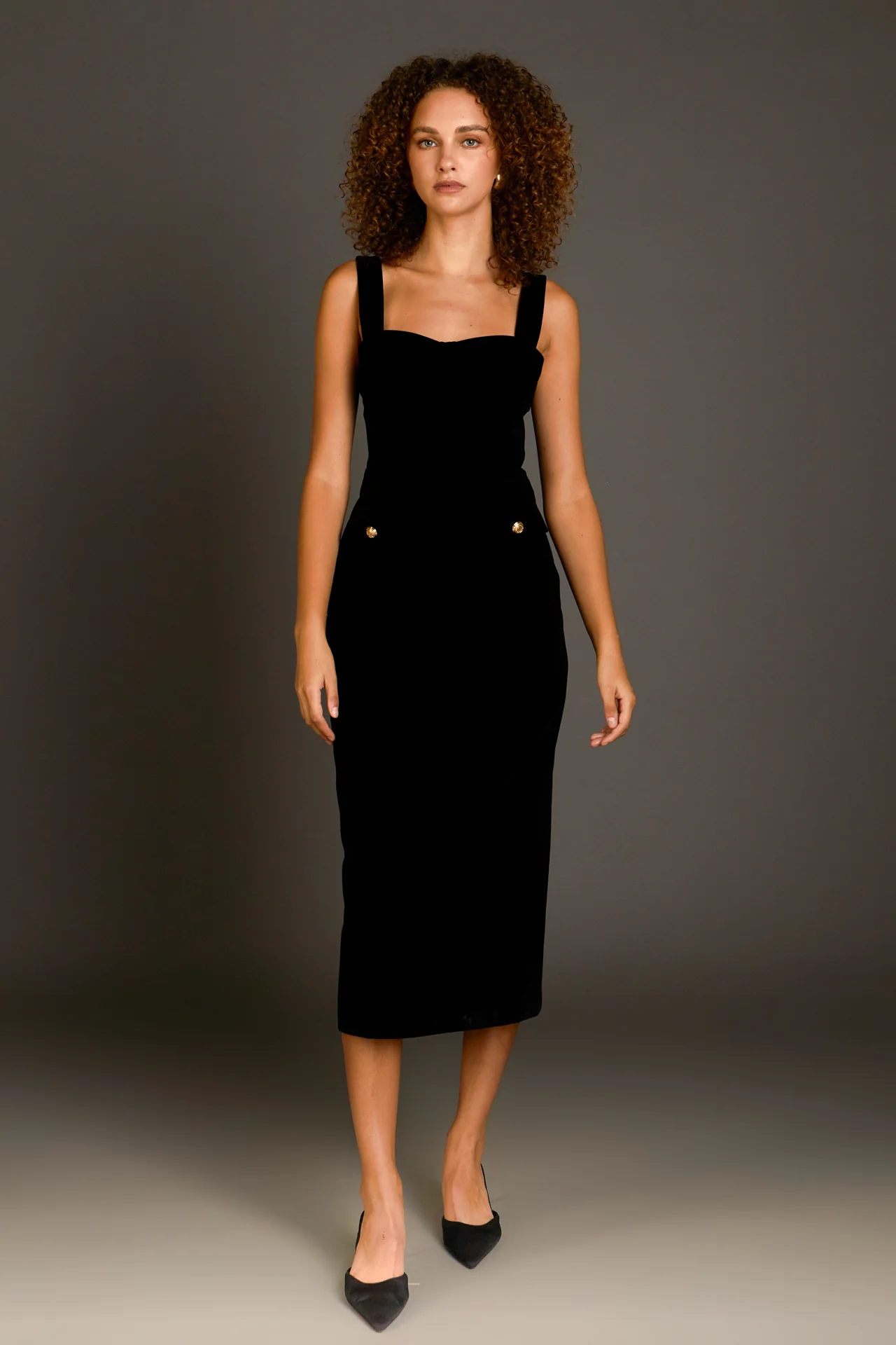 Buttoned Velvet Midi Dress