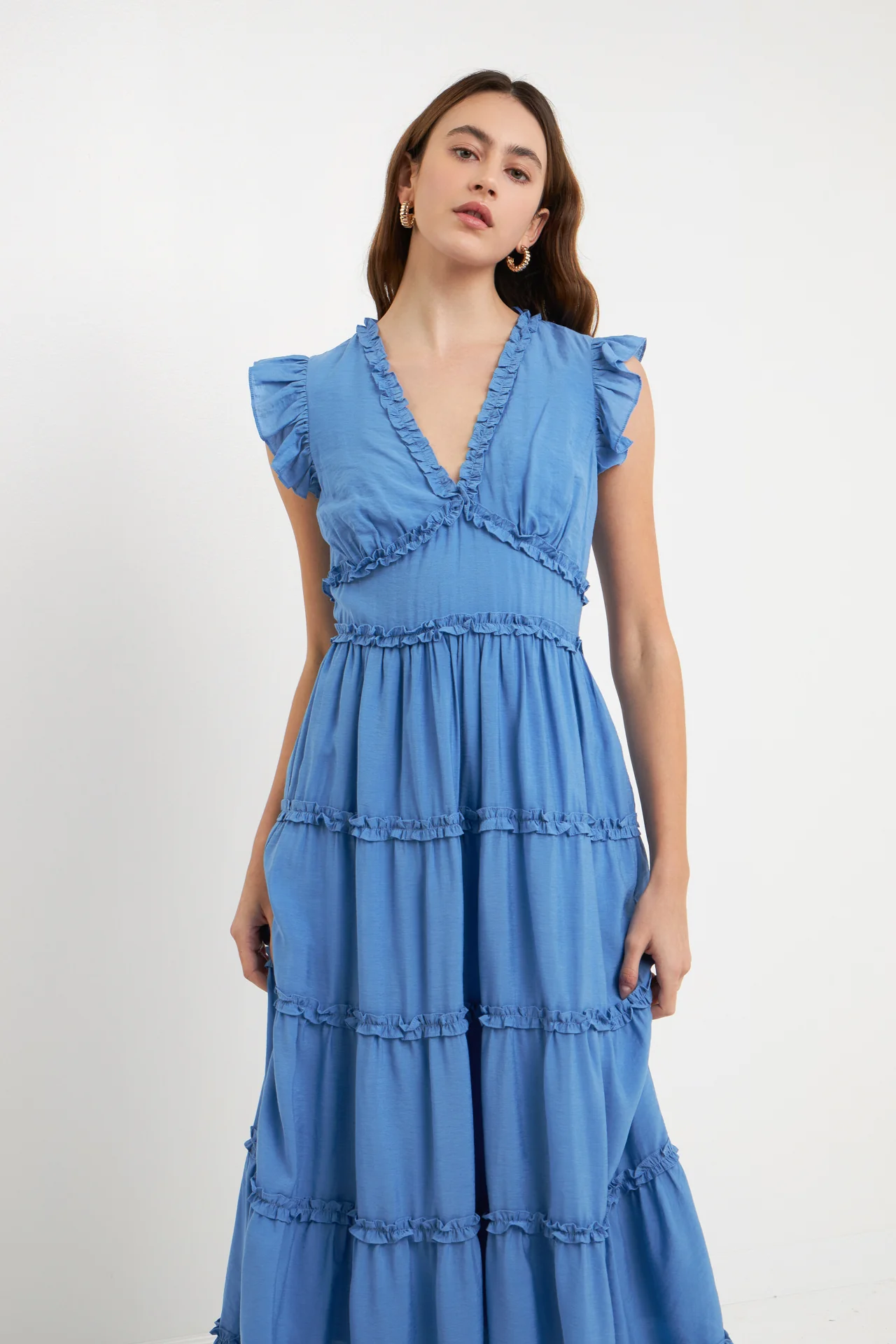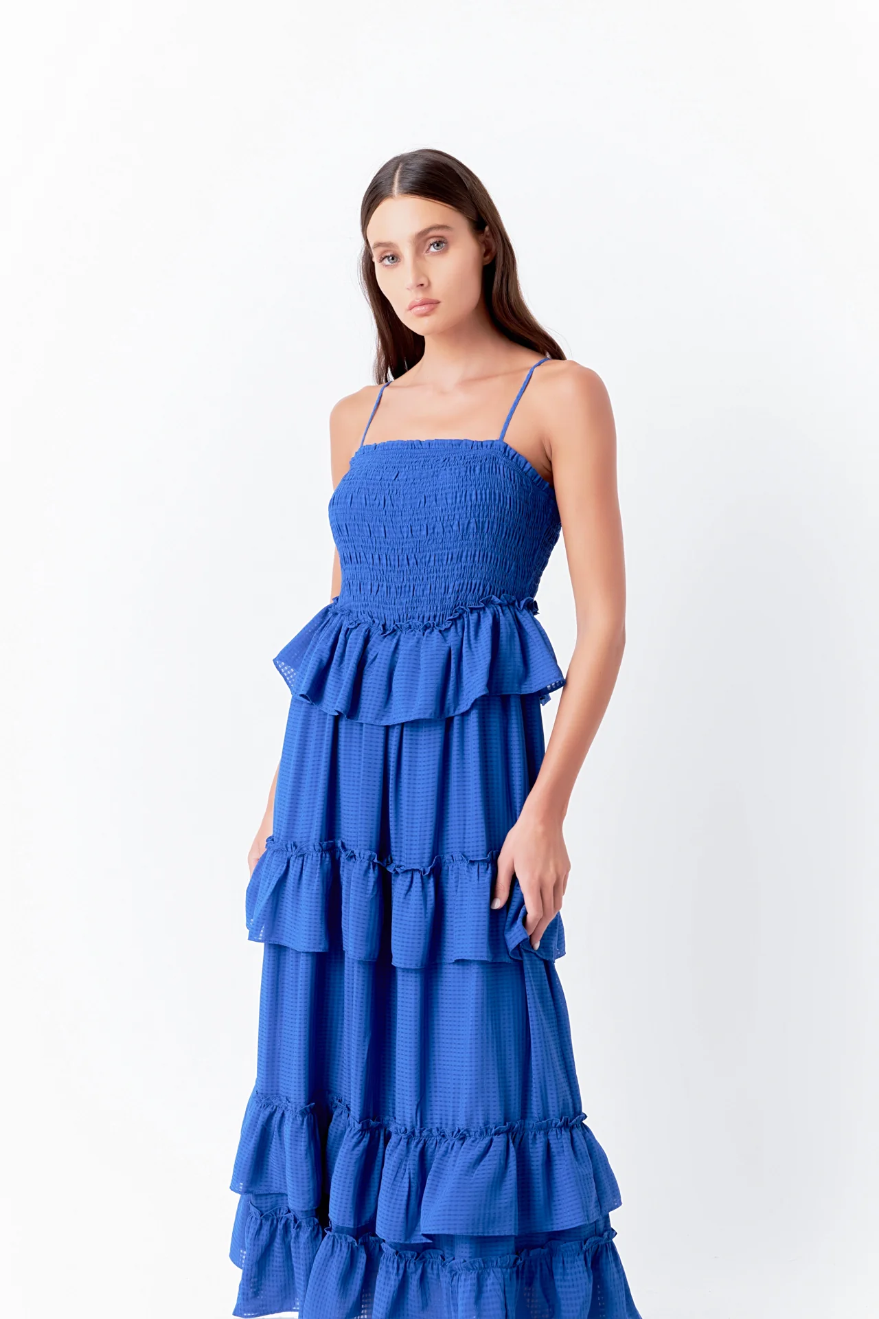 Ruffle Detail Tiered Long Dress