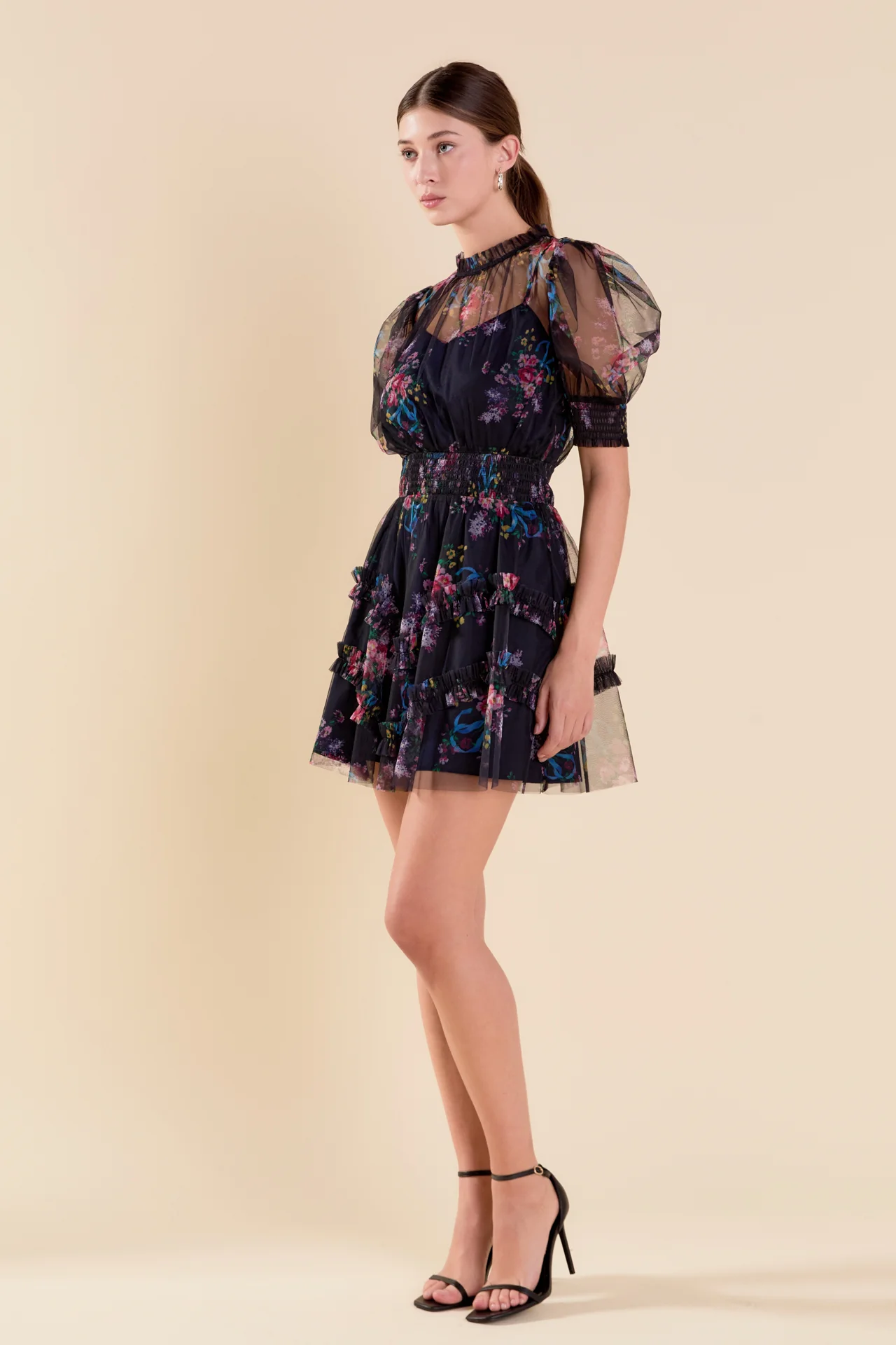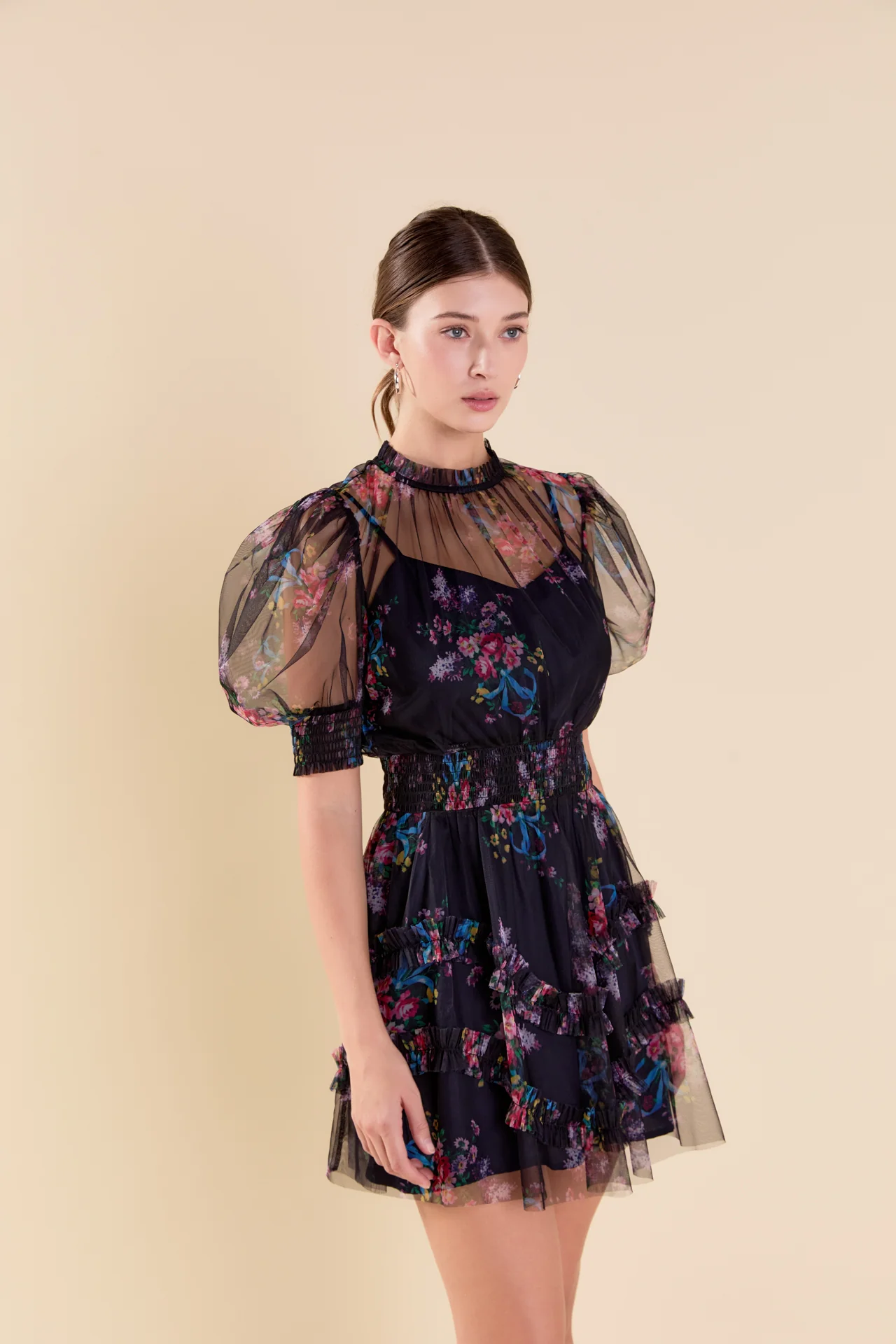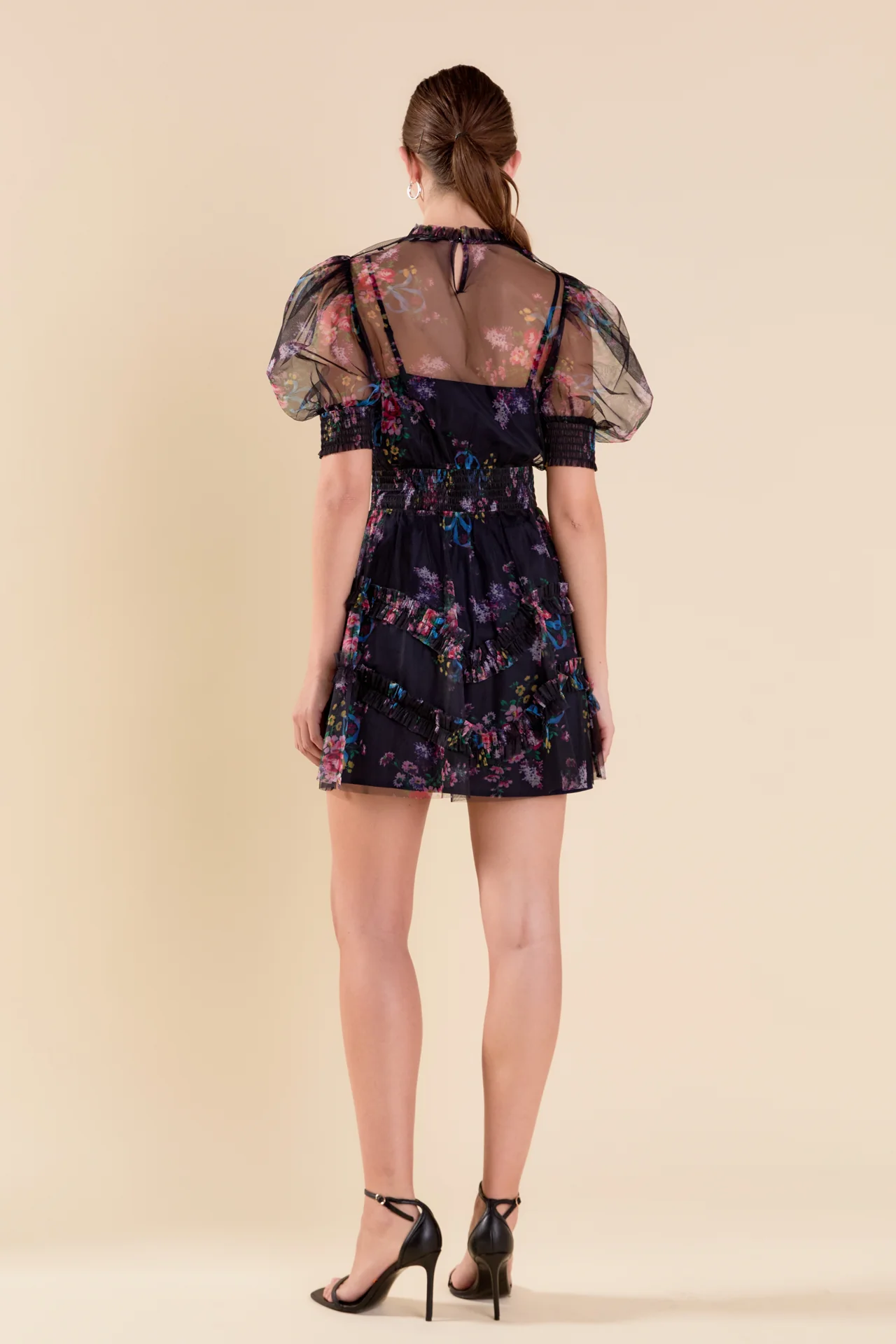 Ruffled Mesh Mini Dress