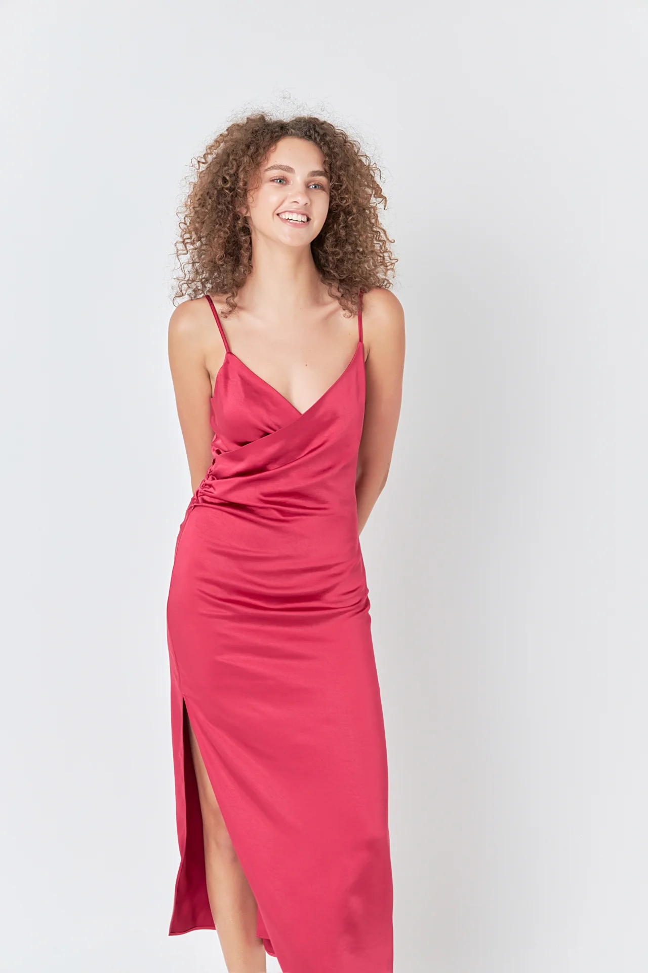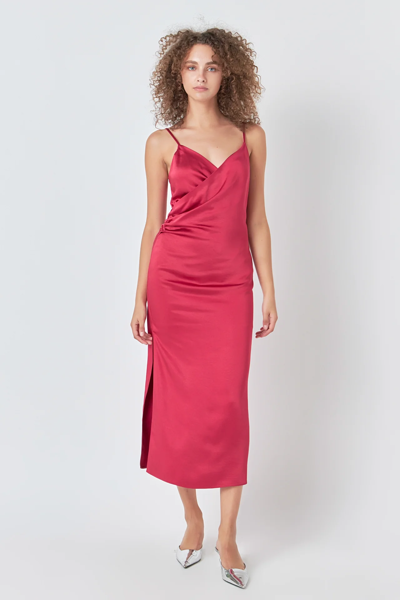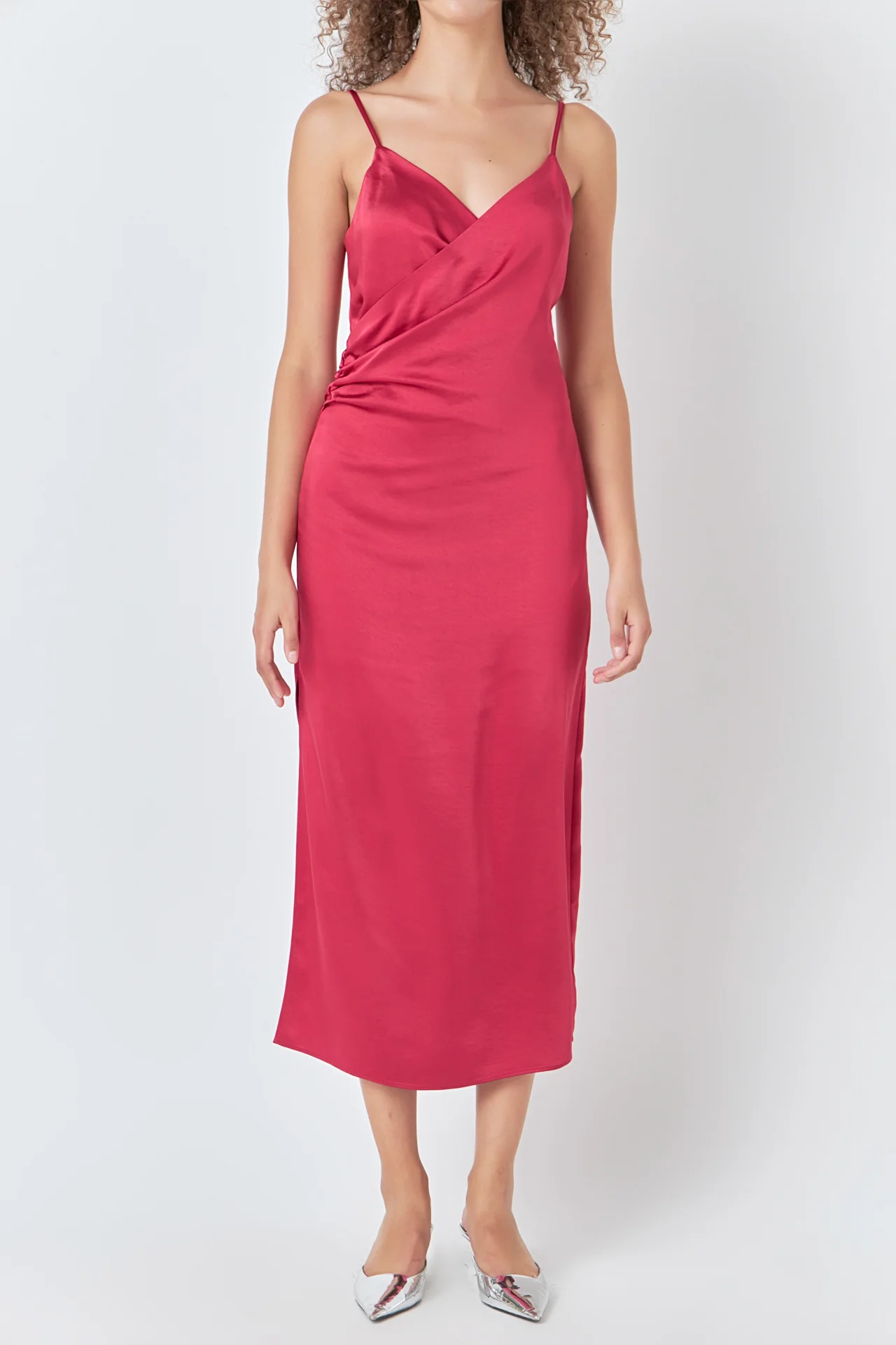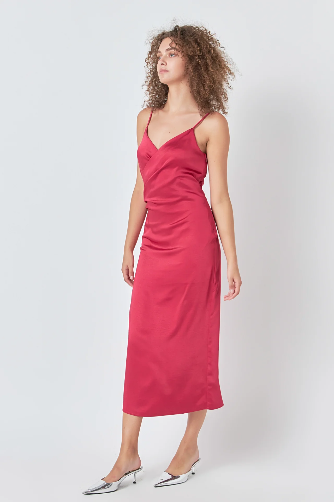 Satin Wrap Midi Dress
