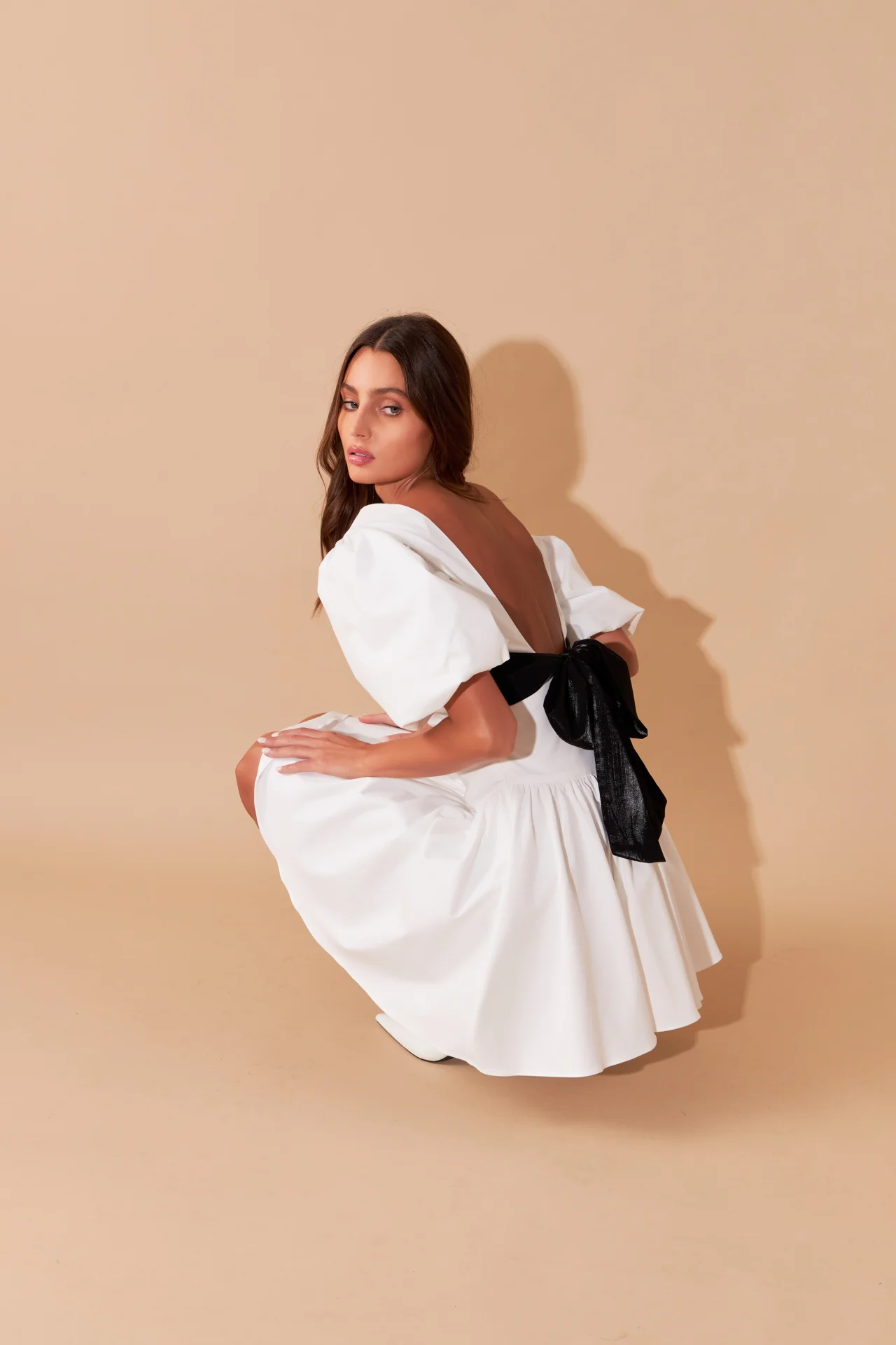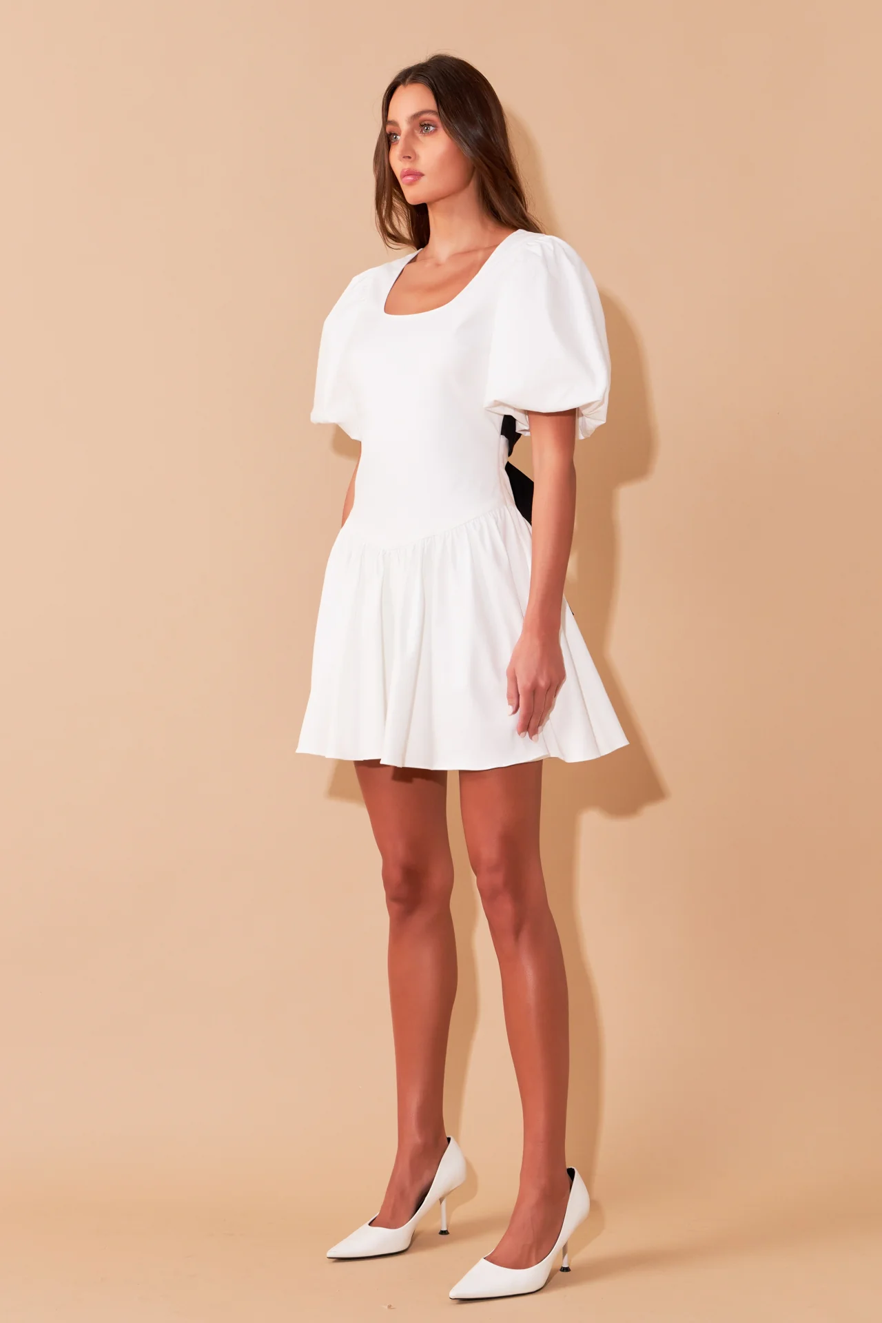 Contrast Bow Low Back Mini Dress