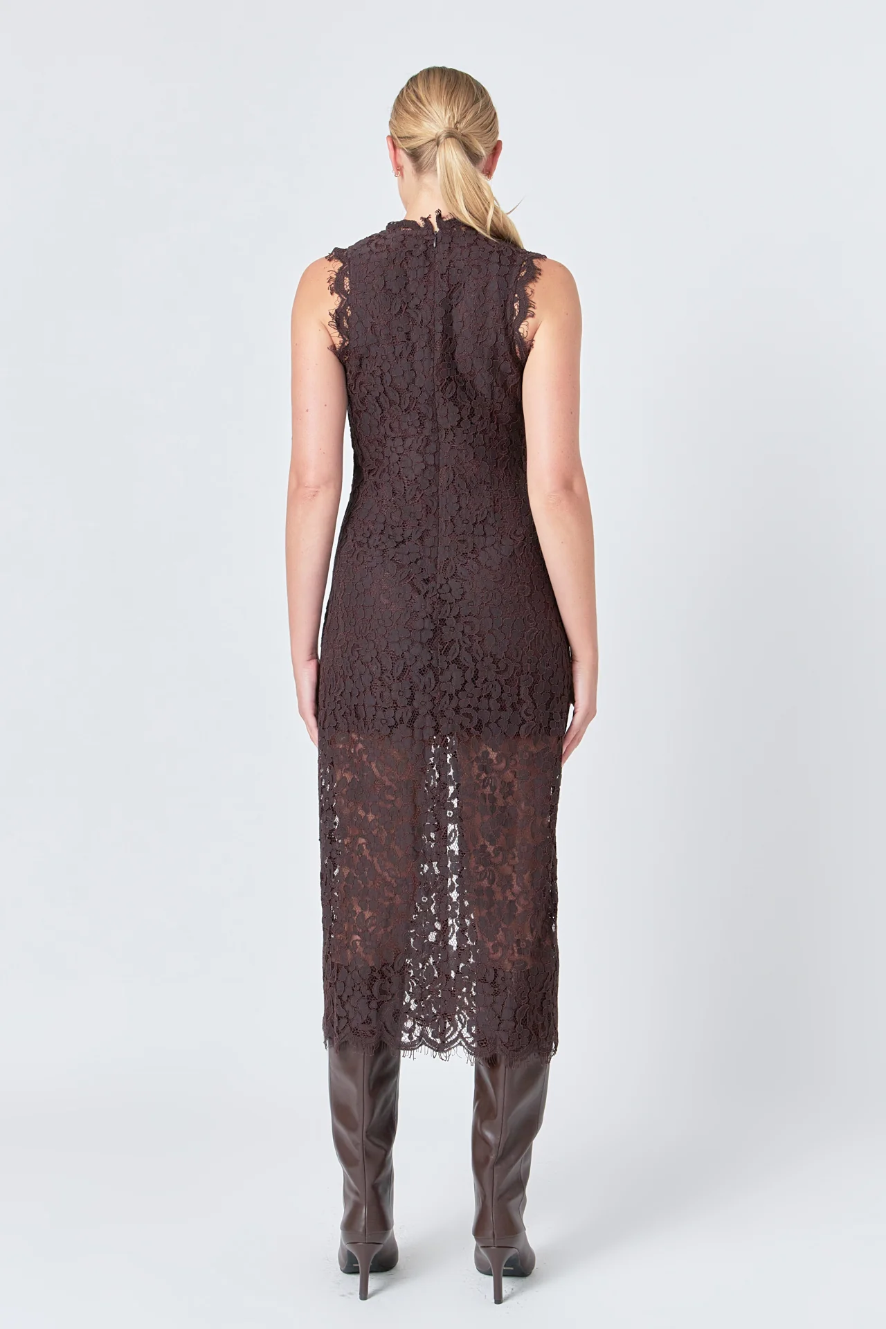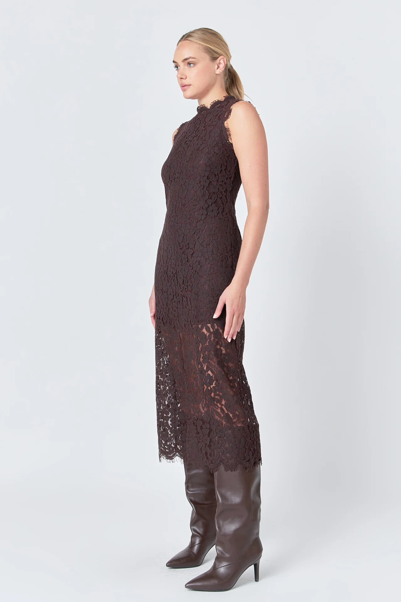 Front Slit Sleeveless Lace Maxi Dress